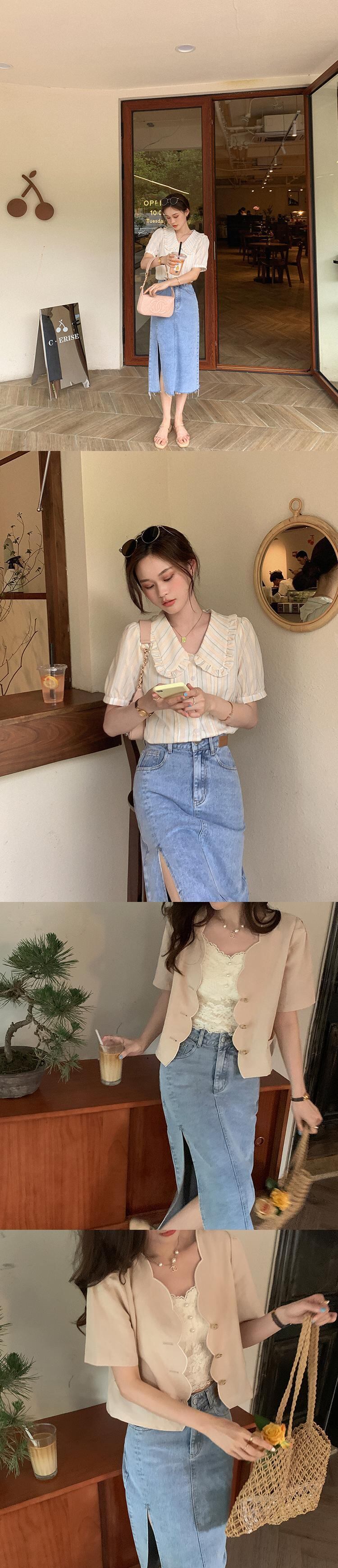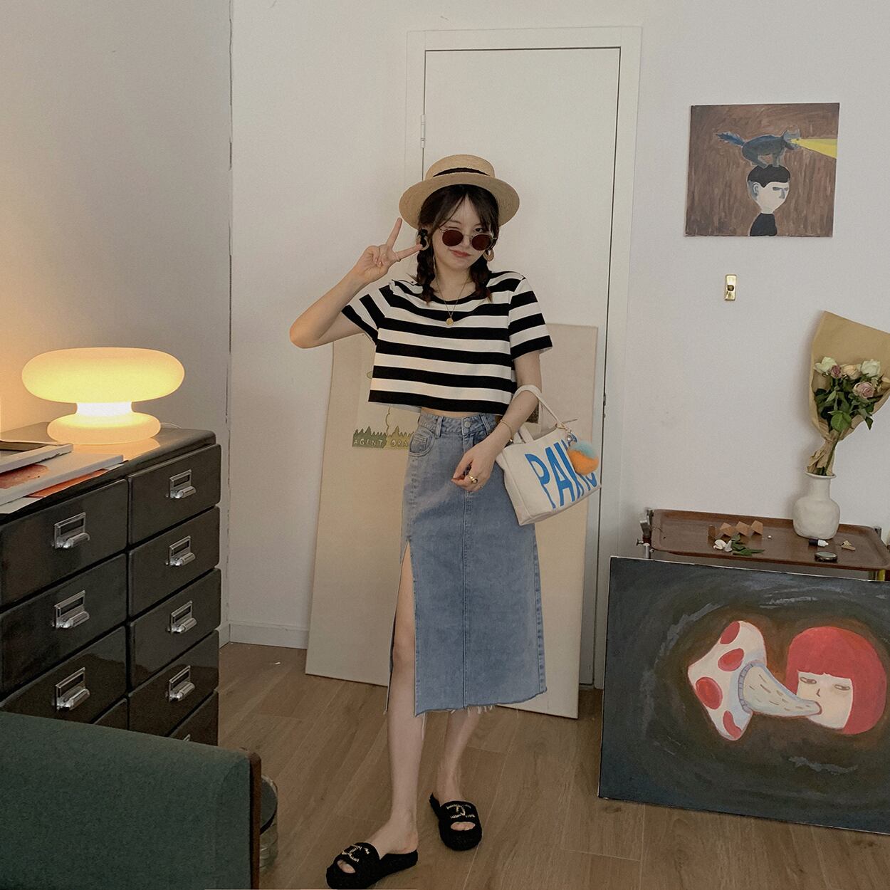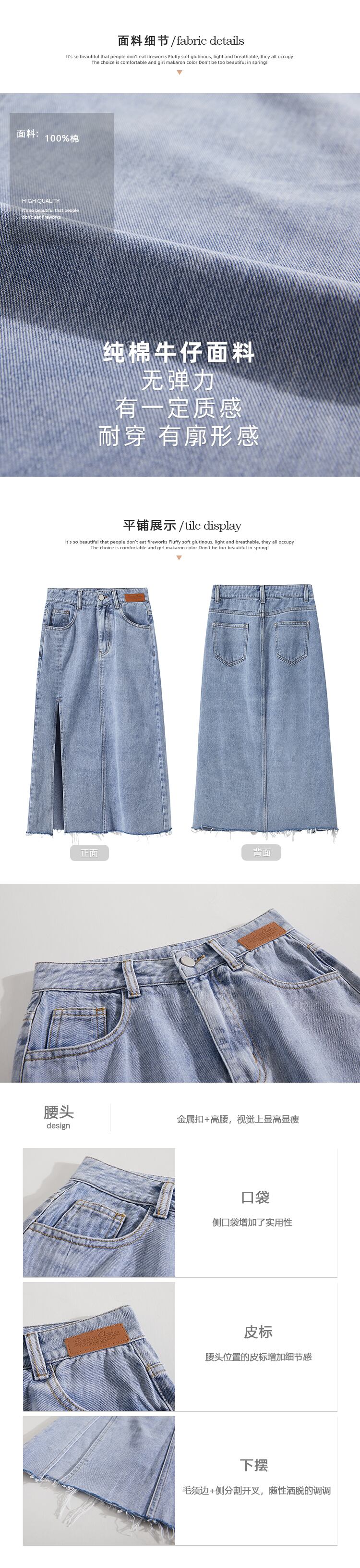 ミスシマリス[クロップドシュガーデニムスカート]-サイドスリット付きウエストAラインミドル丈スカート missi33013724030
