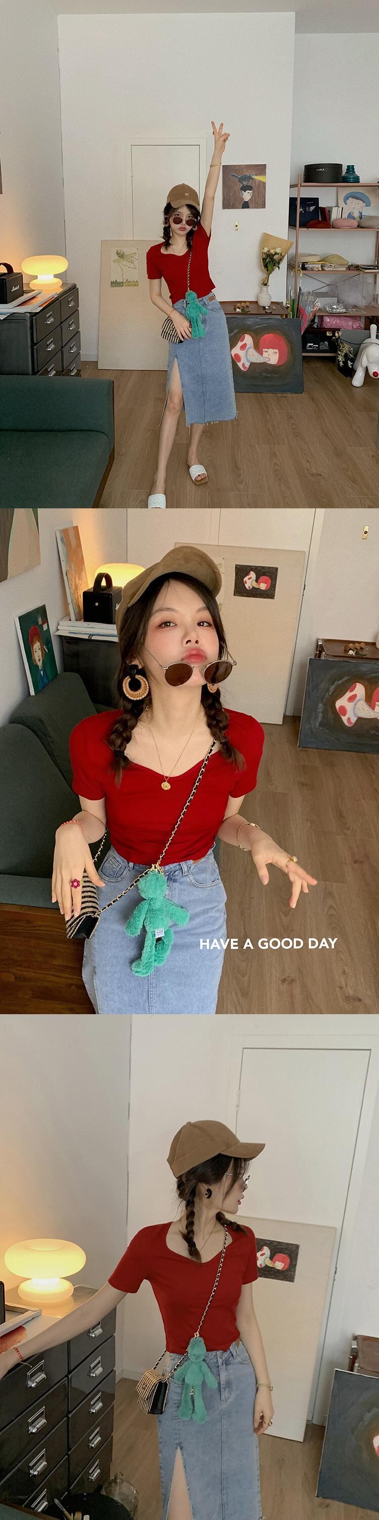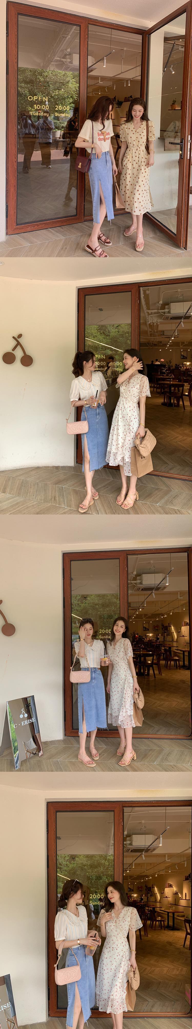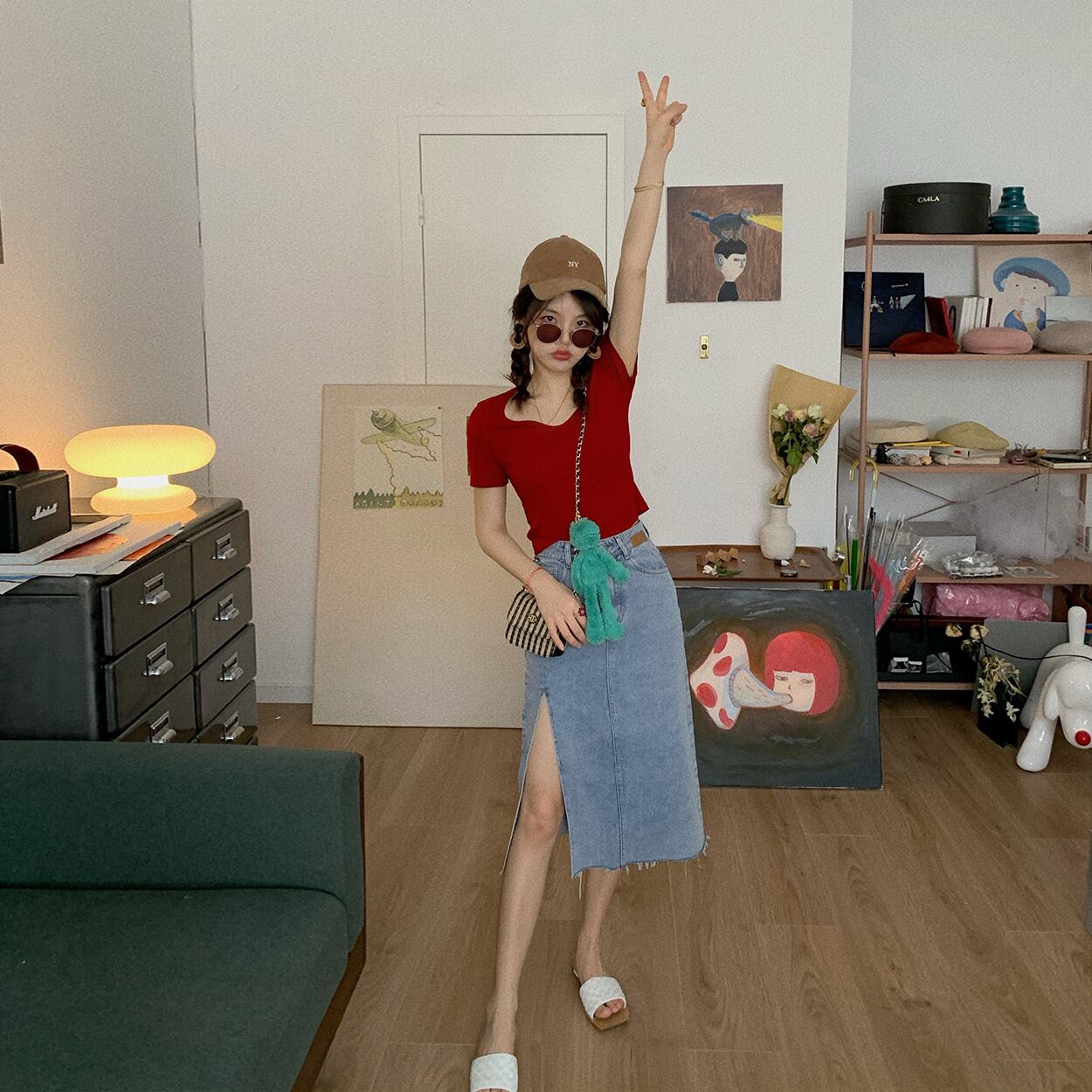 ミスシマリス[クロップドシュガーデニムスカート]-サイドスリット付きウエストAラインミドル丈スカート missi33013724030