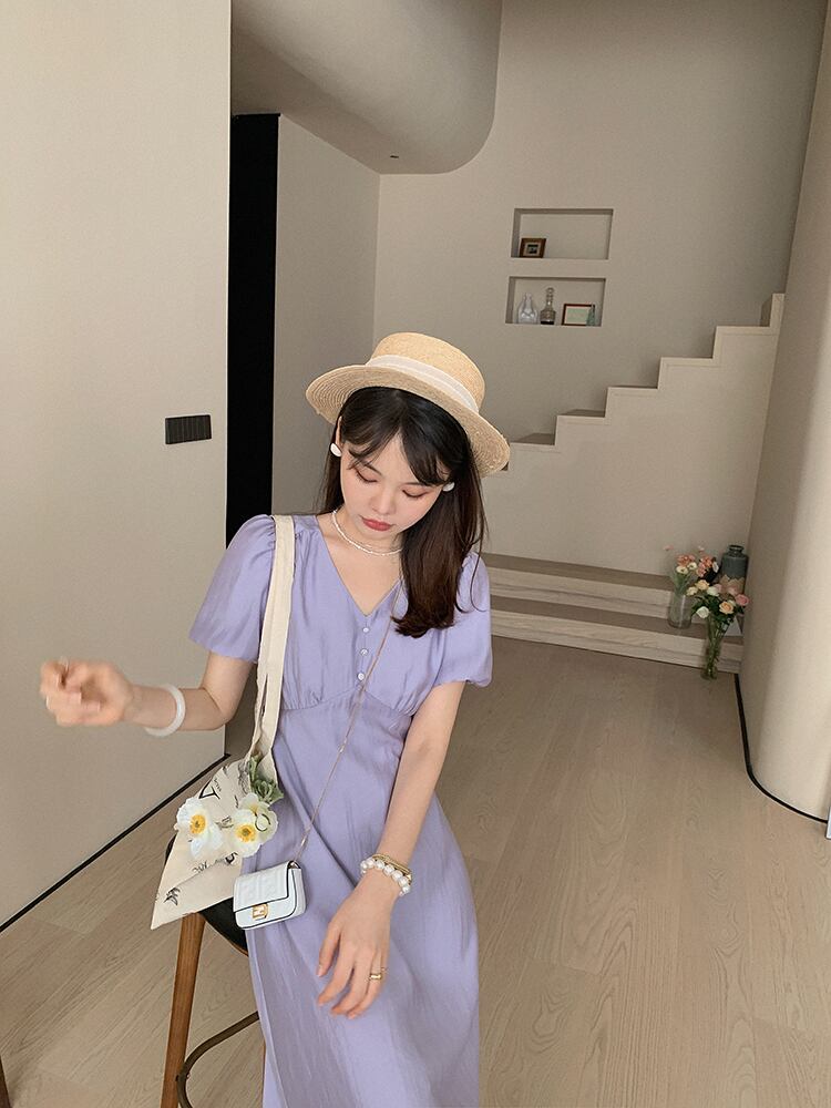 ミスシマリス[リトルマーメイドドレス]パフスリーブドレス女性2021年夏新しいウエストウエストは細くて西洋的でした missi953939737