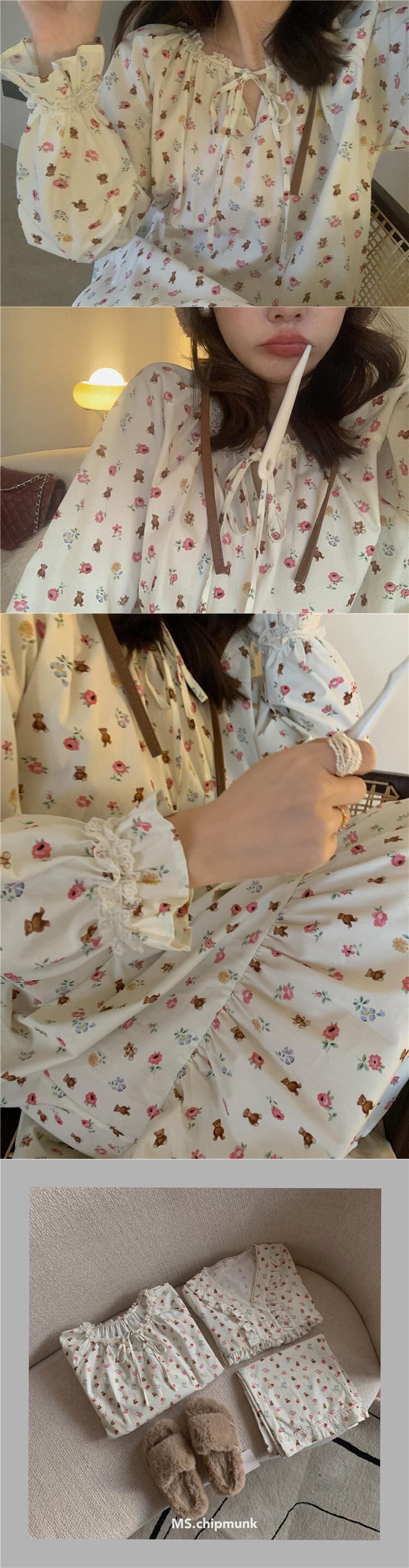 ミスシマリス[リナベア]かわいい花柄のパジャマドレスパジャマパンツスーツをノックして甘く眠る missi81907596105