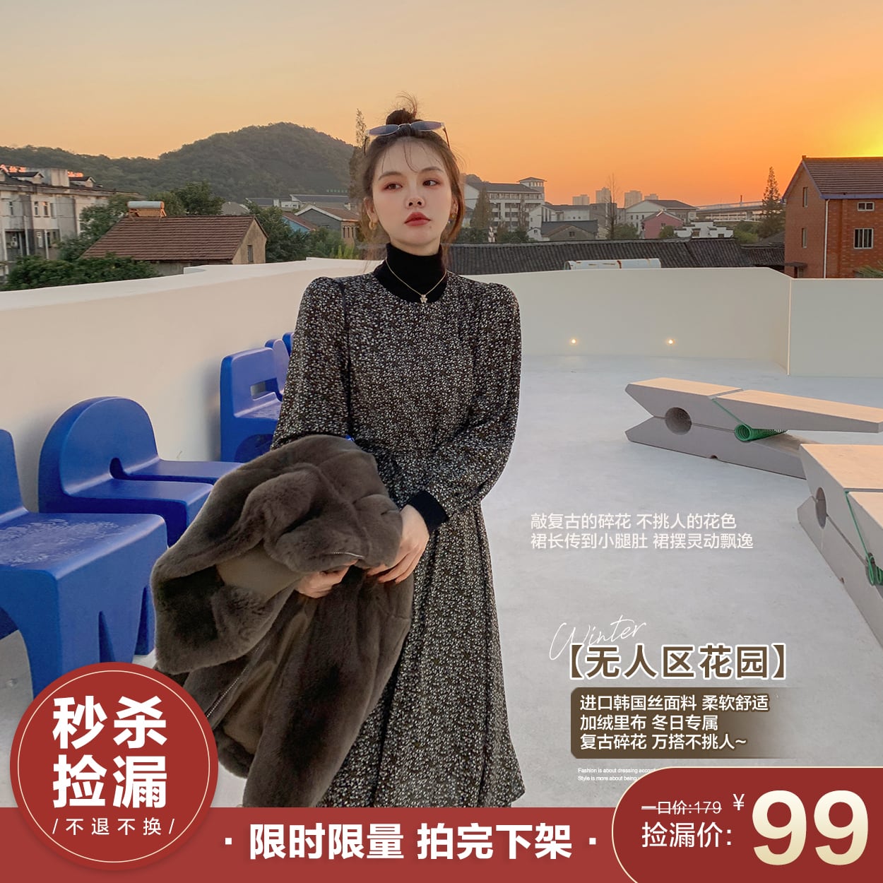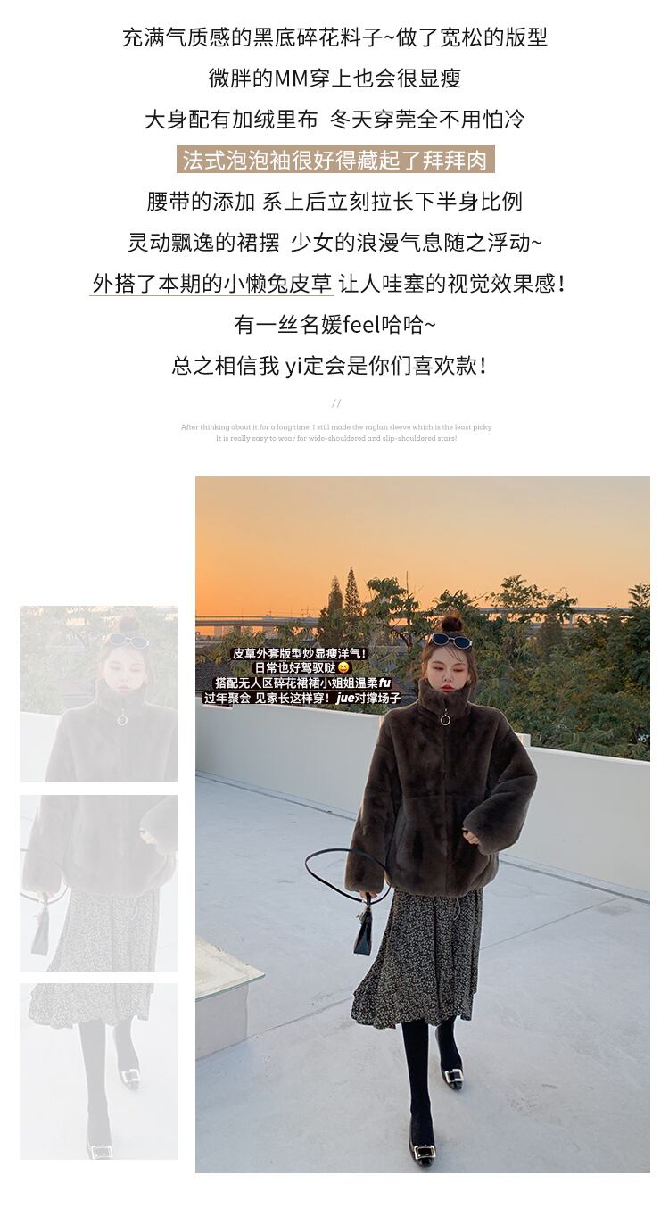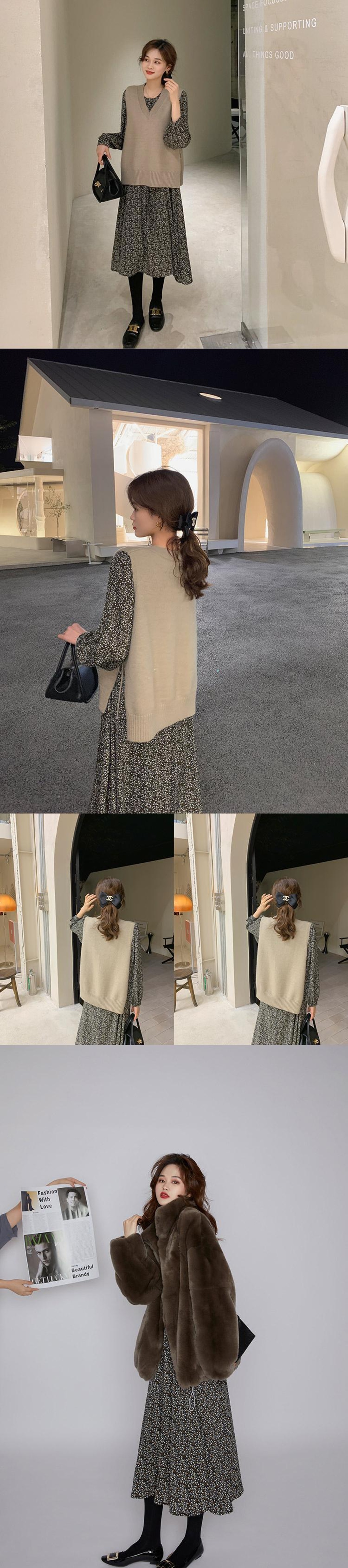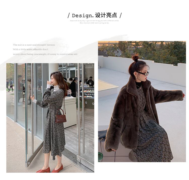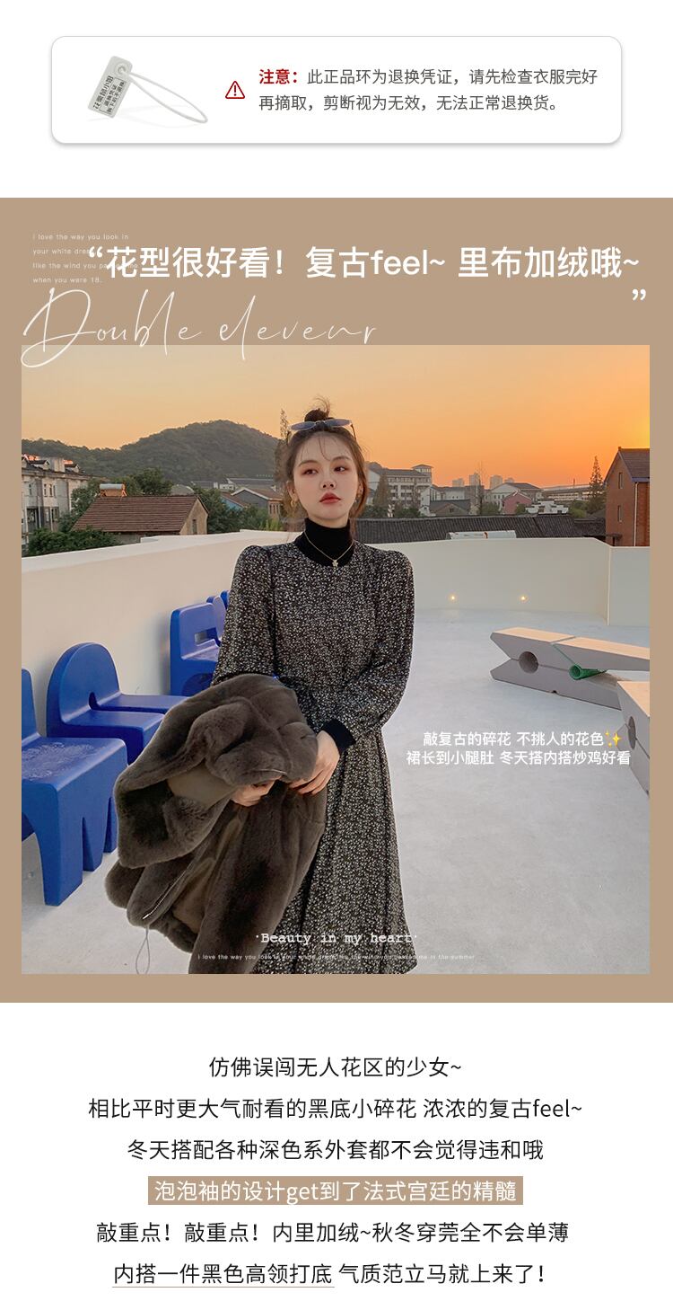 ミスチップマンク小さな花柄のドレス女性の秋と冬のレトロな気質スリムなロングスカートウエストと薄いボトムスカート missi25555966991