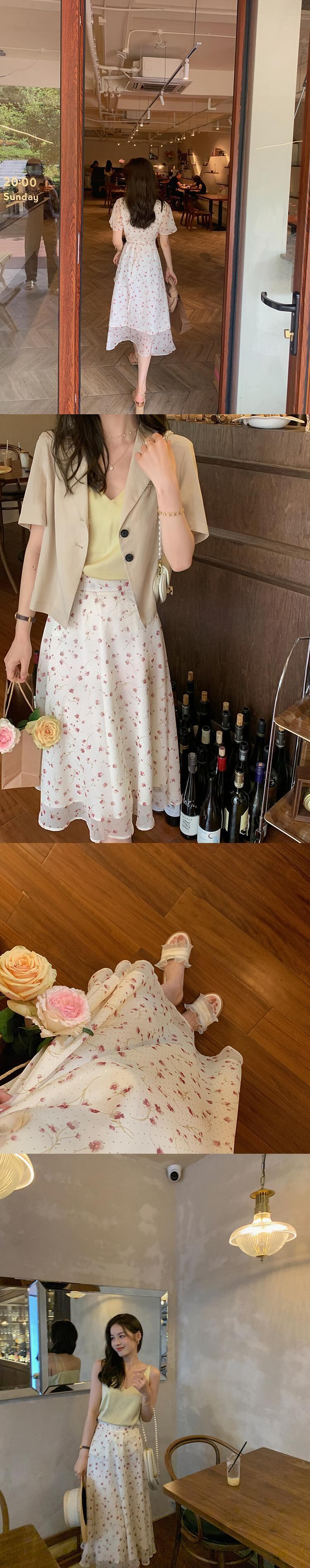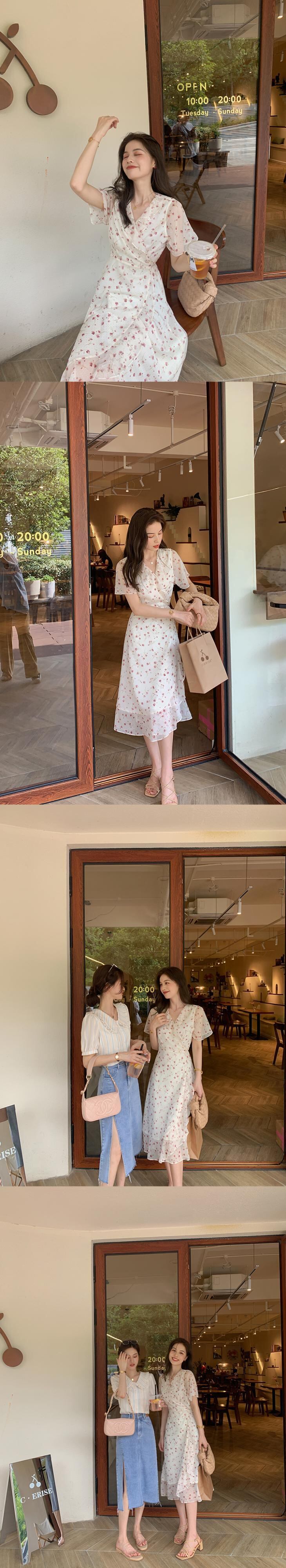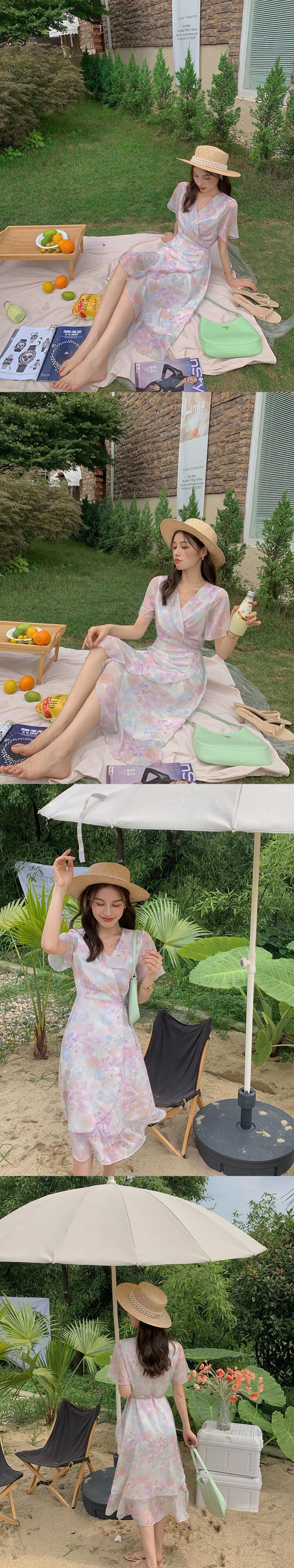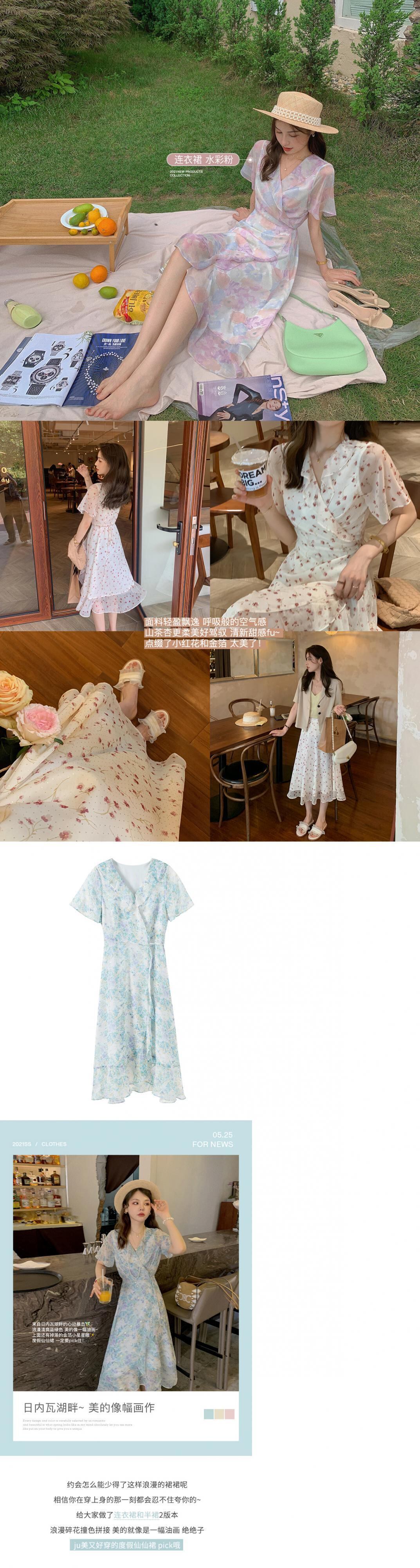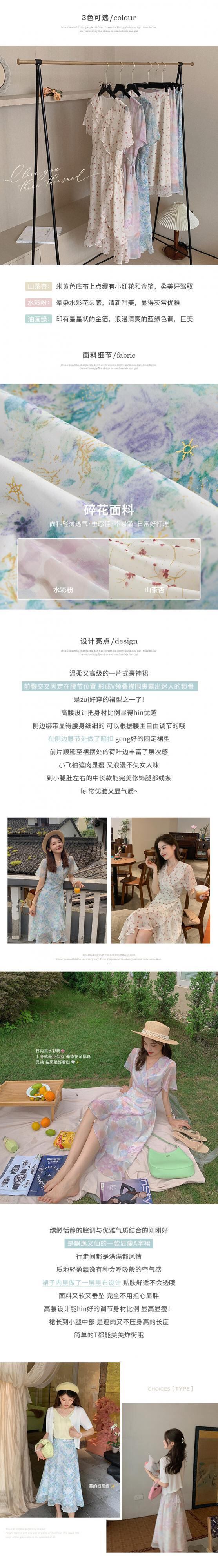 ミスシマリス【ジュネーブ湖】半袖花柄Vネックワンピース/スカートフライングスリーブスカート missi3790650097