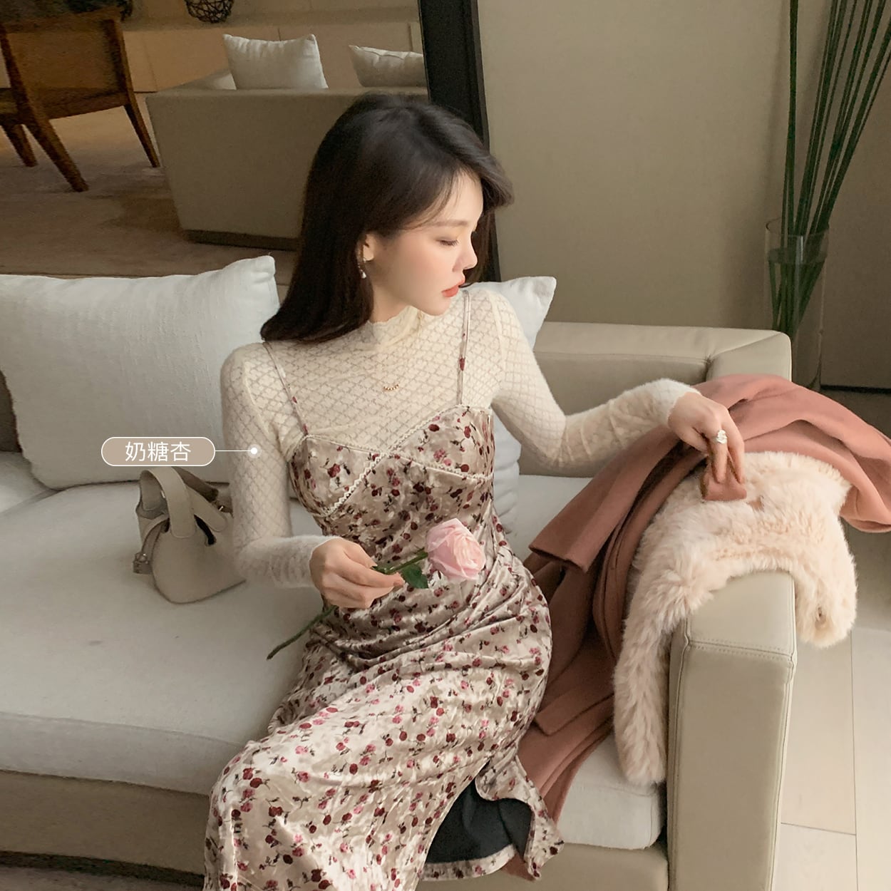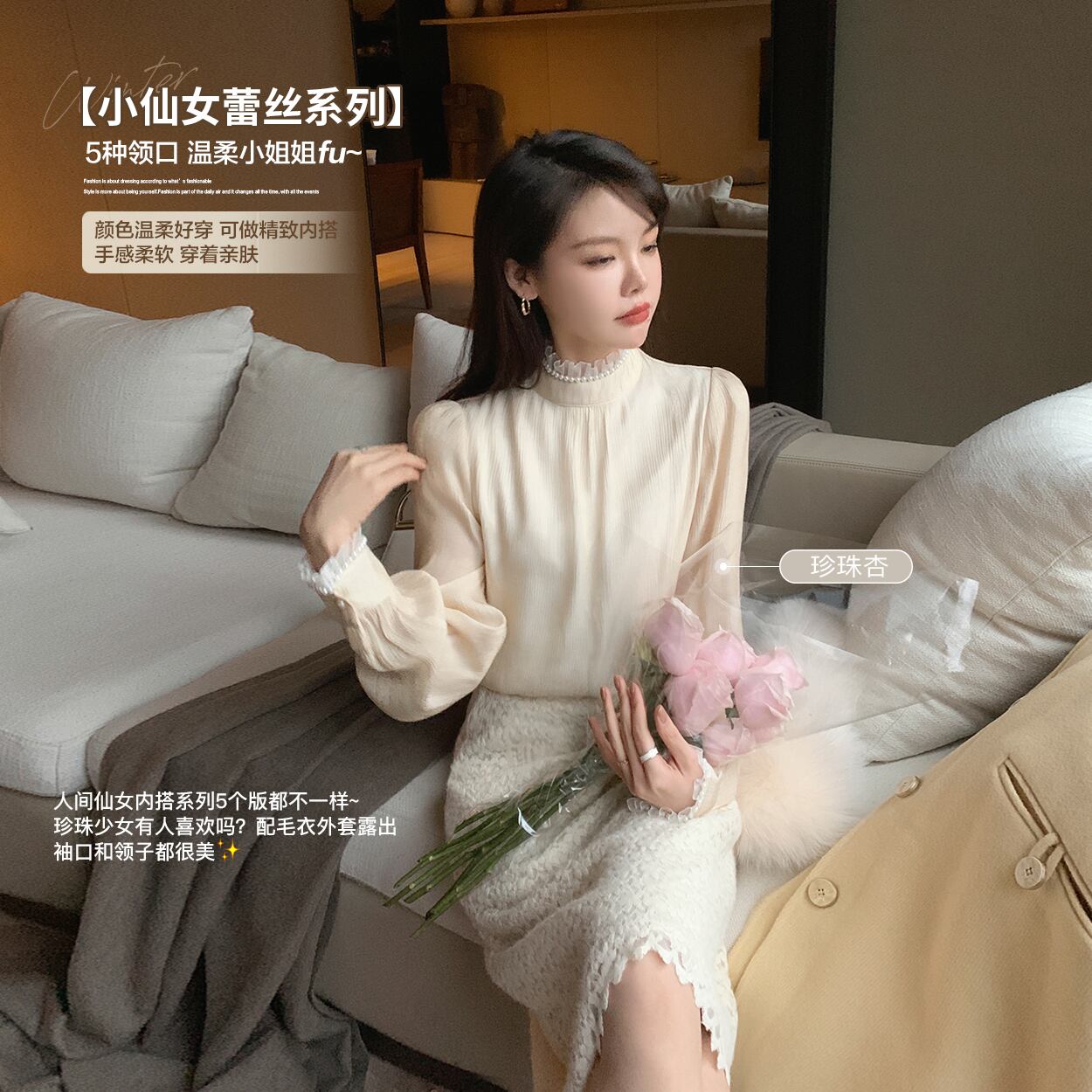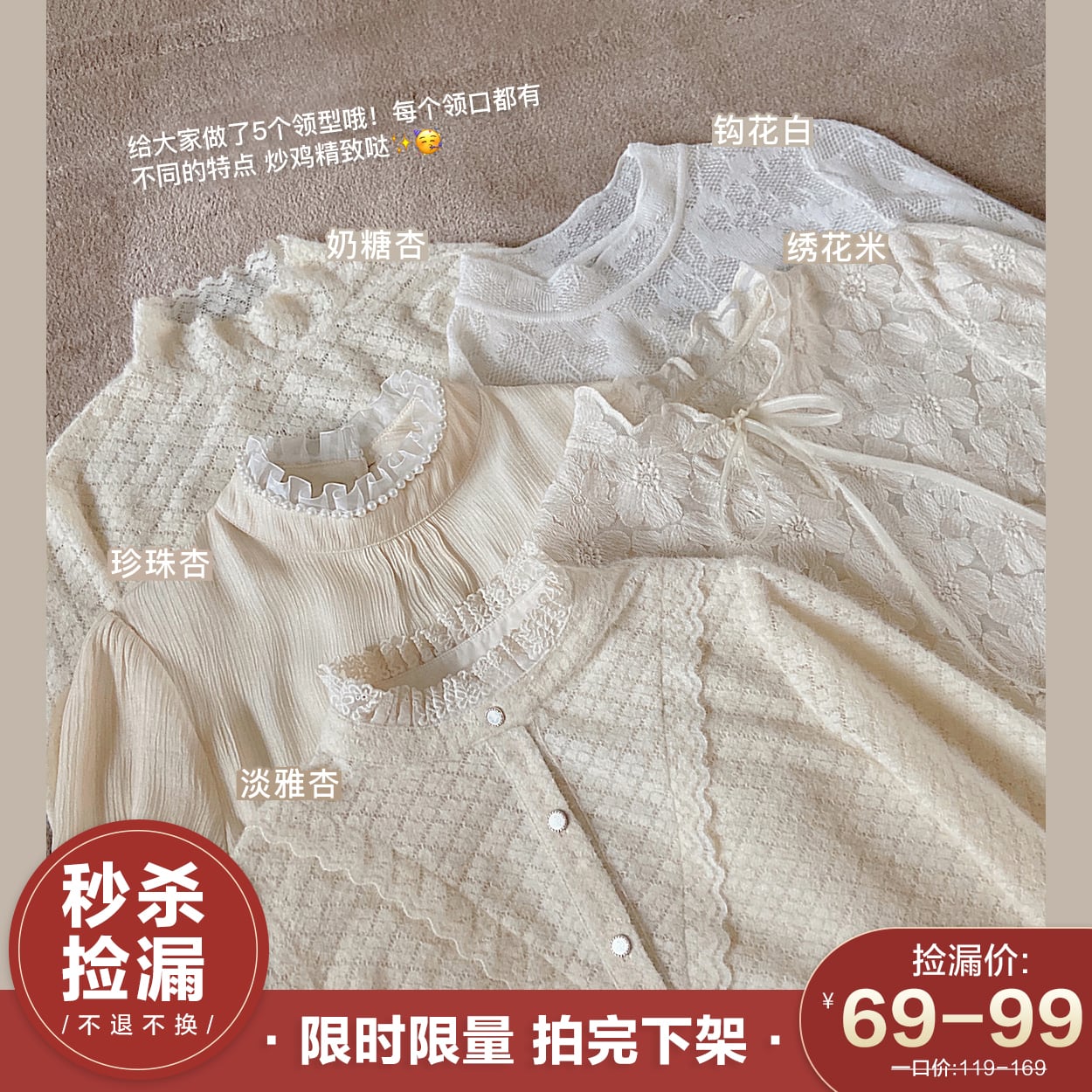 色:アプリコットスポット,タフィーアプリコットスポット,フックフラワーホワイトスポット,刺繡ライススポット,パールアプリコットスポット