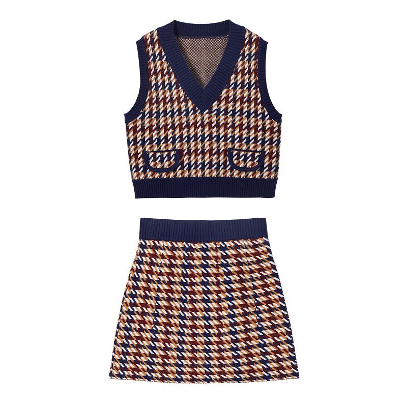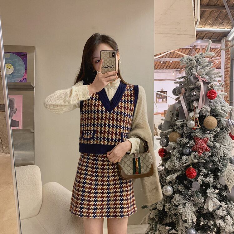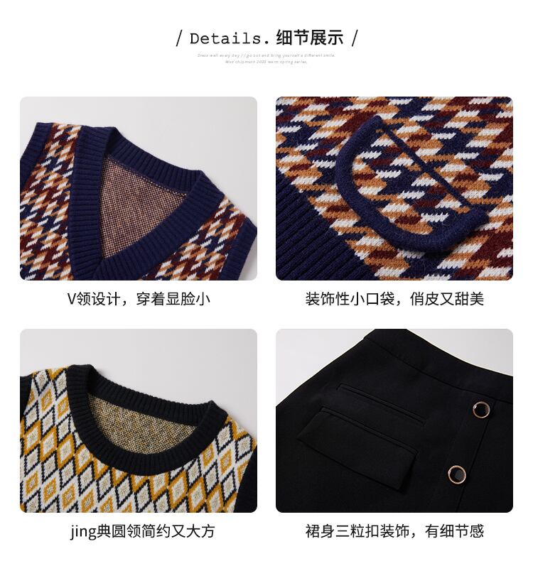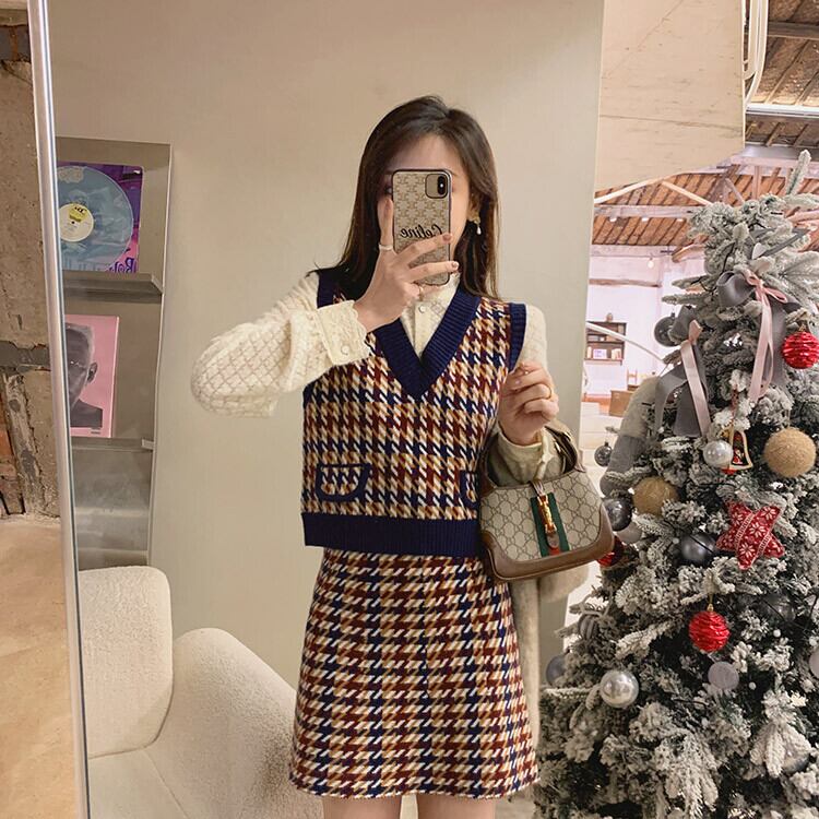 ミスチップマンクセータースーツスカートツーピースセット2020新しい女性ネット赤揚げストリートスカートファッション秋冬 missi42622150109