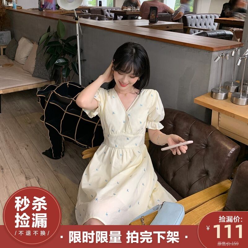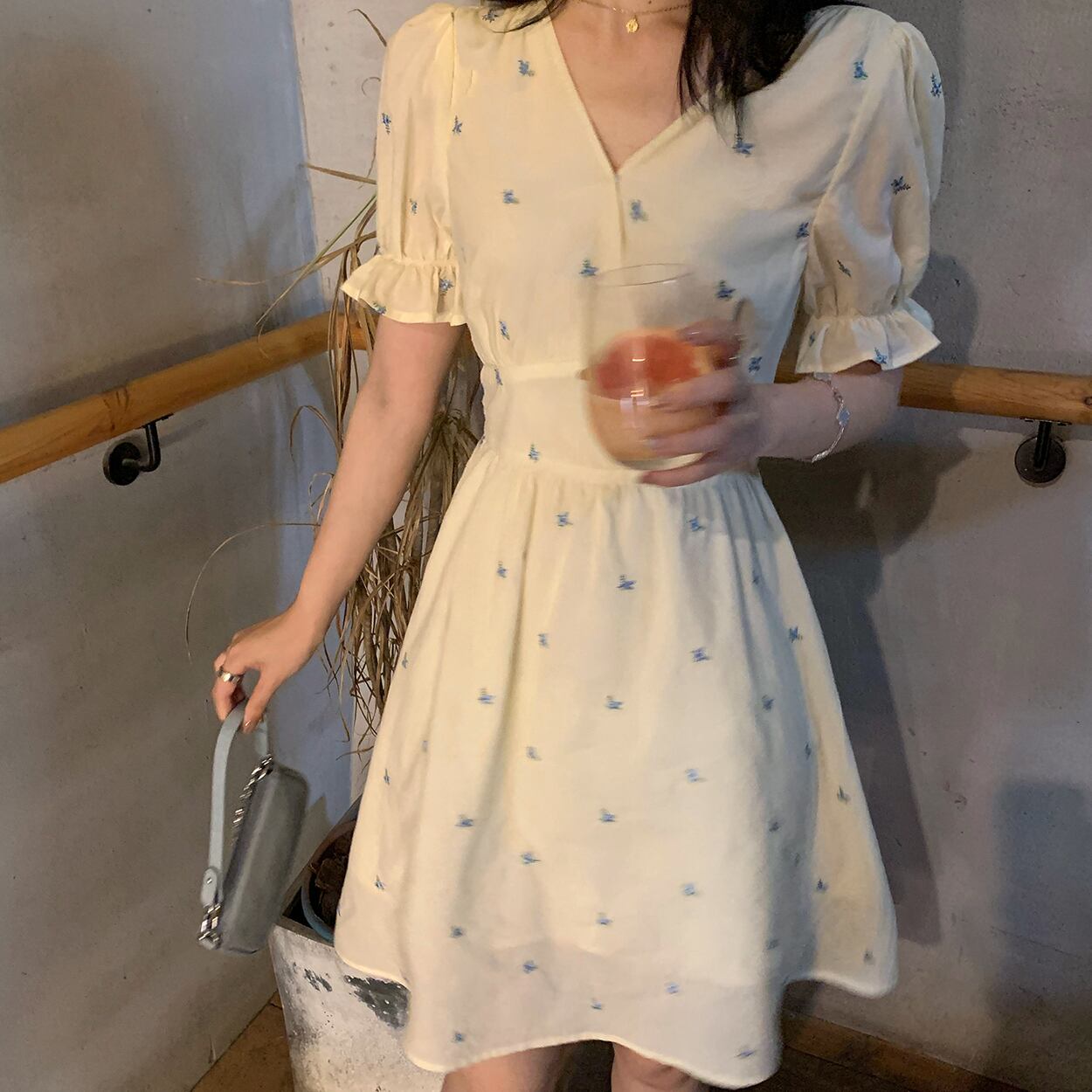 ミスシマリスはキュートで小さな刺繡が大好きです〜羽のように軽い薄い綿のハイウエスト刺繡ドレス missi83309039515