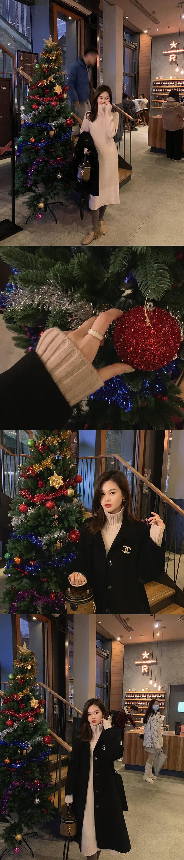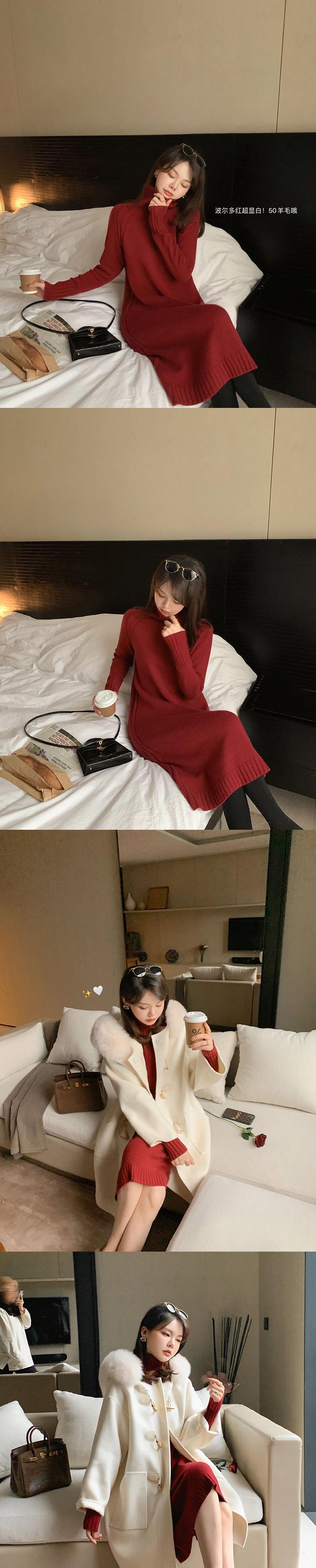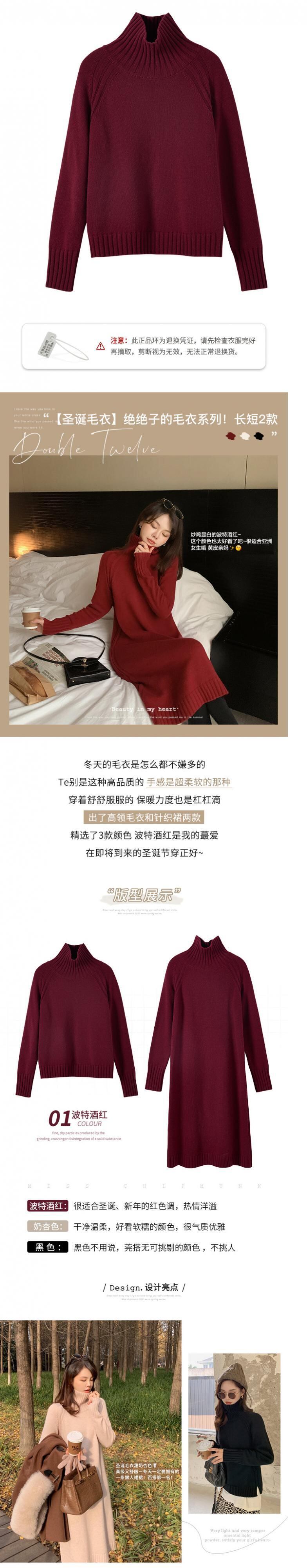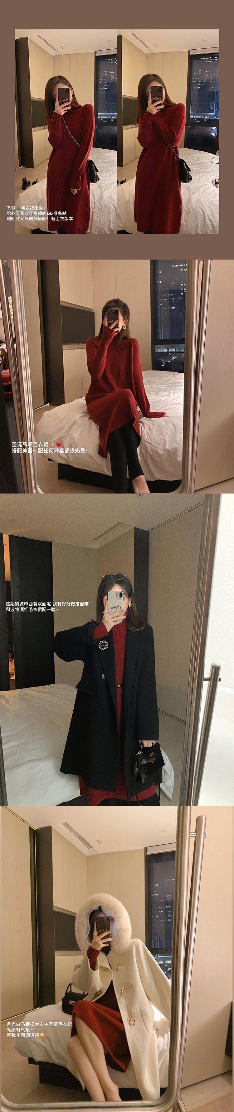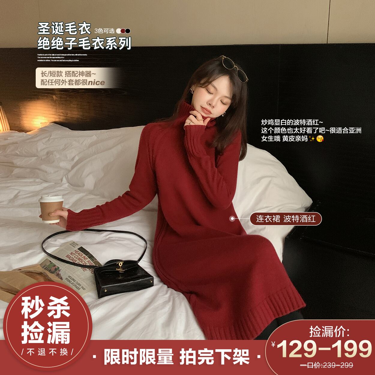 ミスチップマンククリスマスレッドタートルネックプルオーバーウールセーターミドル丈ストレートドレス2020女性 missi39289609170