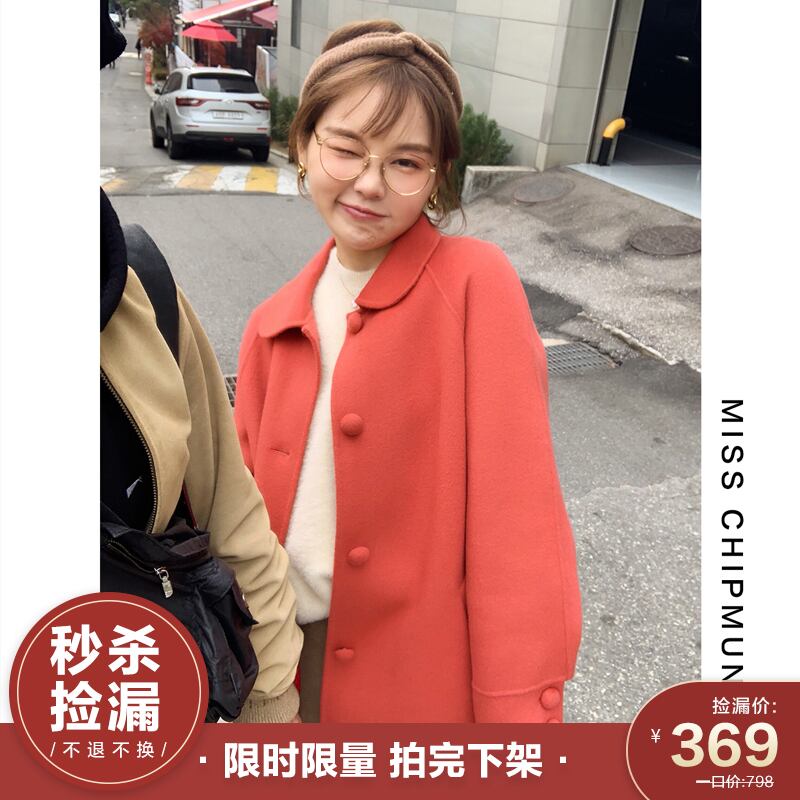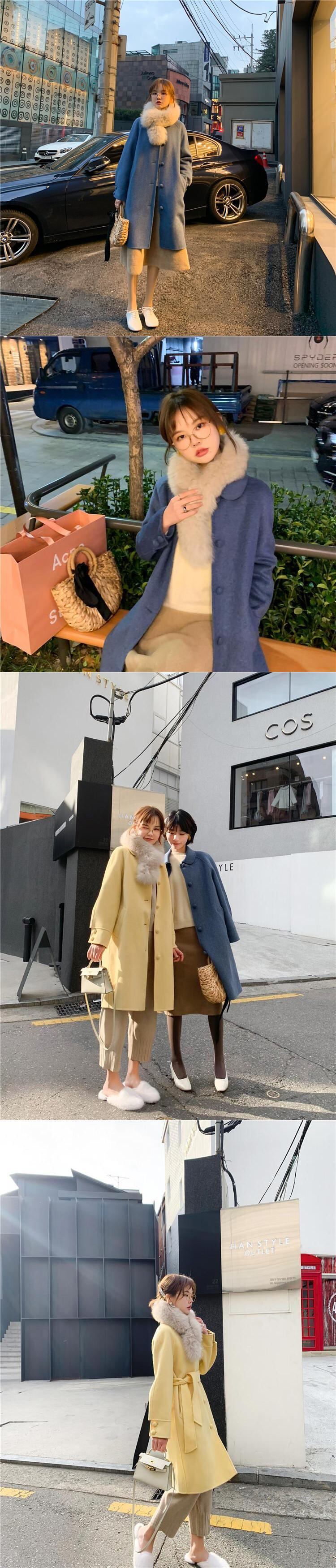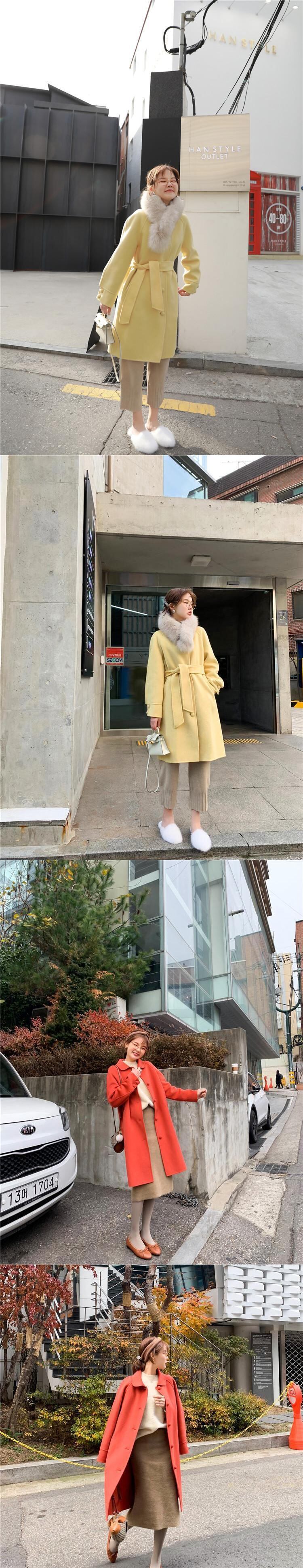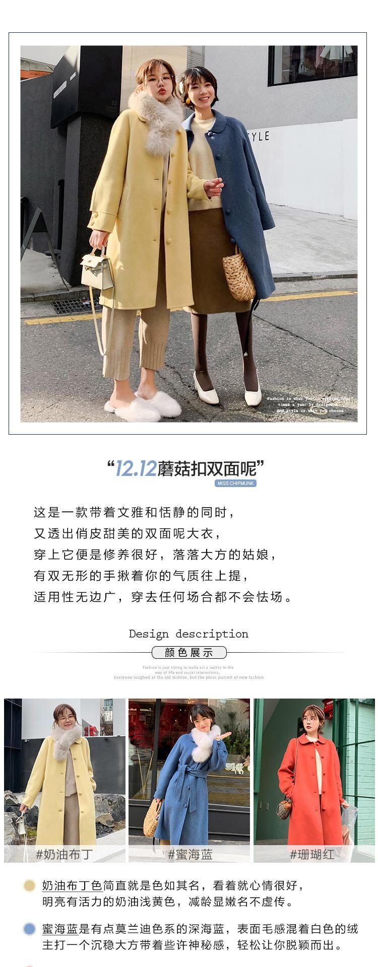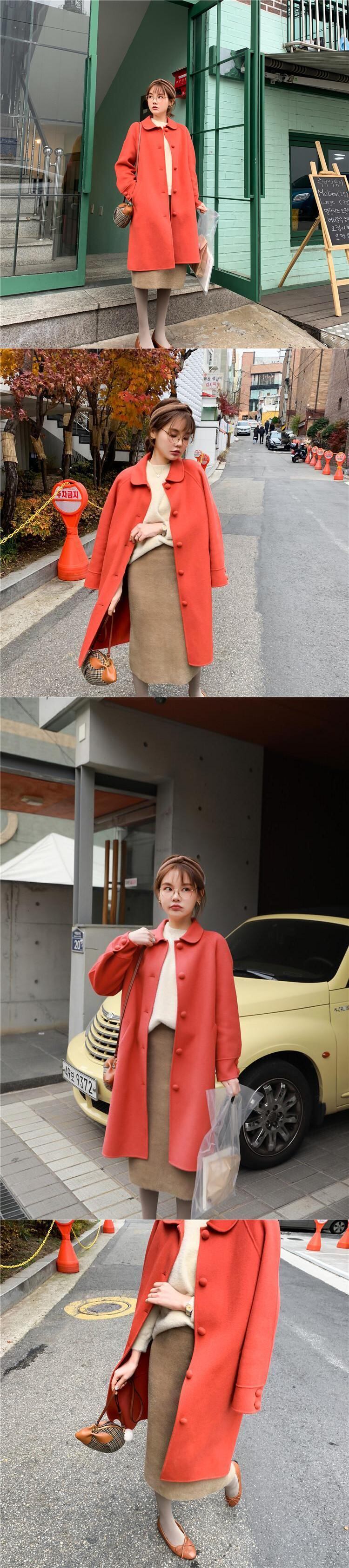 きのこボタンコートドールカラーロング高密度両面ウールコート missi59336402824