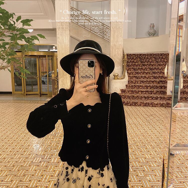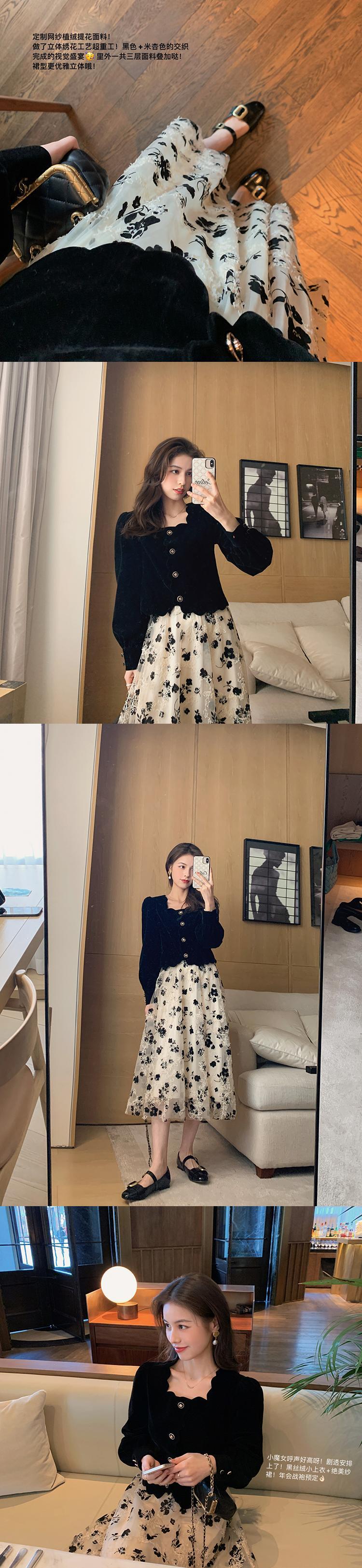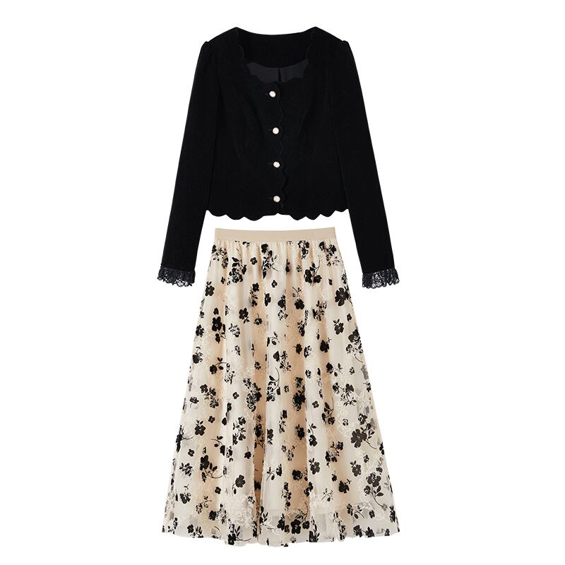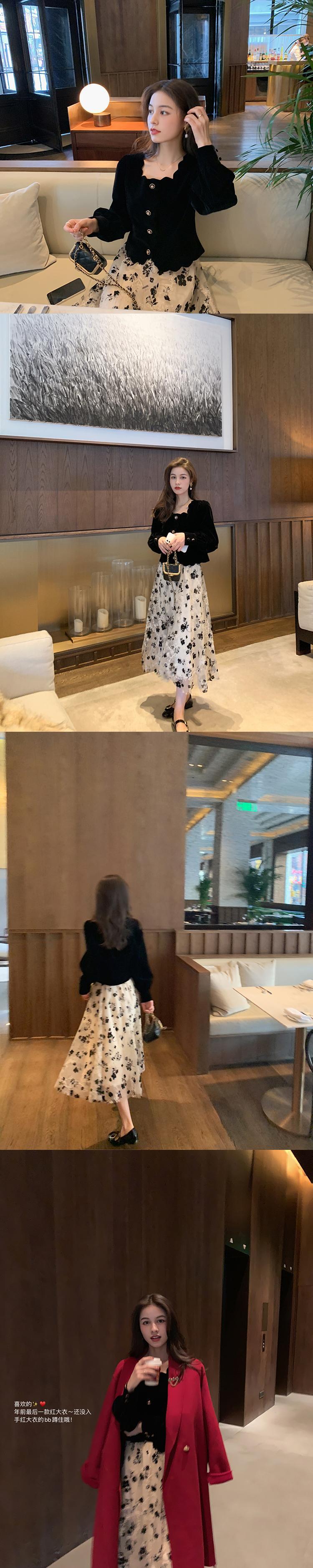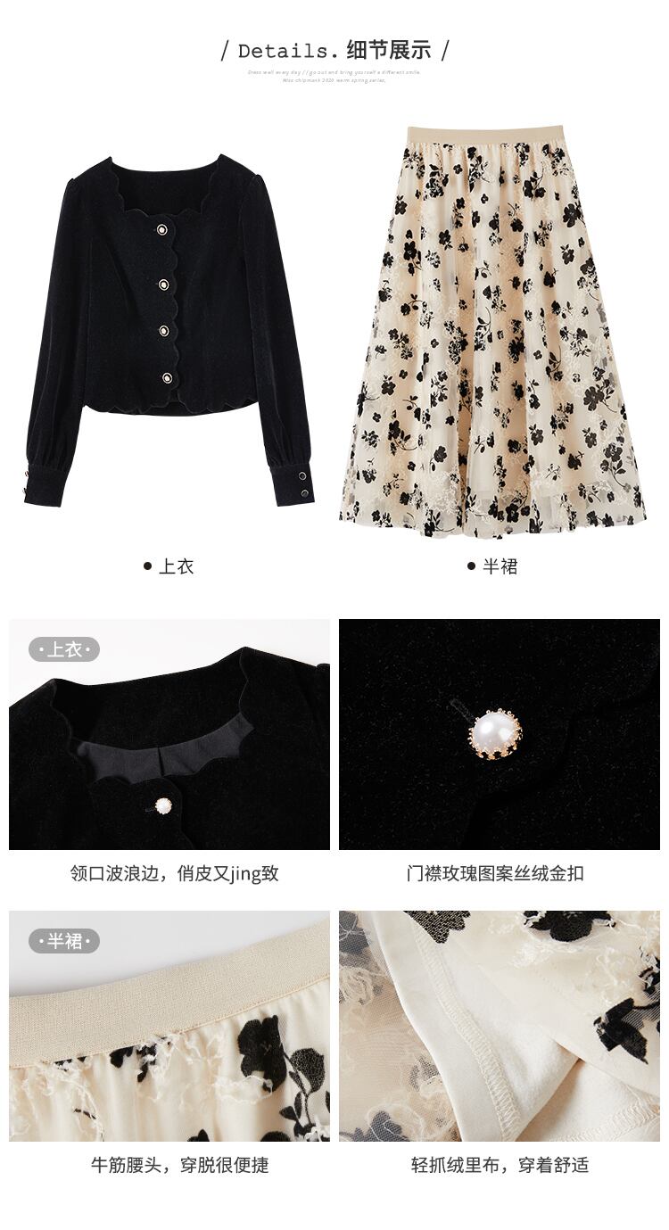 色:トップベルベットブラックスポット,ハーフスカート咲くアプリコットスポット