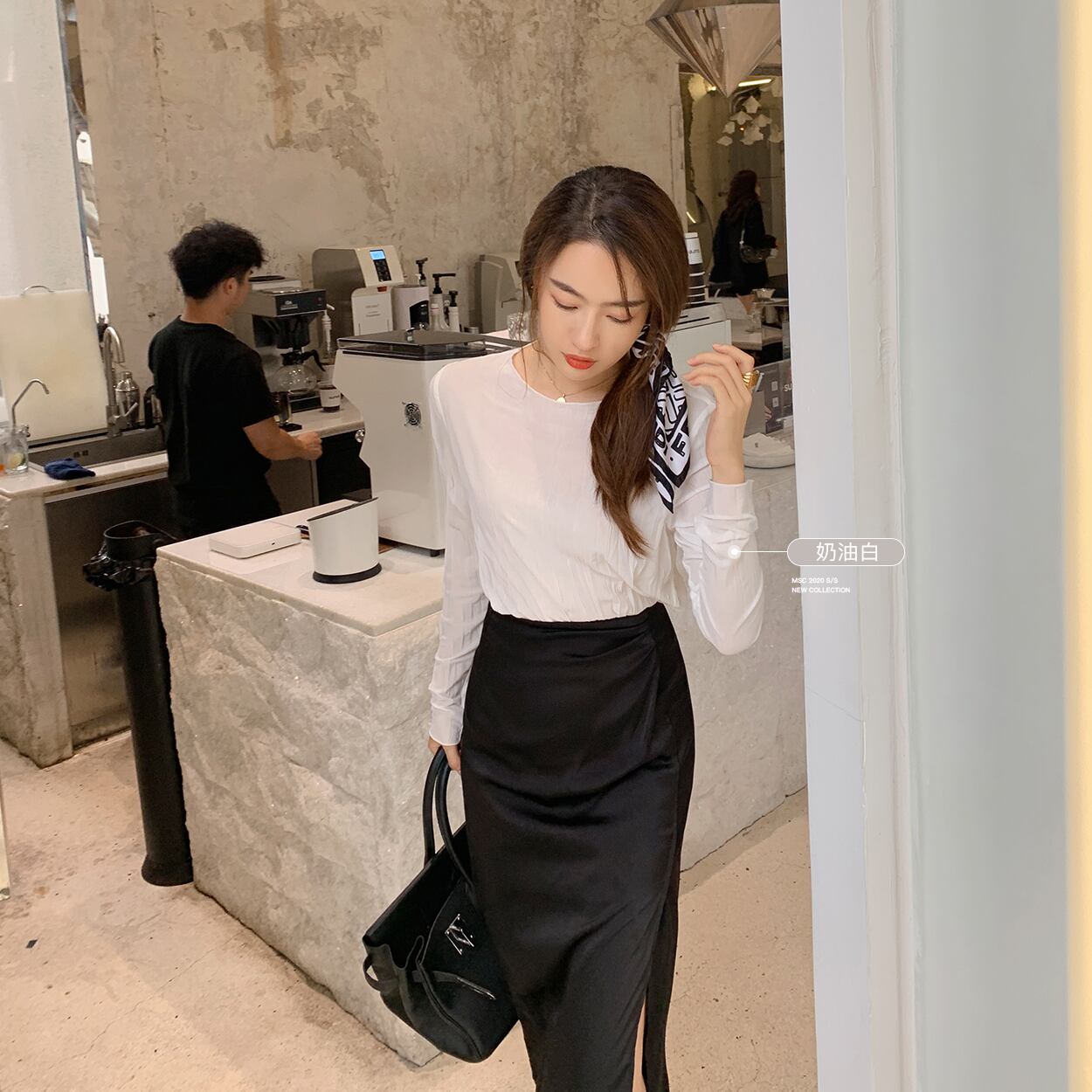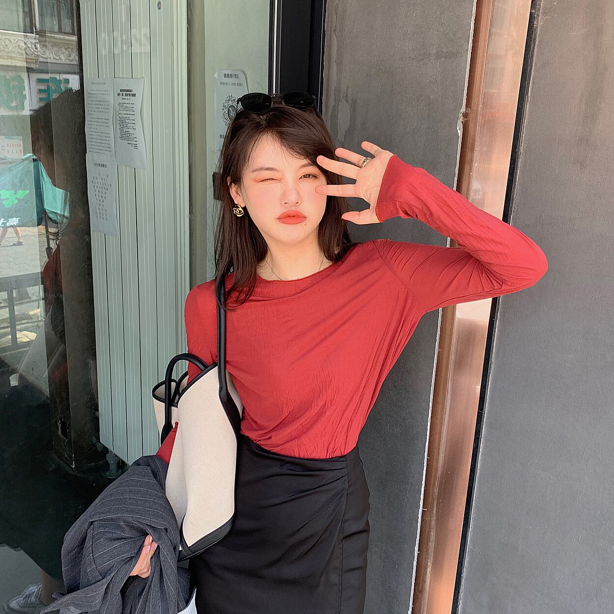 ミスシマリス初秋トップ2020人気スタイルルーズTシャツレディースシンオールマッチ長袖Tシャツ missi30333678173