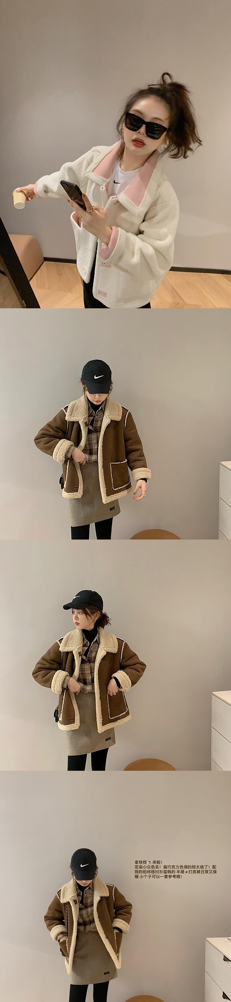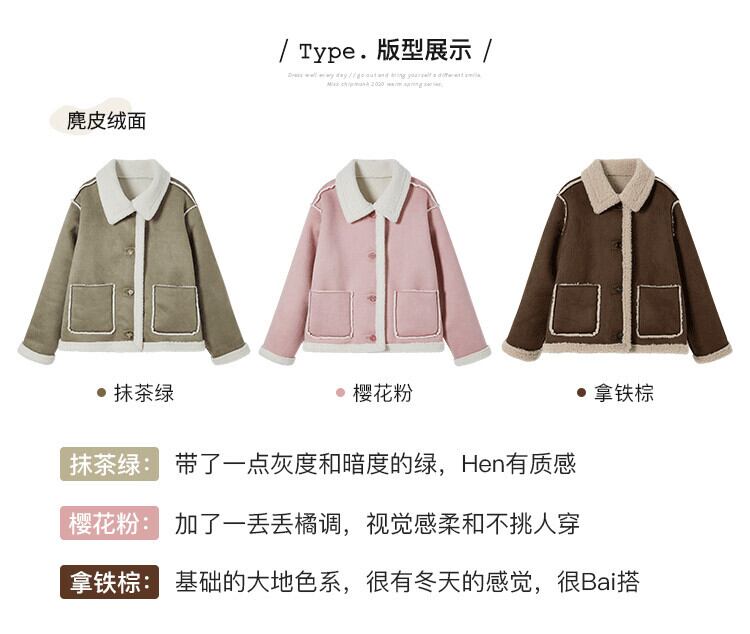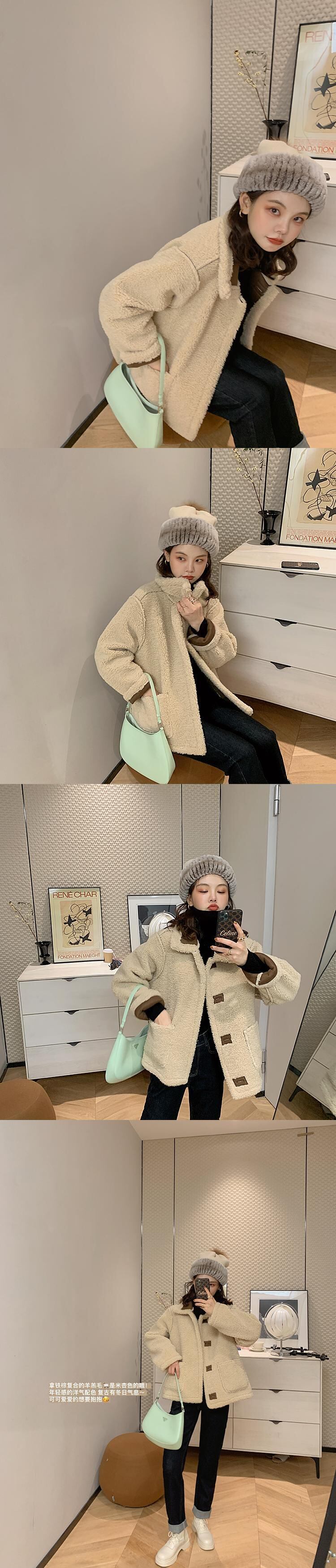 ミスシマリスラムウールコート女性2020新しい秋と冬のオールマッチプラスベルベットの厚いふわふわショートコート missi19344032136
