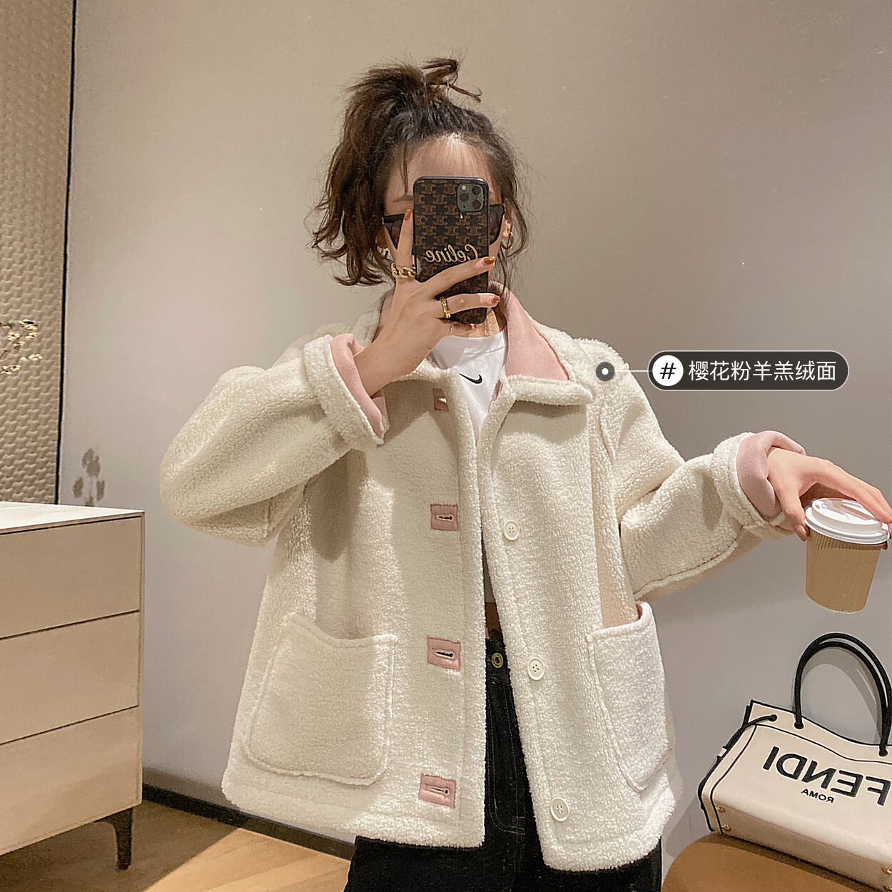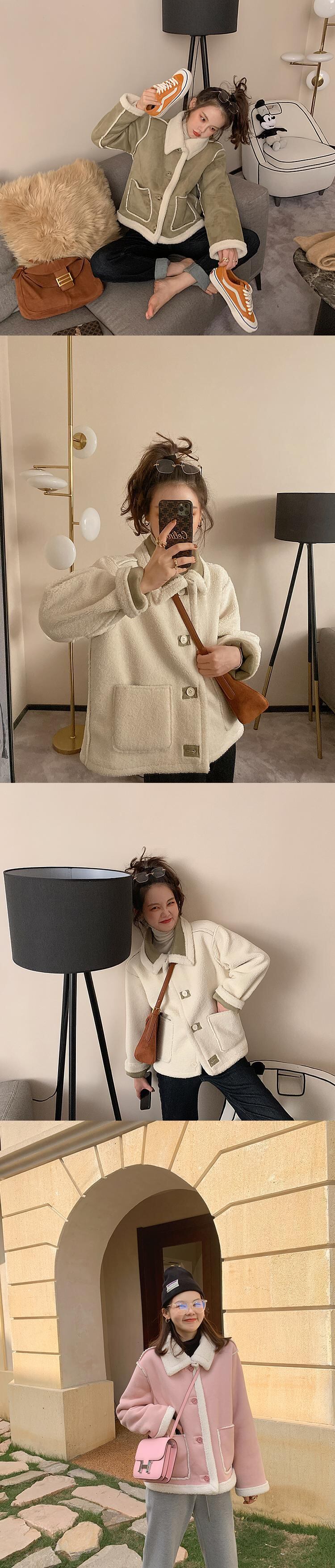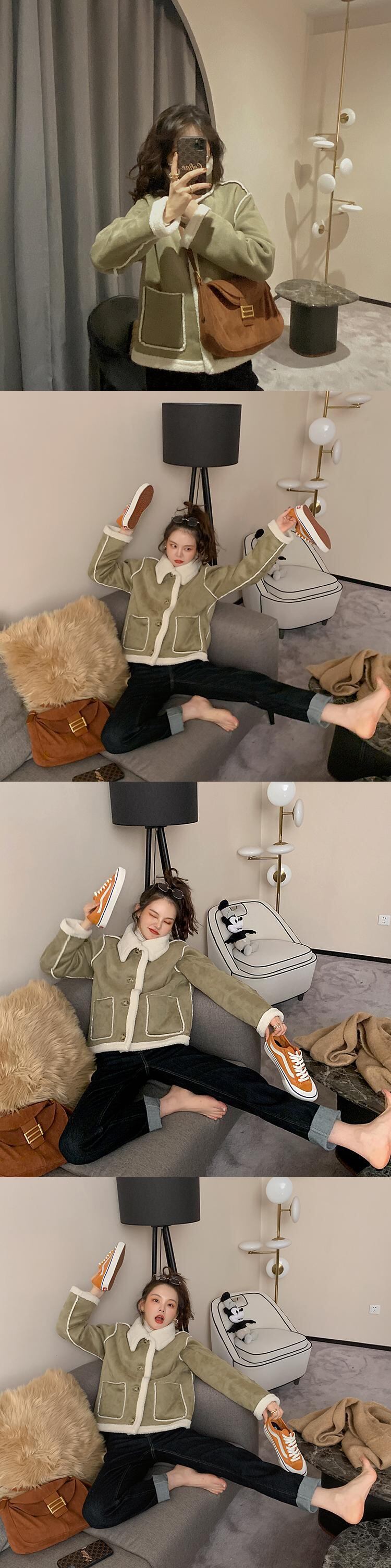 ミスシマリスラムウールコート女性2020新しい秋と冬のオールマッチプラスベルベットの厚いふわふわショートコート missi19344032136