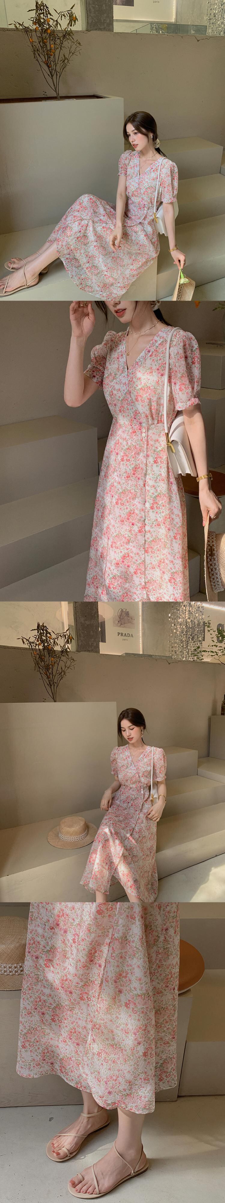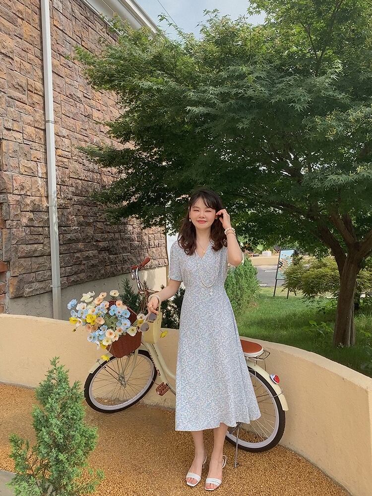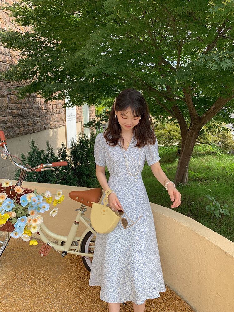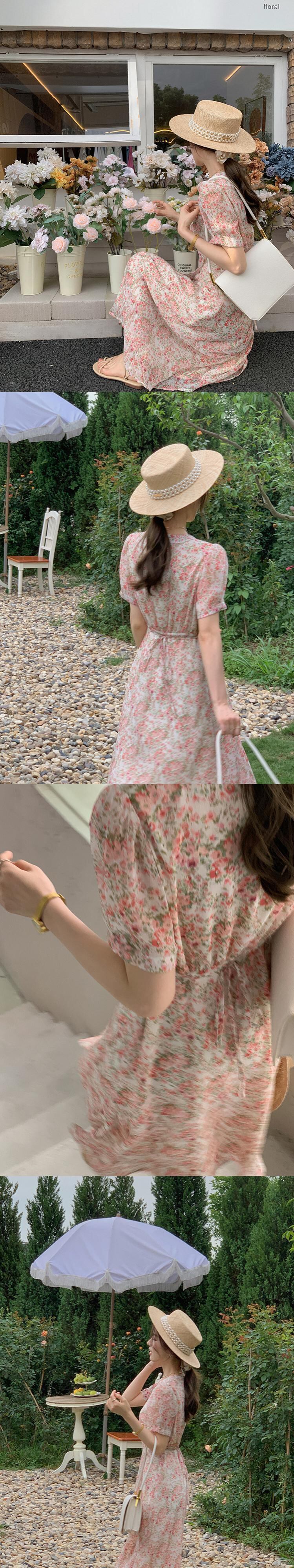 ミスシマリス[ルーフガーデン]フレンチティーブレイクスカートVネックフローラルドレスサマーウエストウエスト&シンスカート missi39480122088