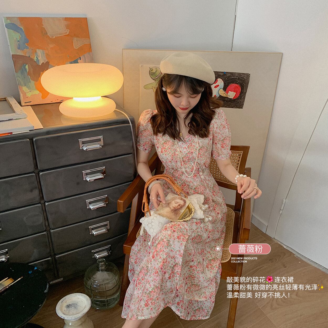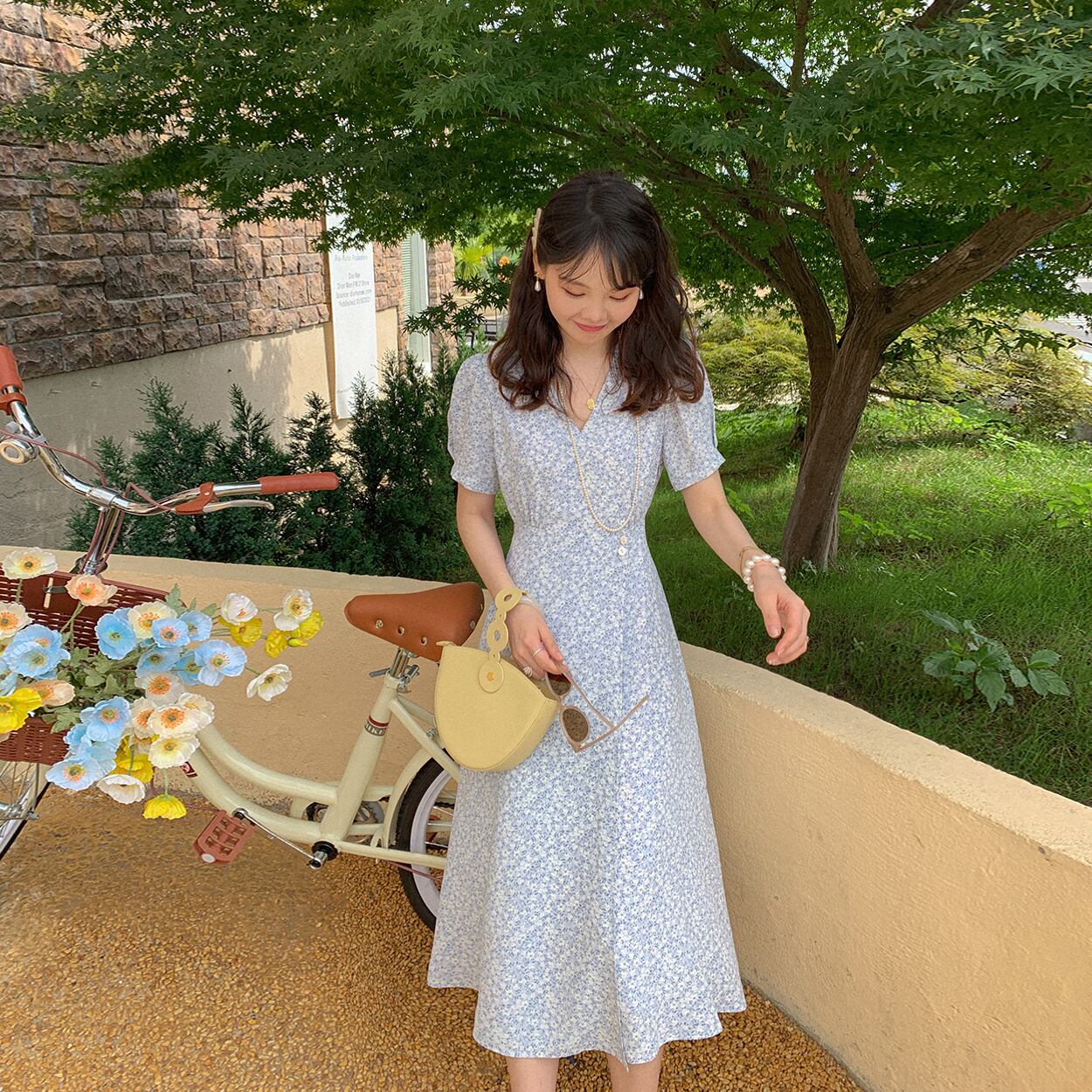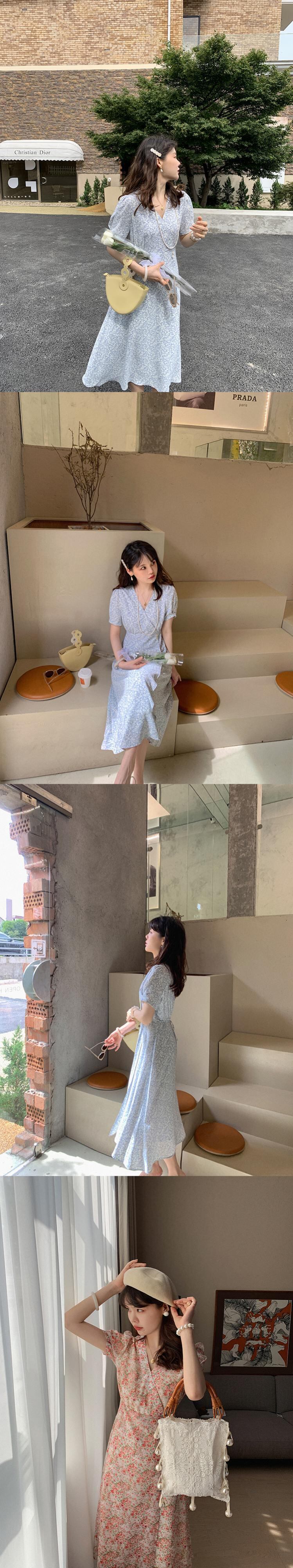 ミスシマリス[ルーフガーデン]フレンチティーブレイクスカートVネックフローラルドレスサマーウエストウエスト&シンスカート missi39480122088