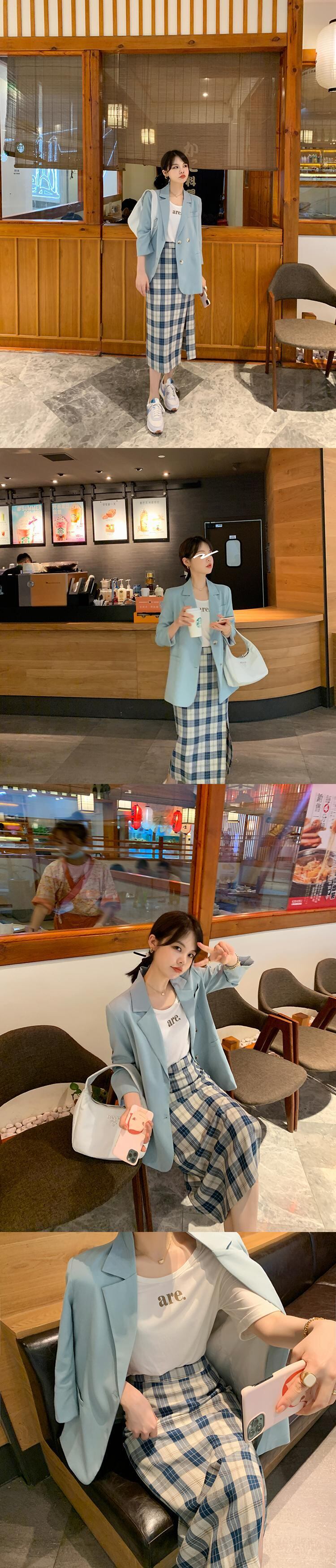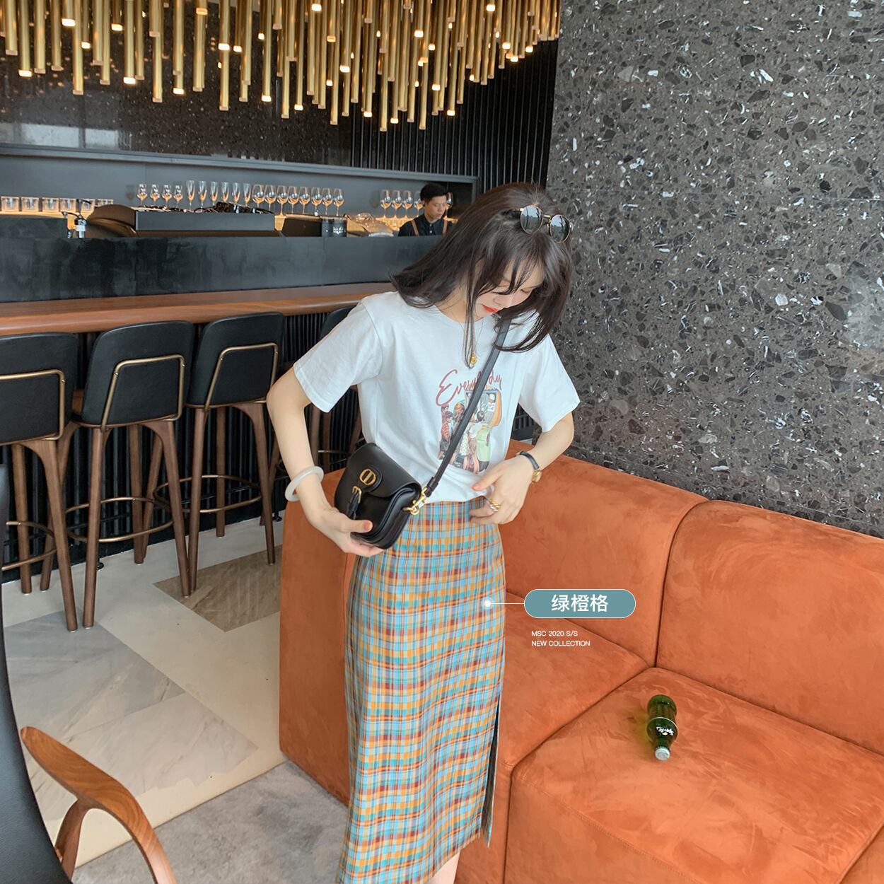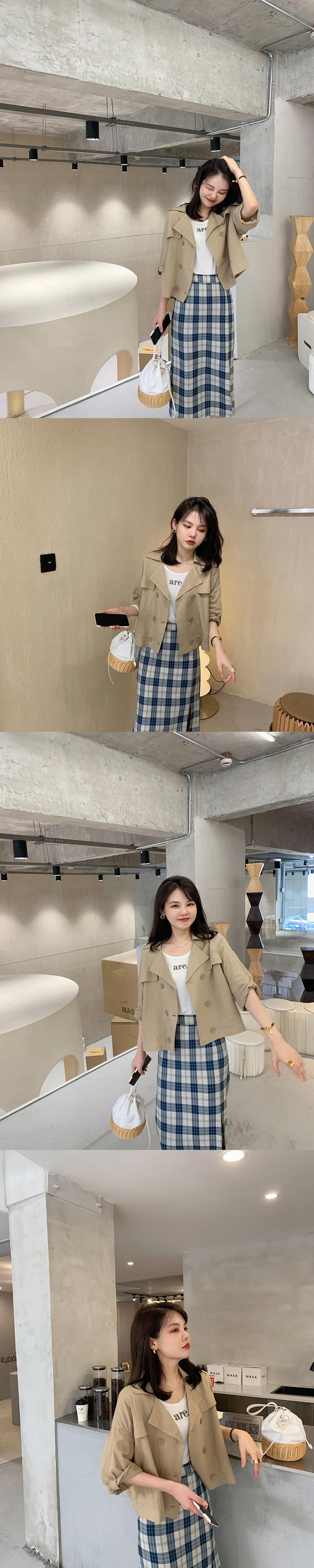 ミスシマリスハーフスカート2020夏新作チェック柄スプリットミドル丈Aラインハイウエストスリムスカート missi35616835806