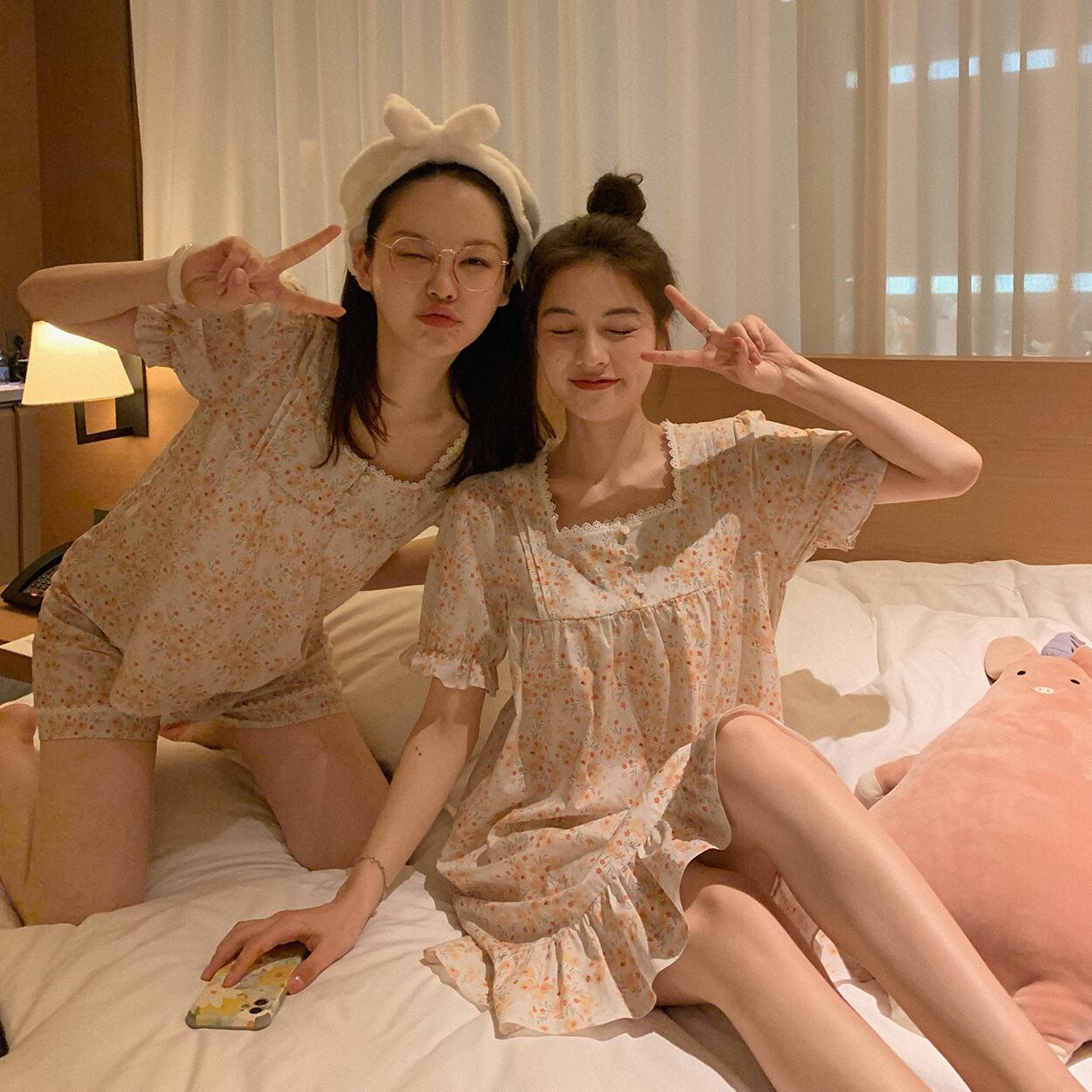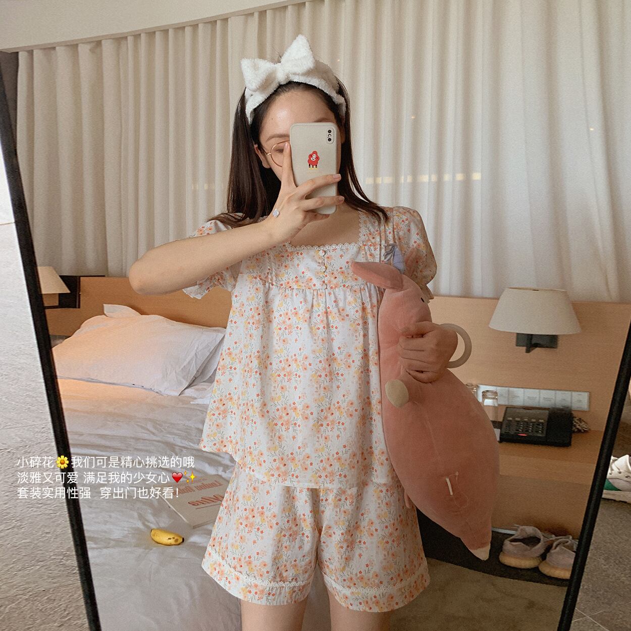 ミスシマリス[おやすみスウィートドリームパジャマセット]ナチュラルコームドコットンホームウェアショートパンツネグリジェ missi9488865862