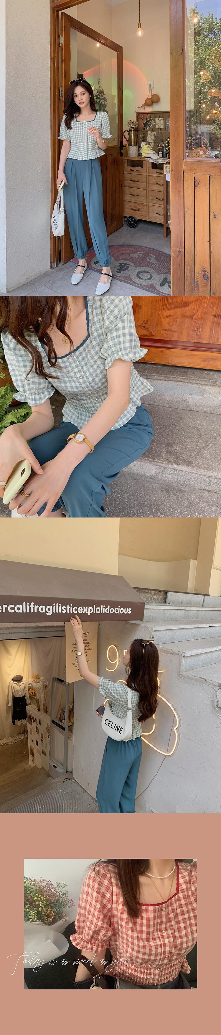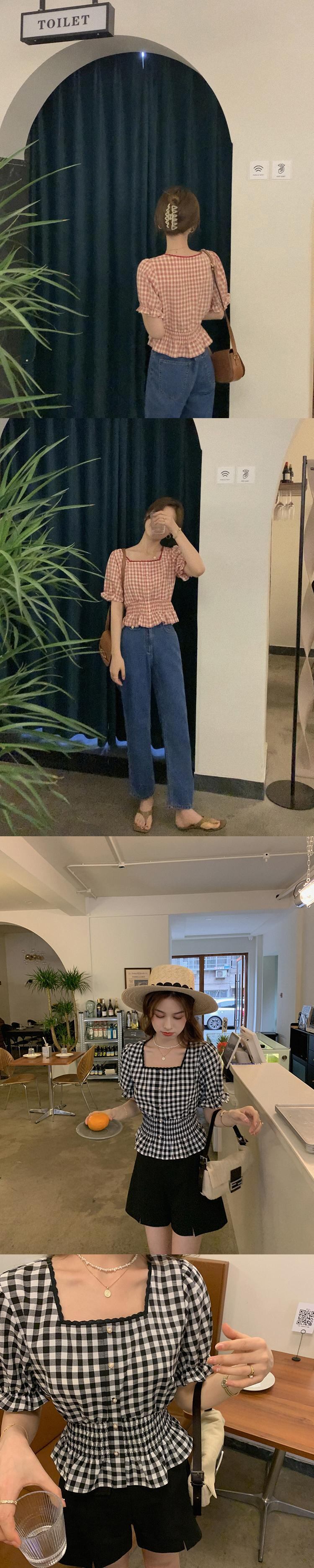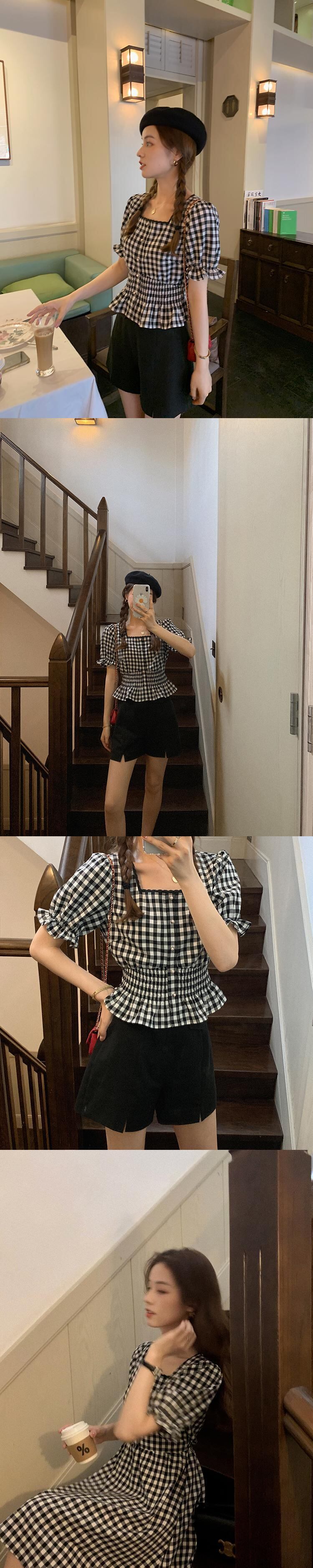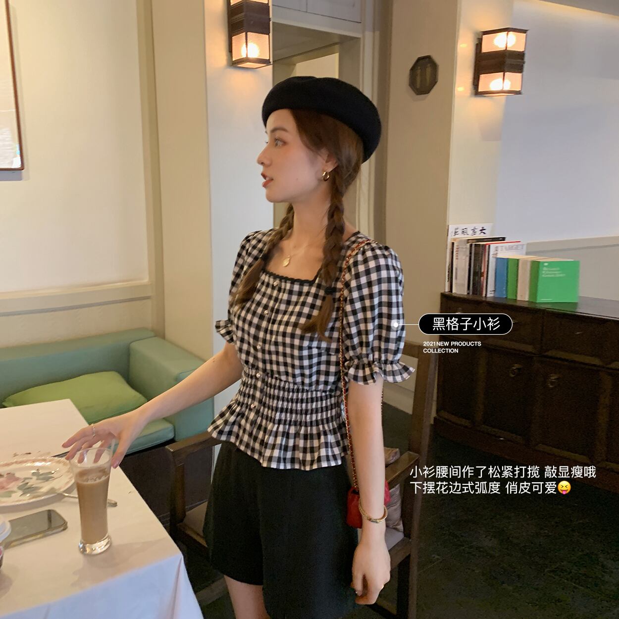 ミスチップマンク【ピクニックガール】チェック柄ワンピースサマー半袖スクエアカラーショートウエストスカートシャツ missi89409991627
