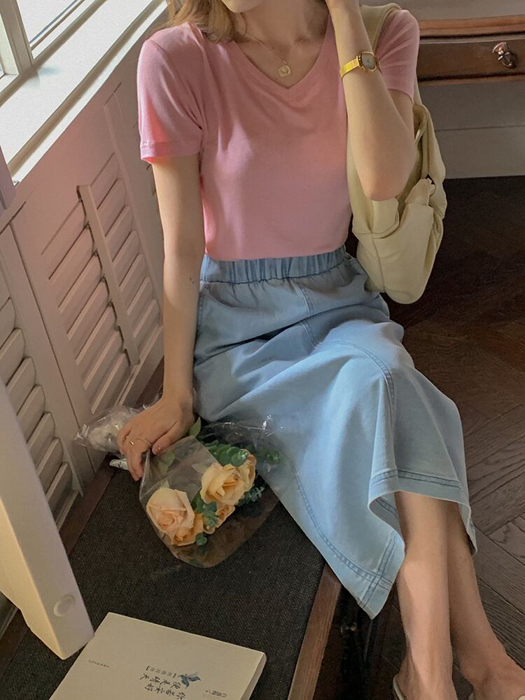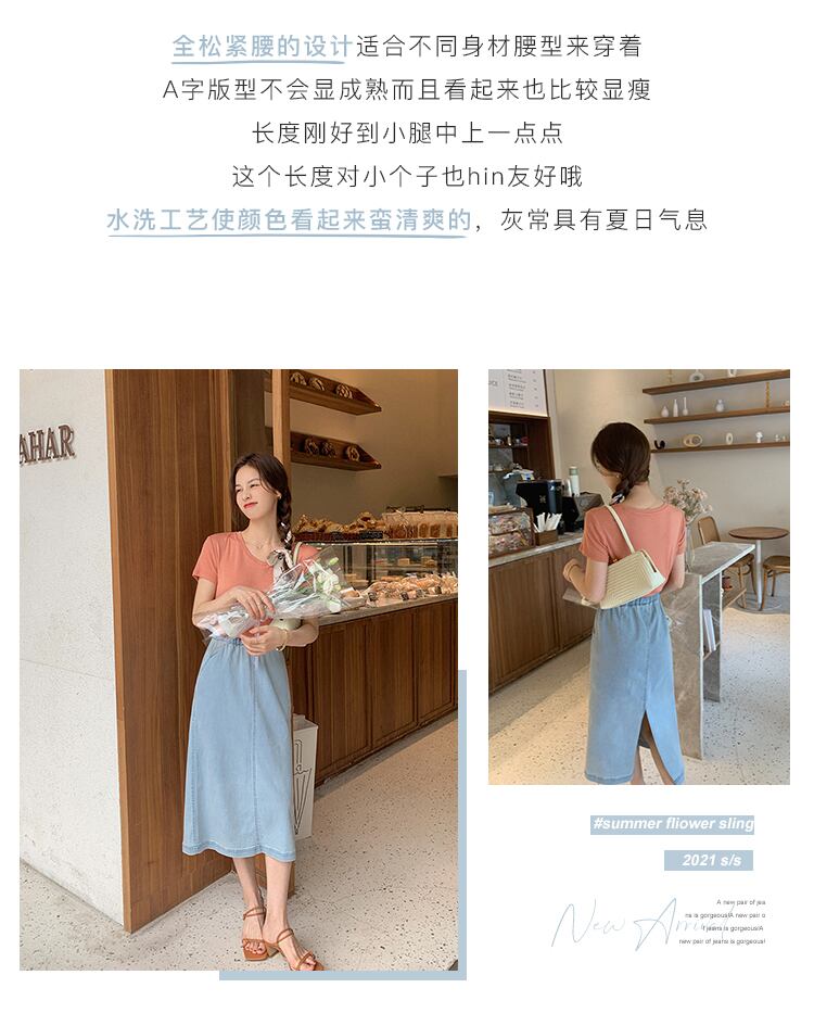 ミスシマリス【シーストリートデニムスカート】Aラインスカート2021レディースサマーニューハイウエストライトブルースカート missi33158878791