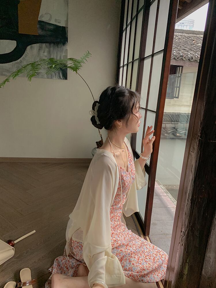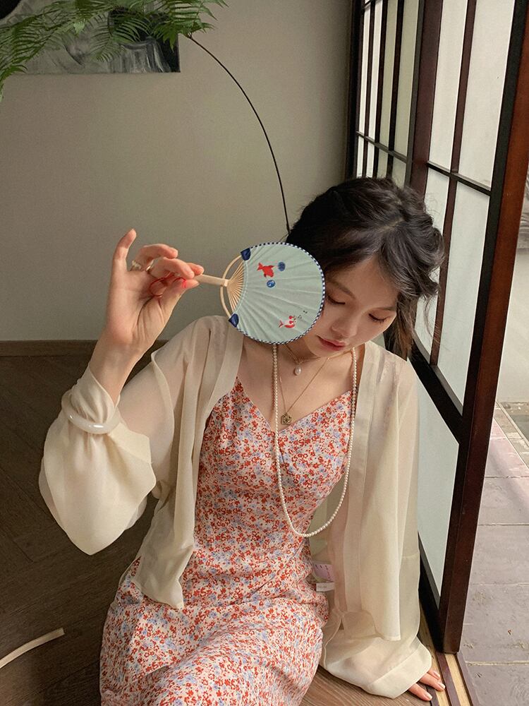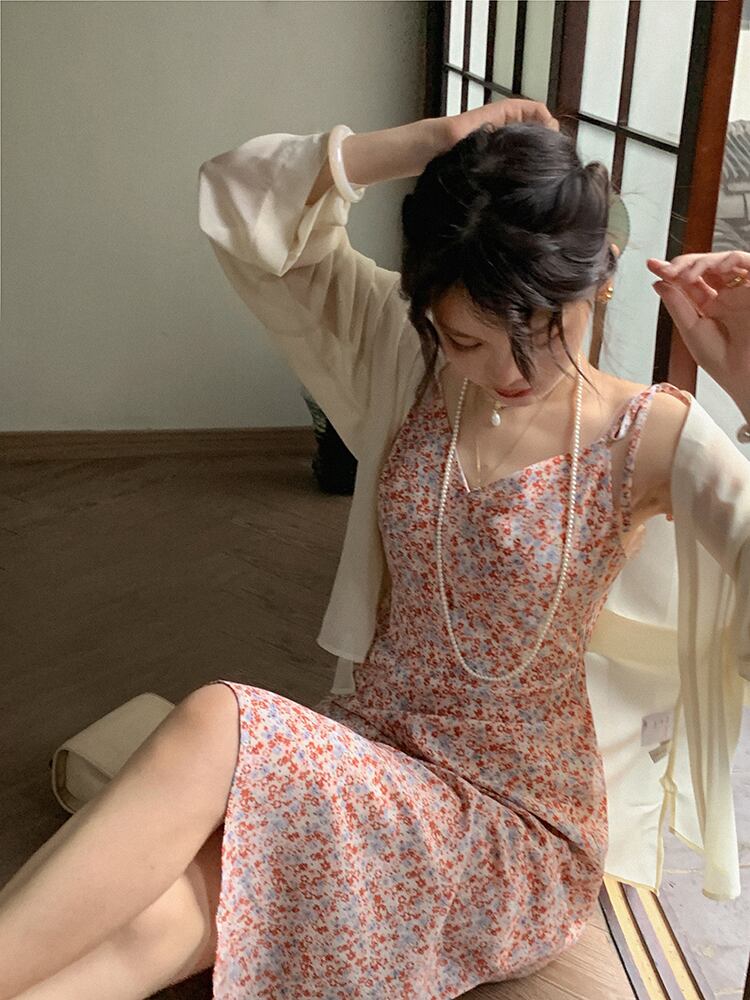 ミスシマリス【少し酔った花】やさしい風花柄スリングスカートウエストと薄い花柄スカートの初恋スカート missi33743779850