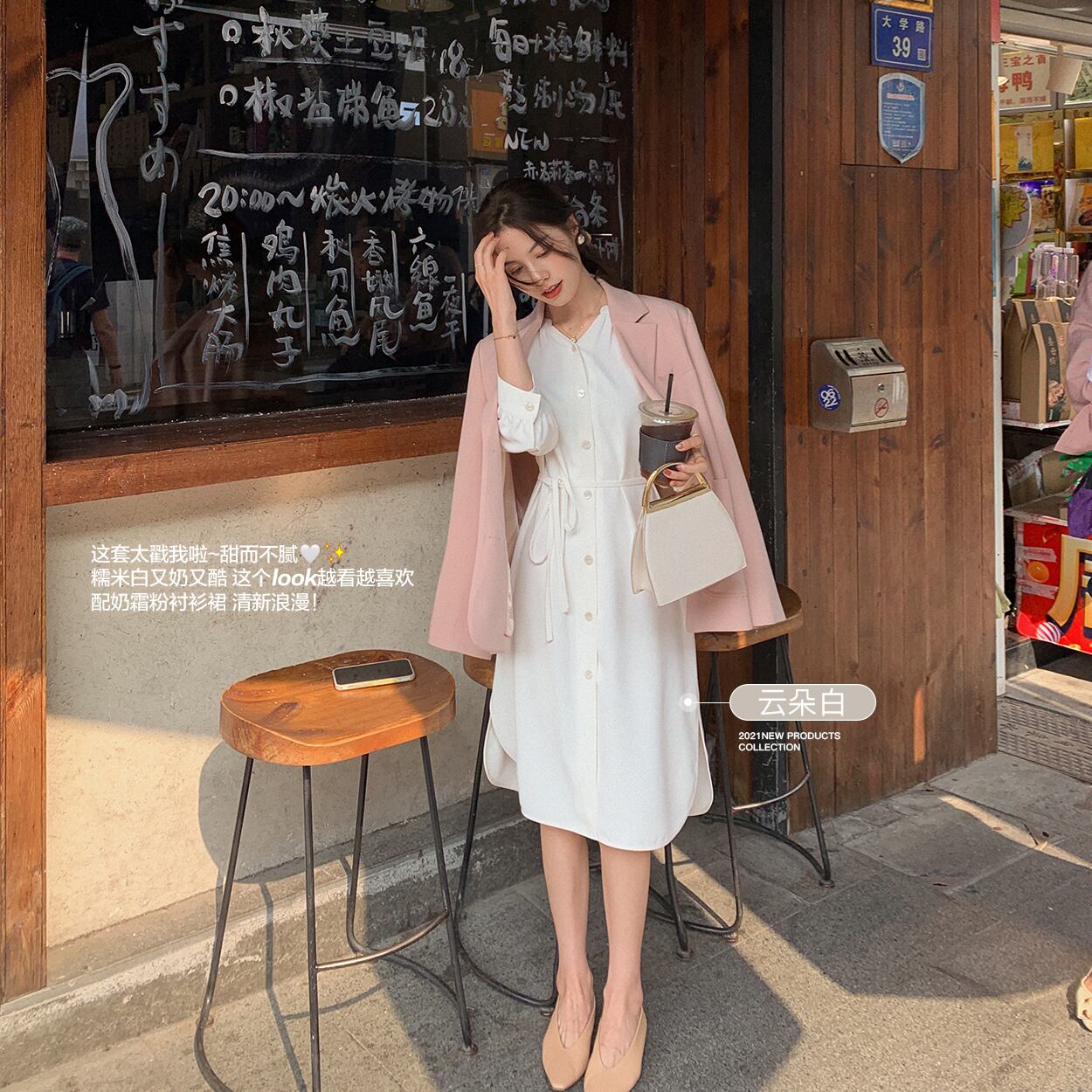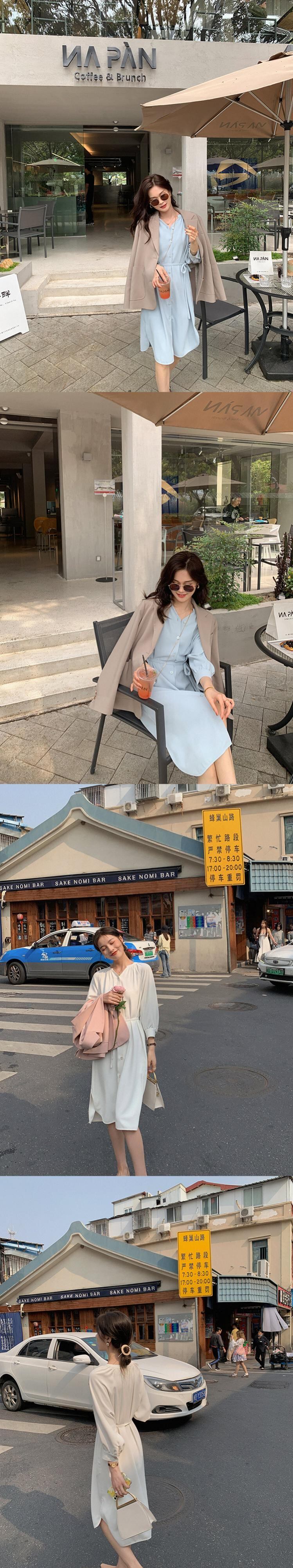 ミスシマリス【クラウドシャツスカート】Vネックネクタイワンピース2021年秋新作フェアリースカート気質 missi92957901971