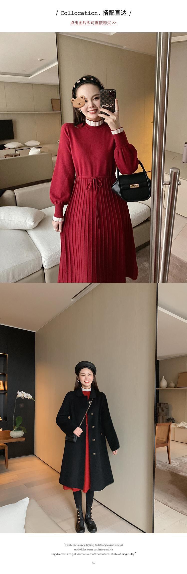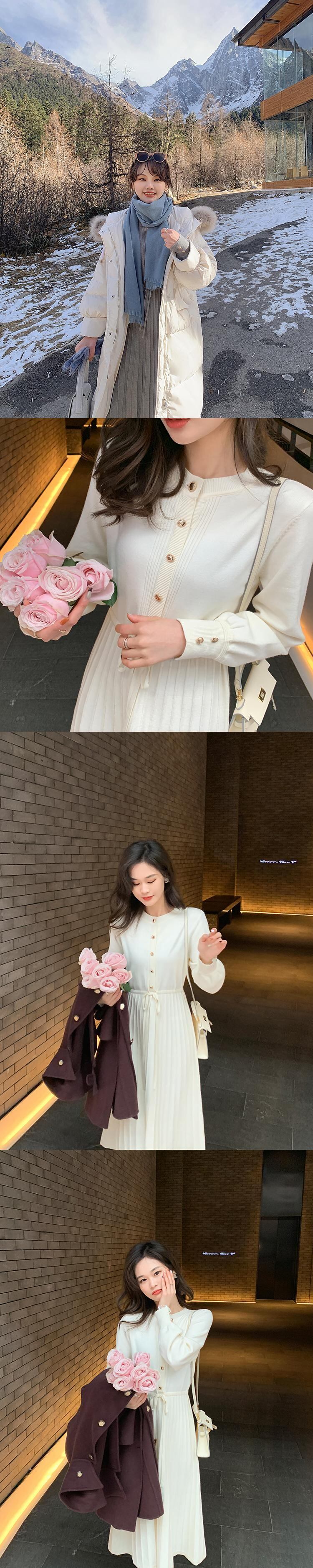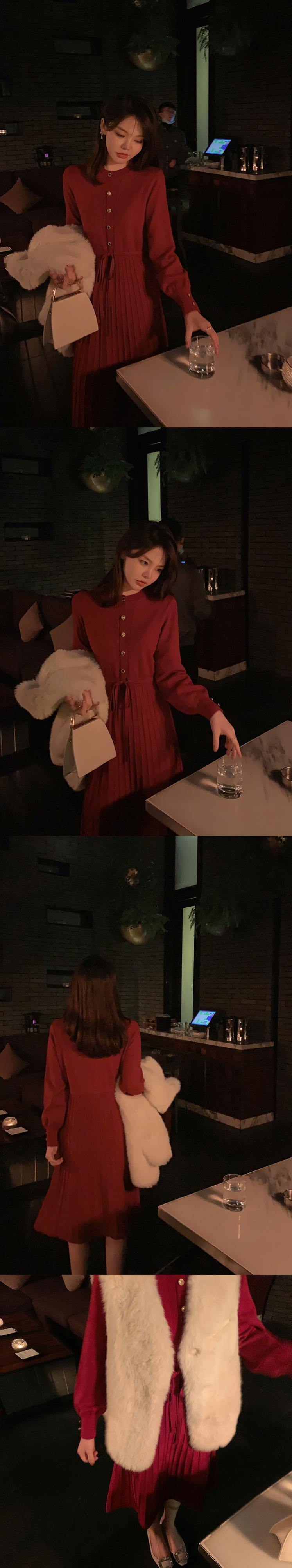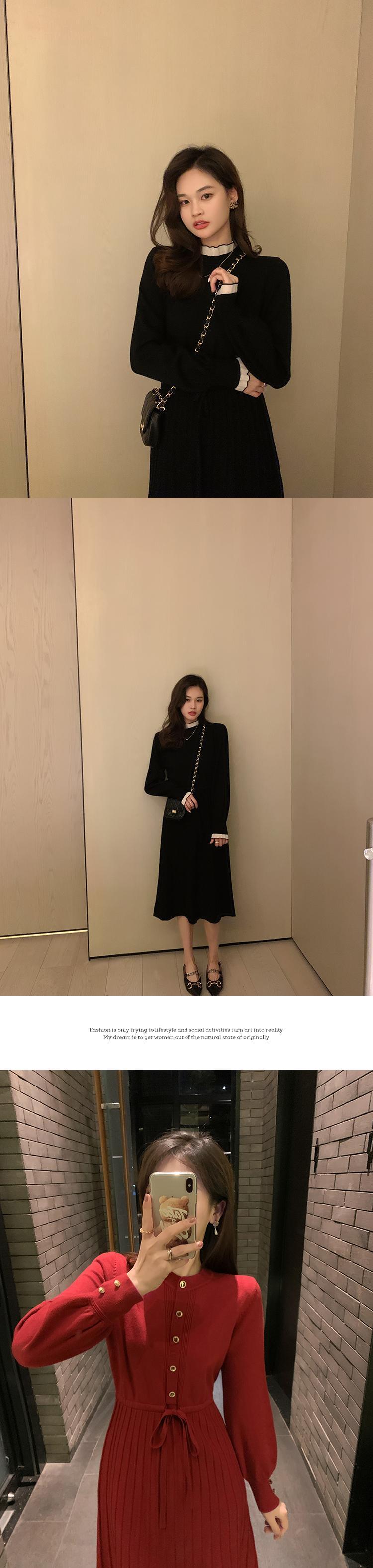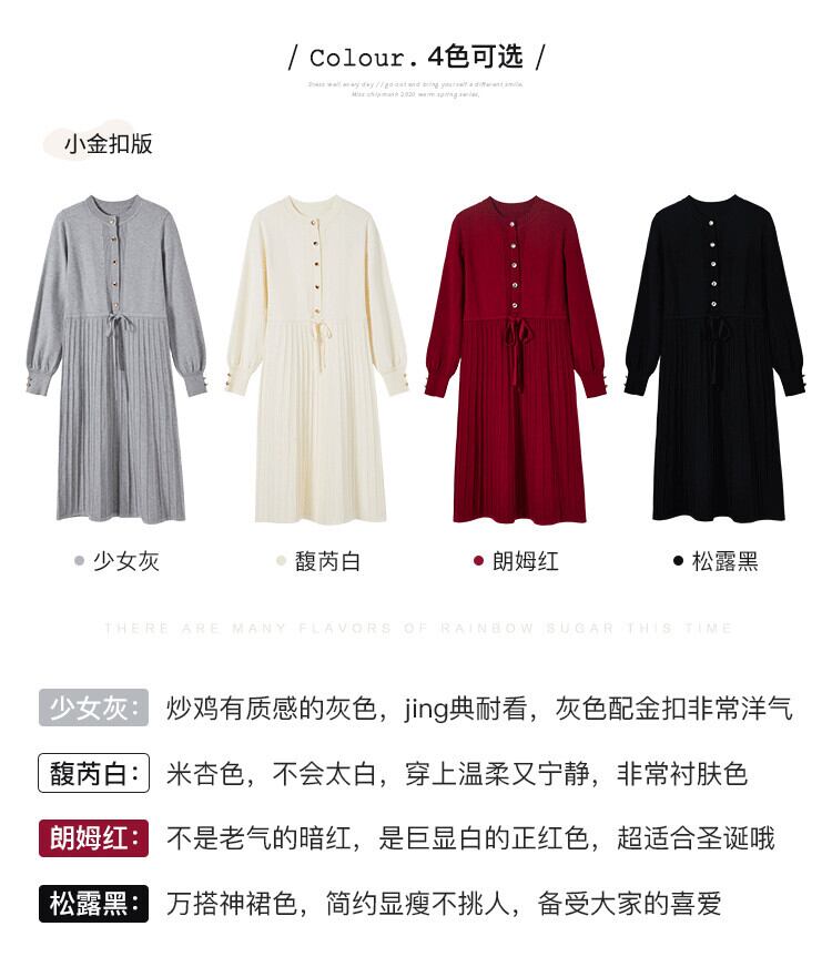 ミスシマリスレッドニットドレス気質スリムスカート2021ロングオータムドレス missi70475841426