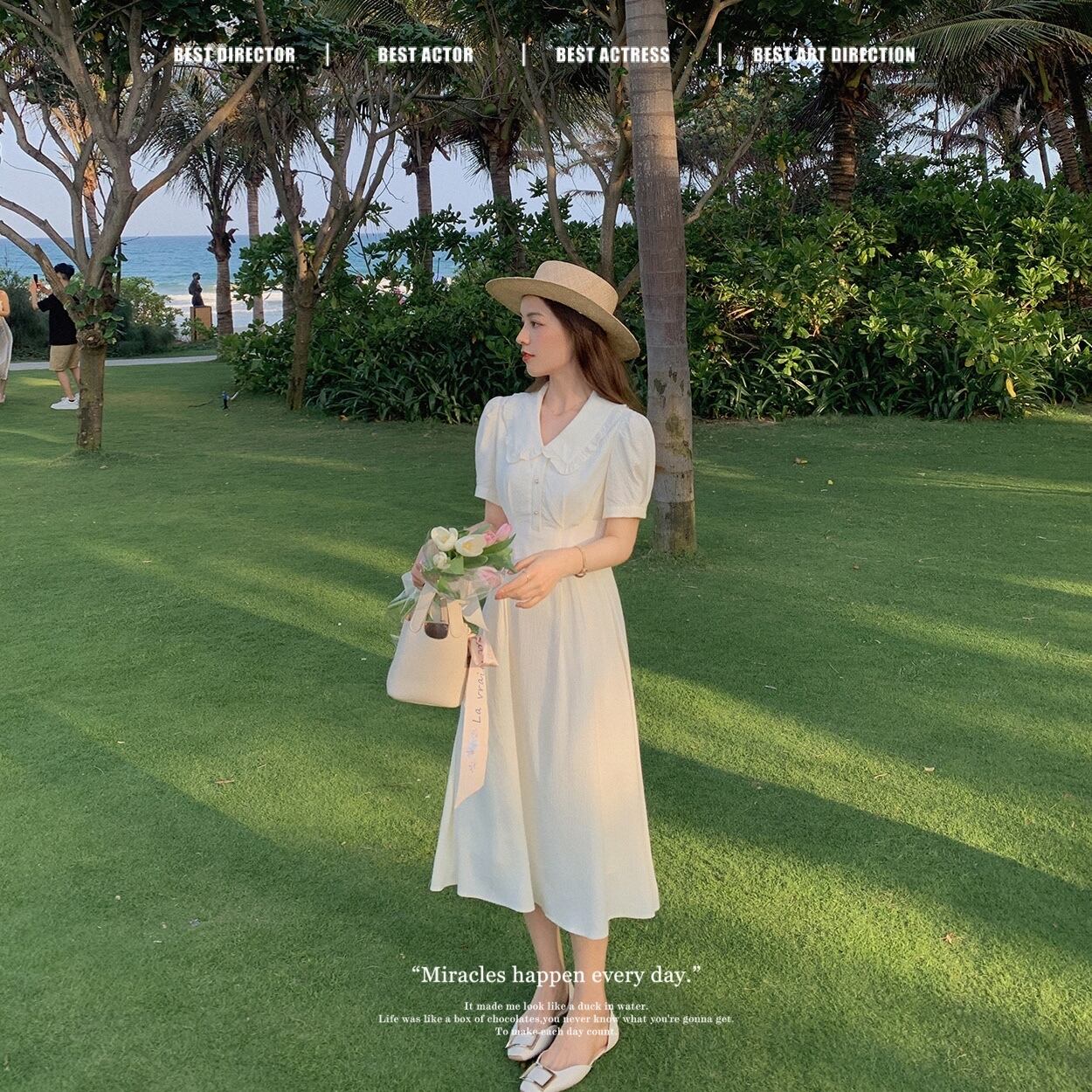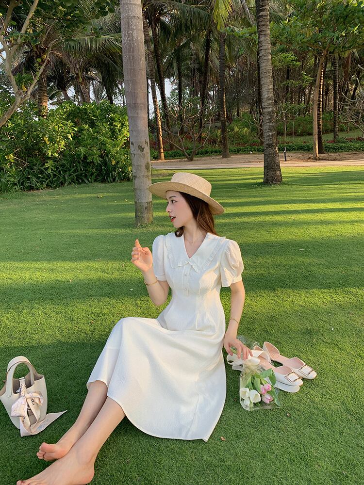 ミスチップマンク【初恋スカート】ドールカラーワンピースやさしい風女性夏ハイウエストスリム半袖ロングスカート missi45916290181