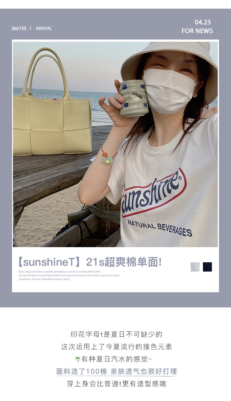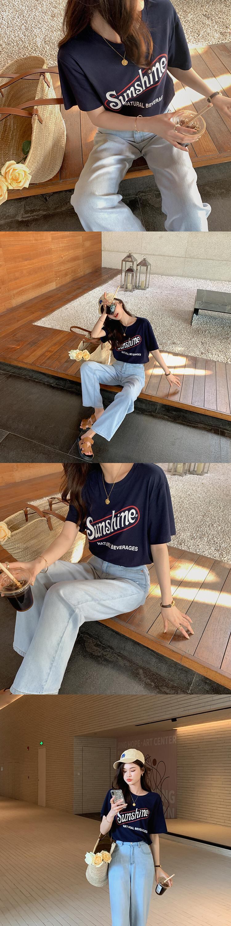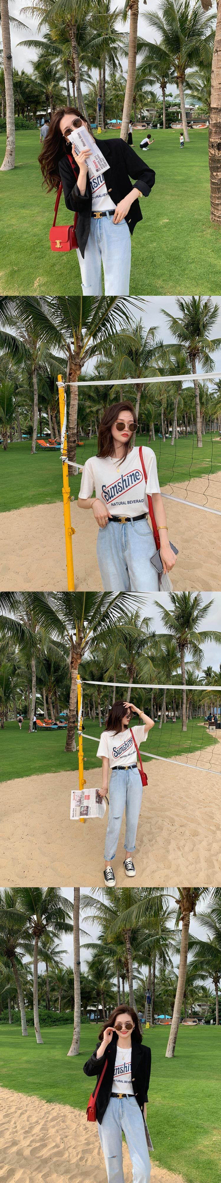 ミスシマリス【サンシャインT】半袖Tシャツレディースサマーホワイトラウンドネックレターコットントップス missi18865074772