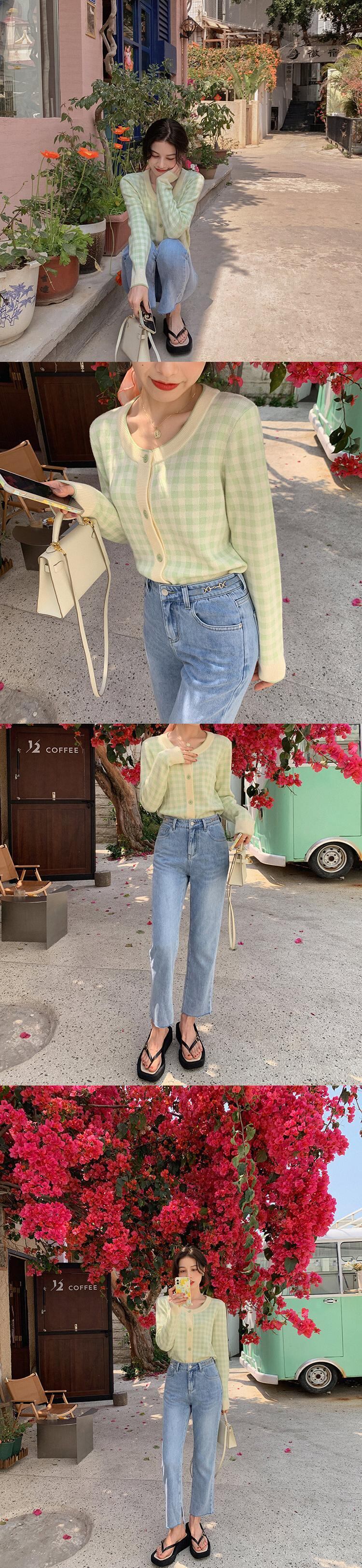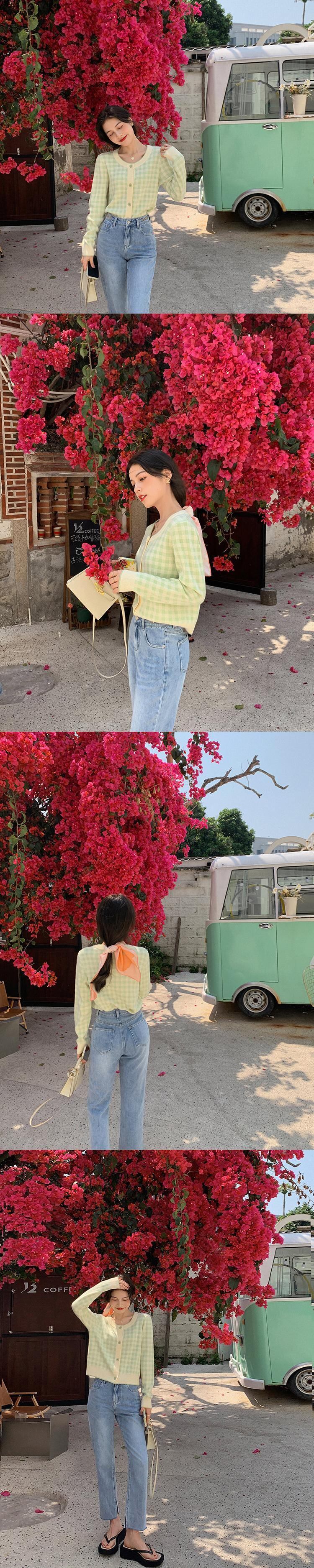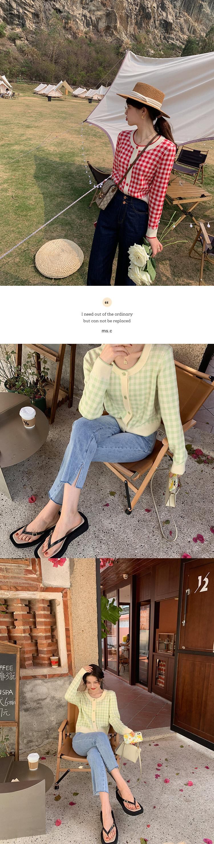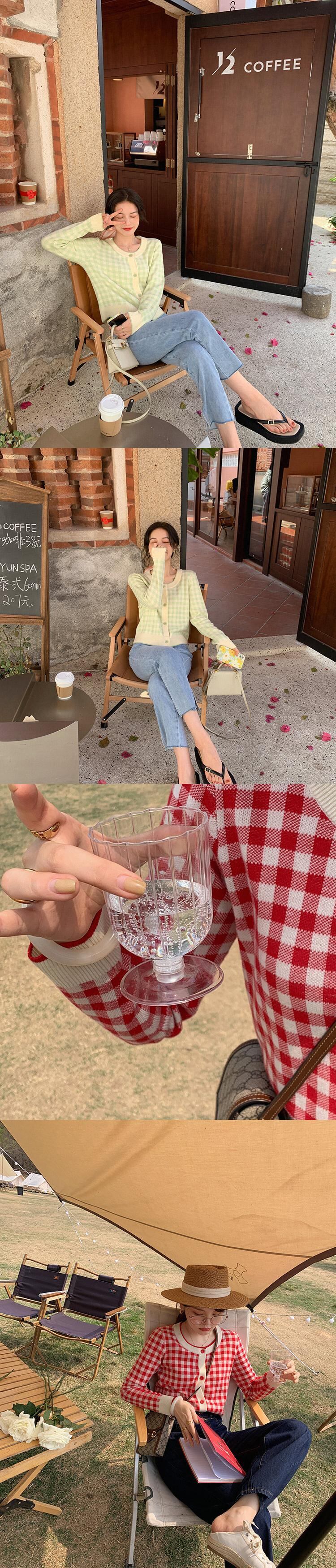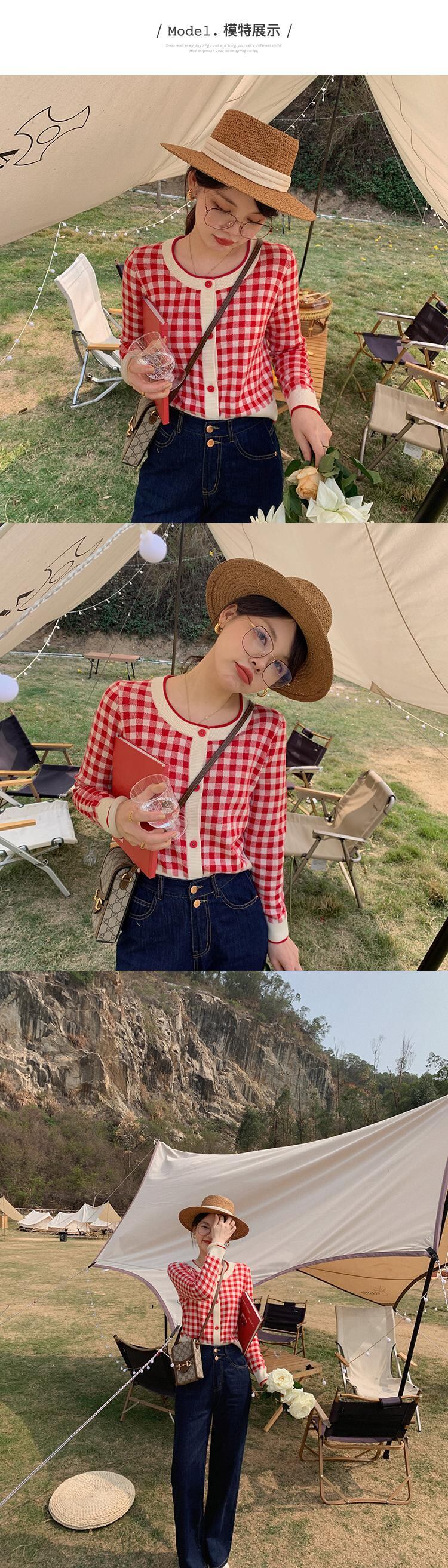 ミスシマリス【フレグランスチェックワンピース】レッドチェックウールニットカーディガンジャケットレディースラウンドネックニット missi18903262702