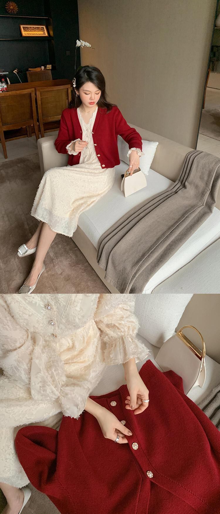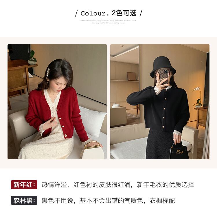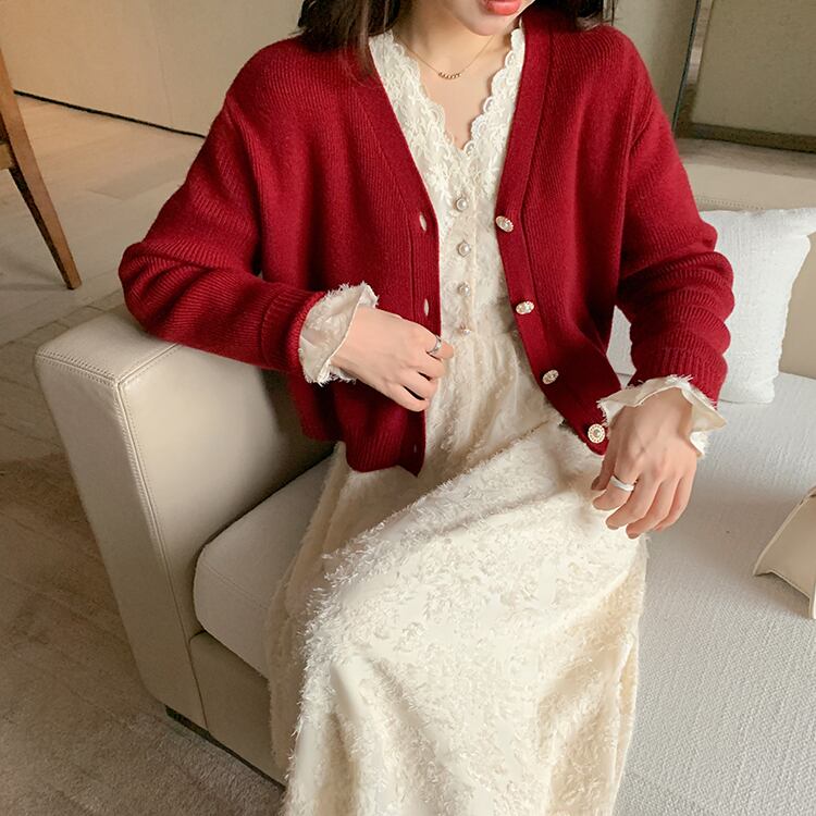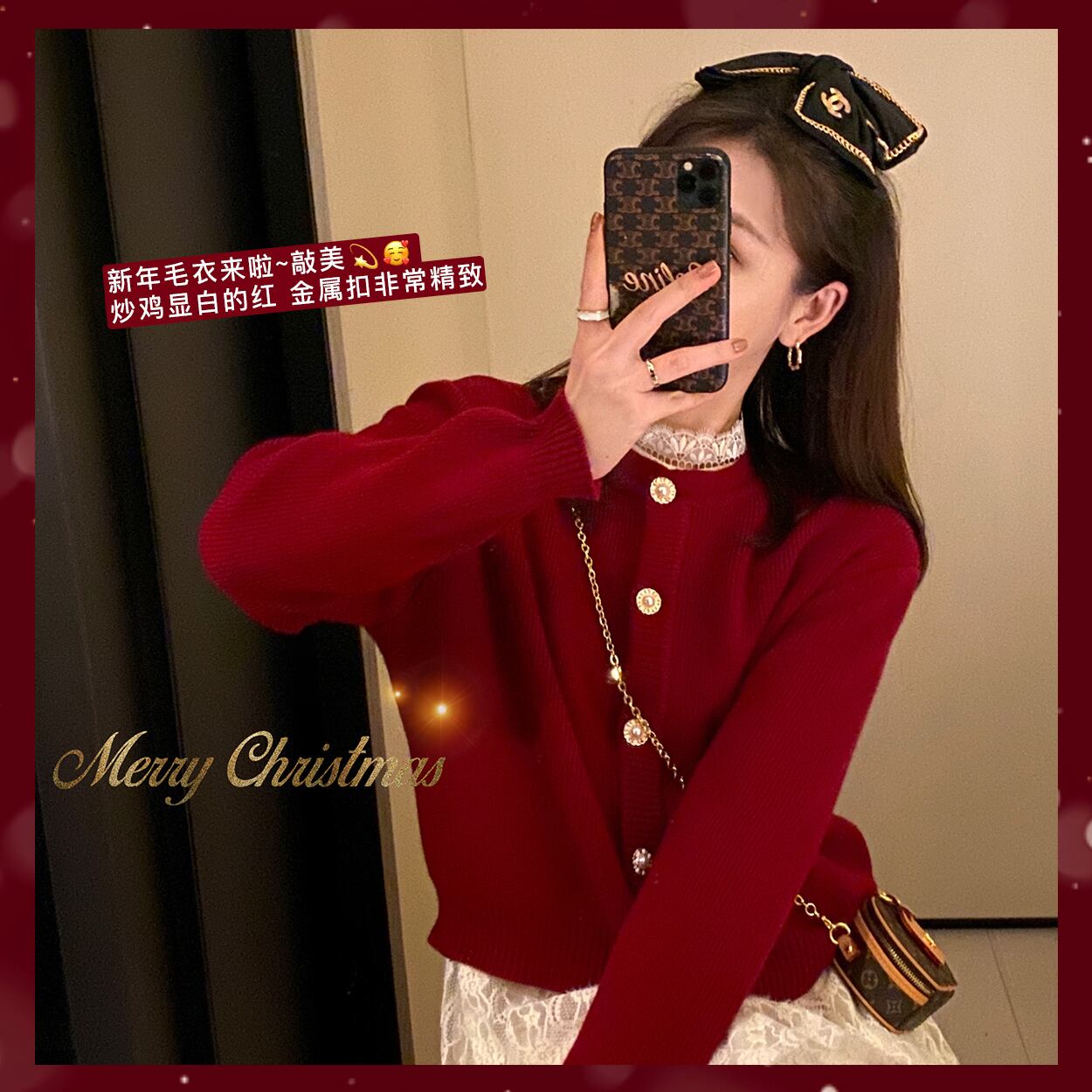 ミスシマリスレッドニットカーディガンセータージャケットウィメンズ2020インナーウエスタンスタイルオールマッチトップ missi21775923725