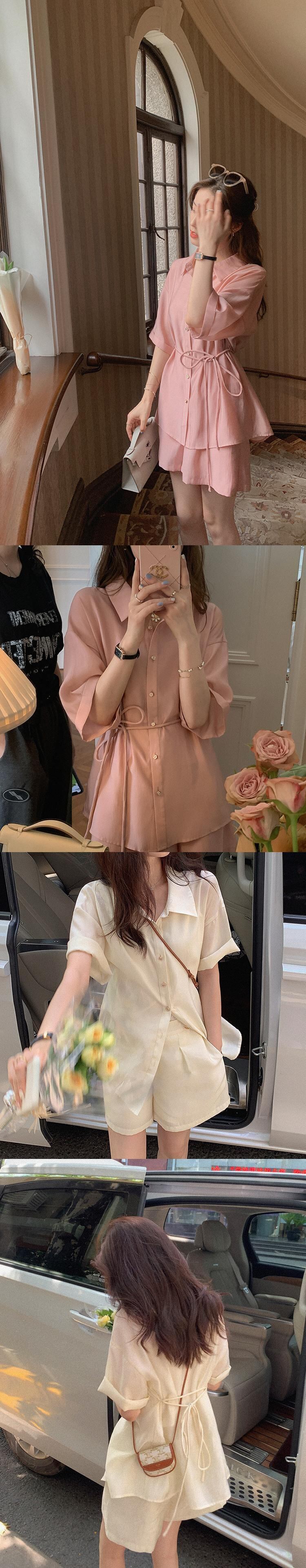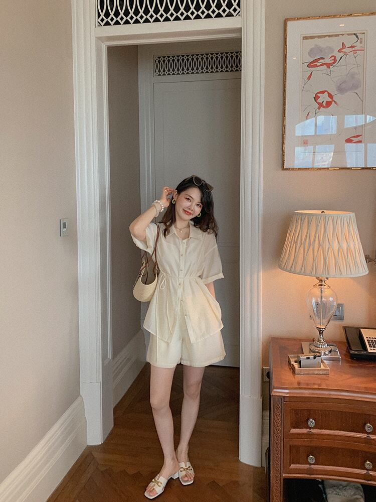 ミスシマリス【ラムアイスティーセット】夏に塩漬け・甘くできる薄手の女性用日焼け止めシャツとショートパンツのツーピースセット missi28587799878