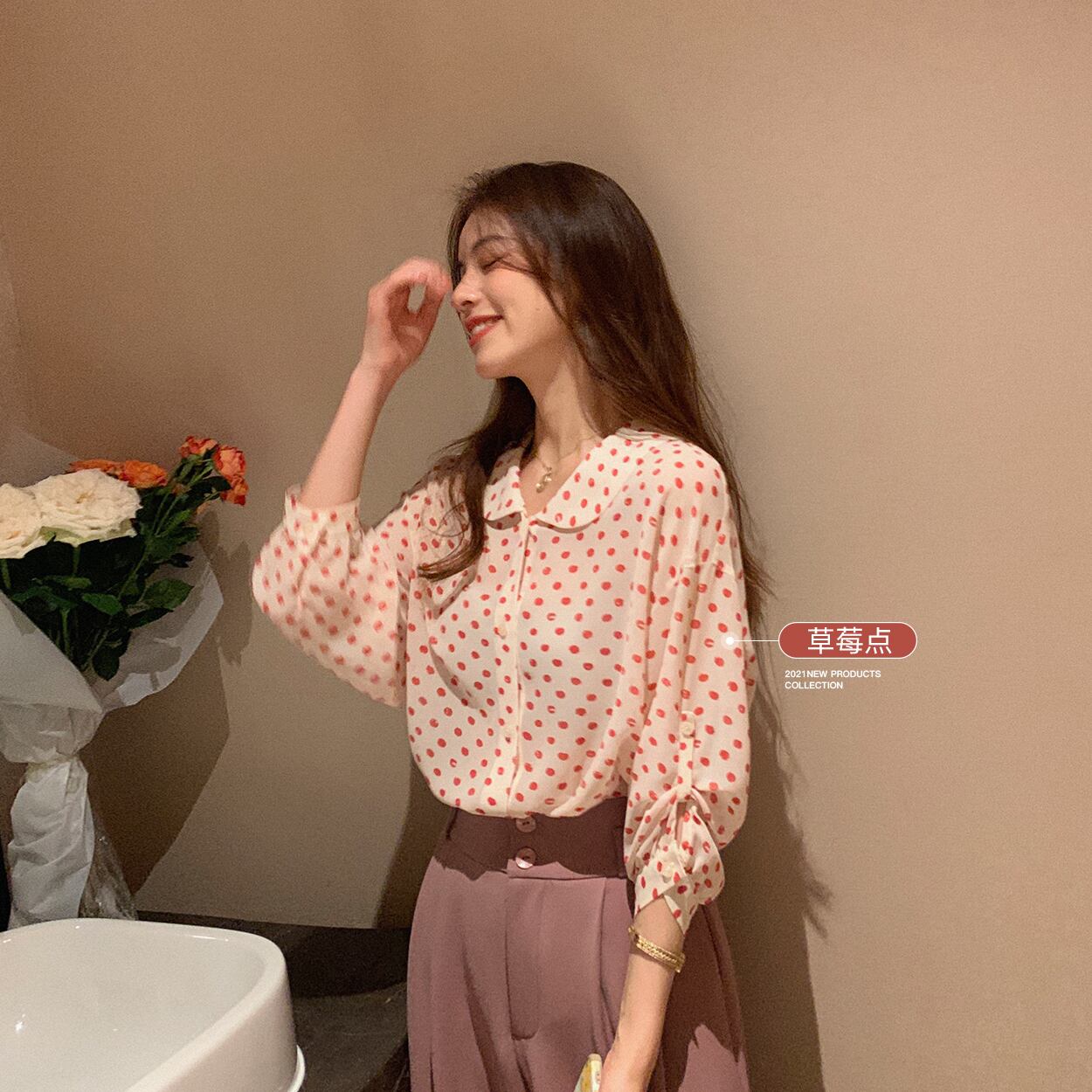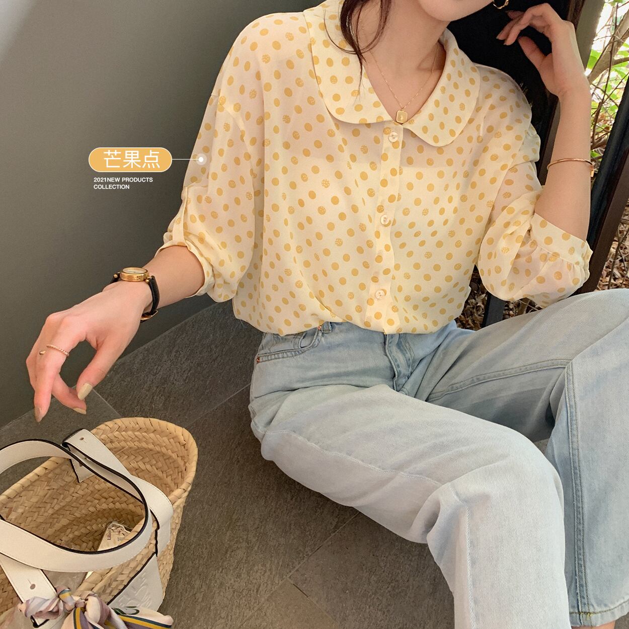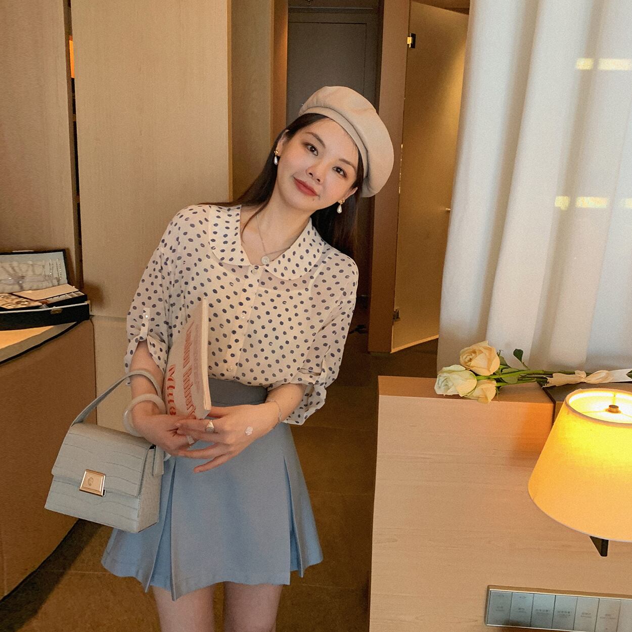 ミスシマリス[ドリームバックトゥシチリア]ドールカラーポルカドットシャツサマースモールルーズスリムスモールシャツ missi12649975763
