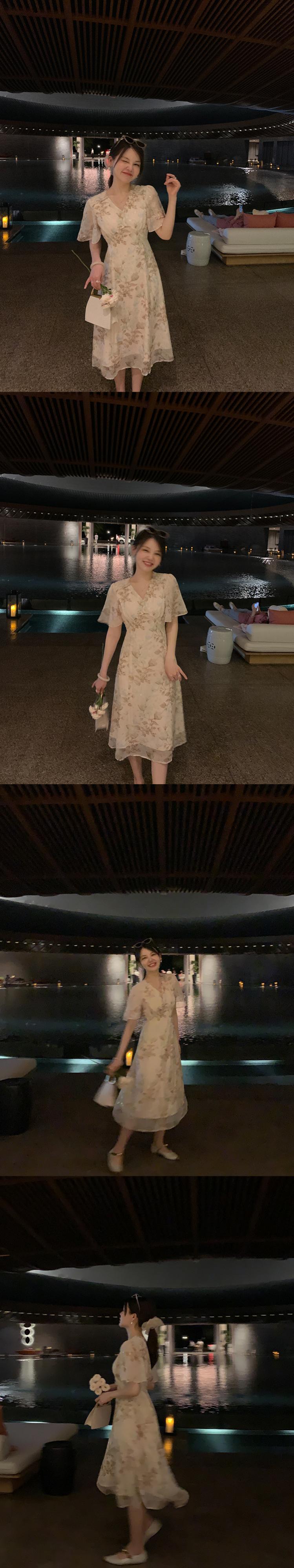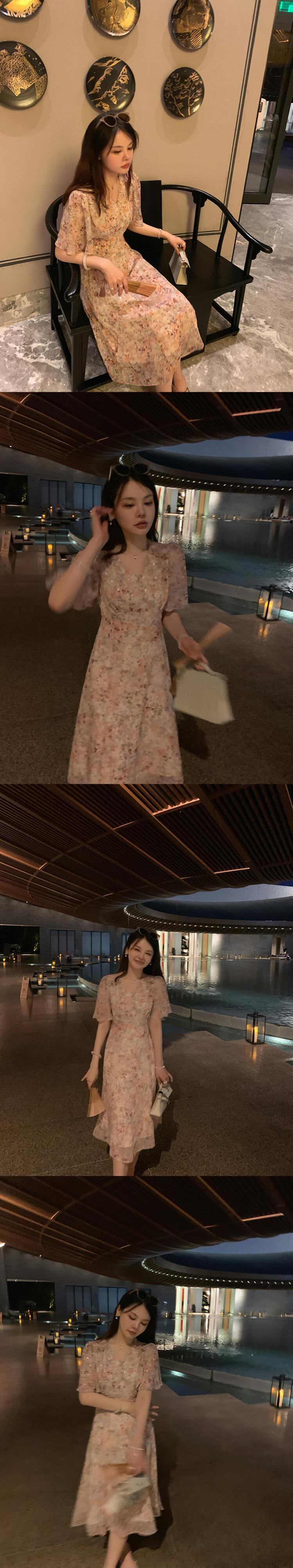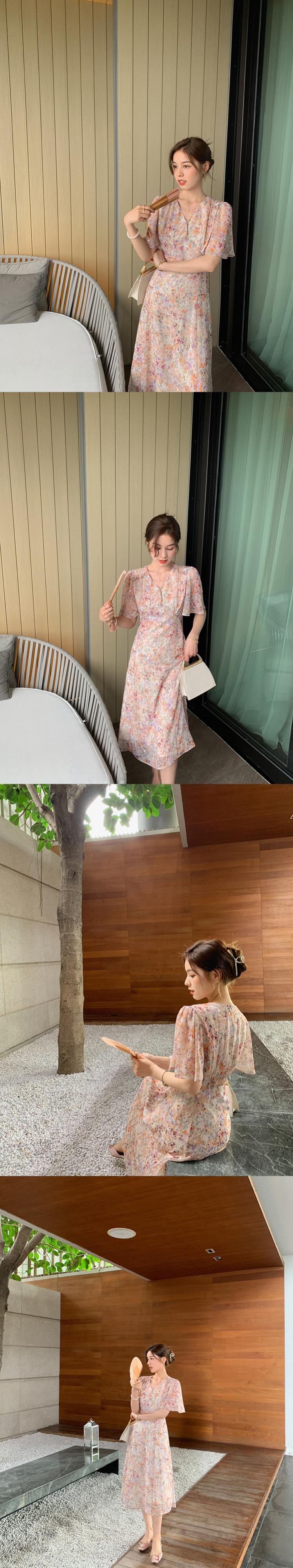 ミスシマリス[最高の時期は夢のようです] Vネックフローラルドレス女性XiaFeifeiスリーブスパンコール油絵ドレス missi9360430916