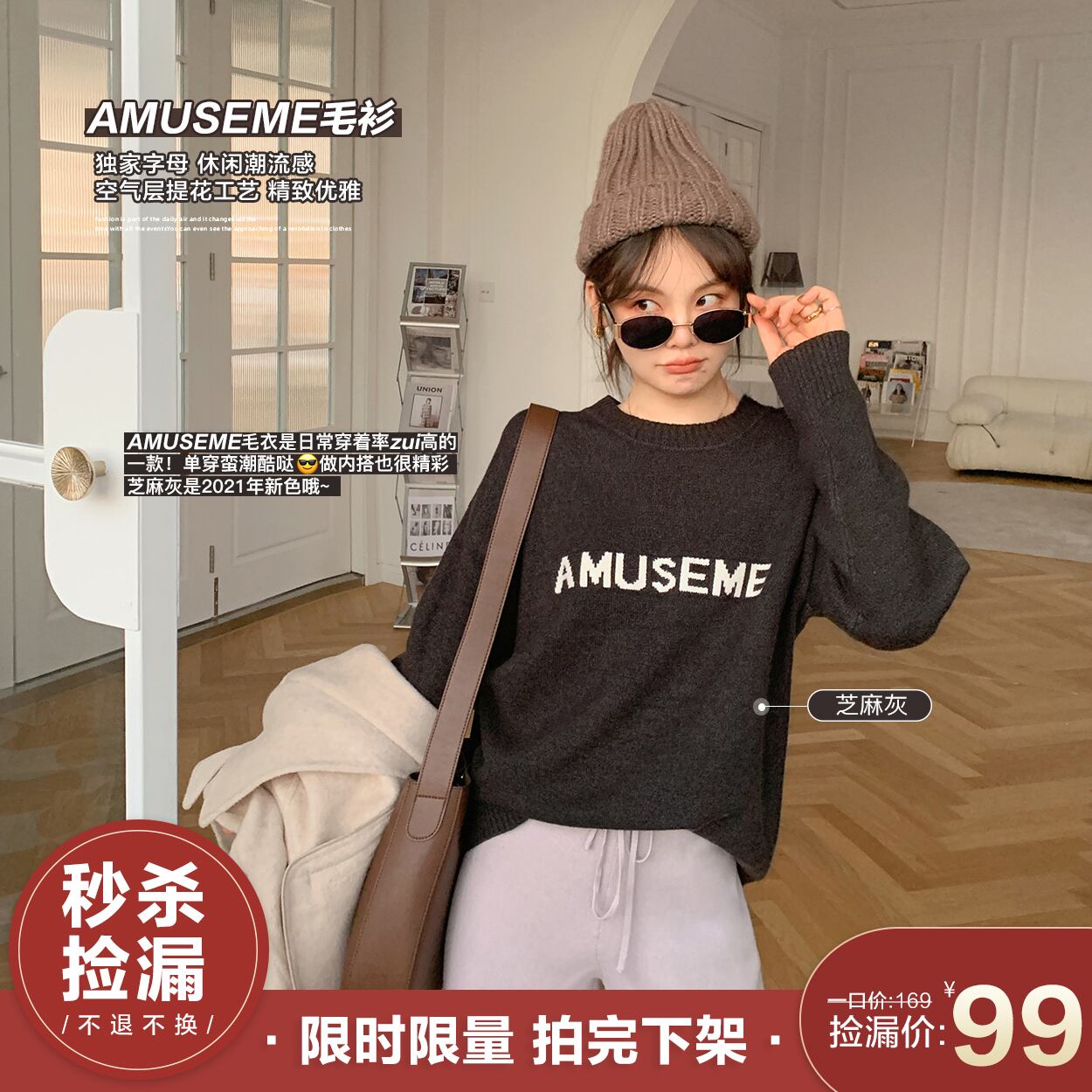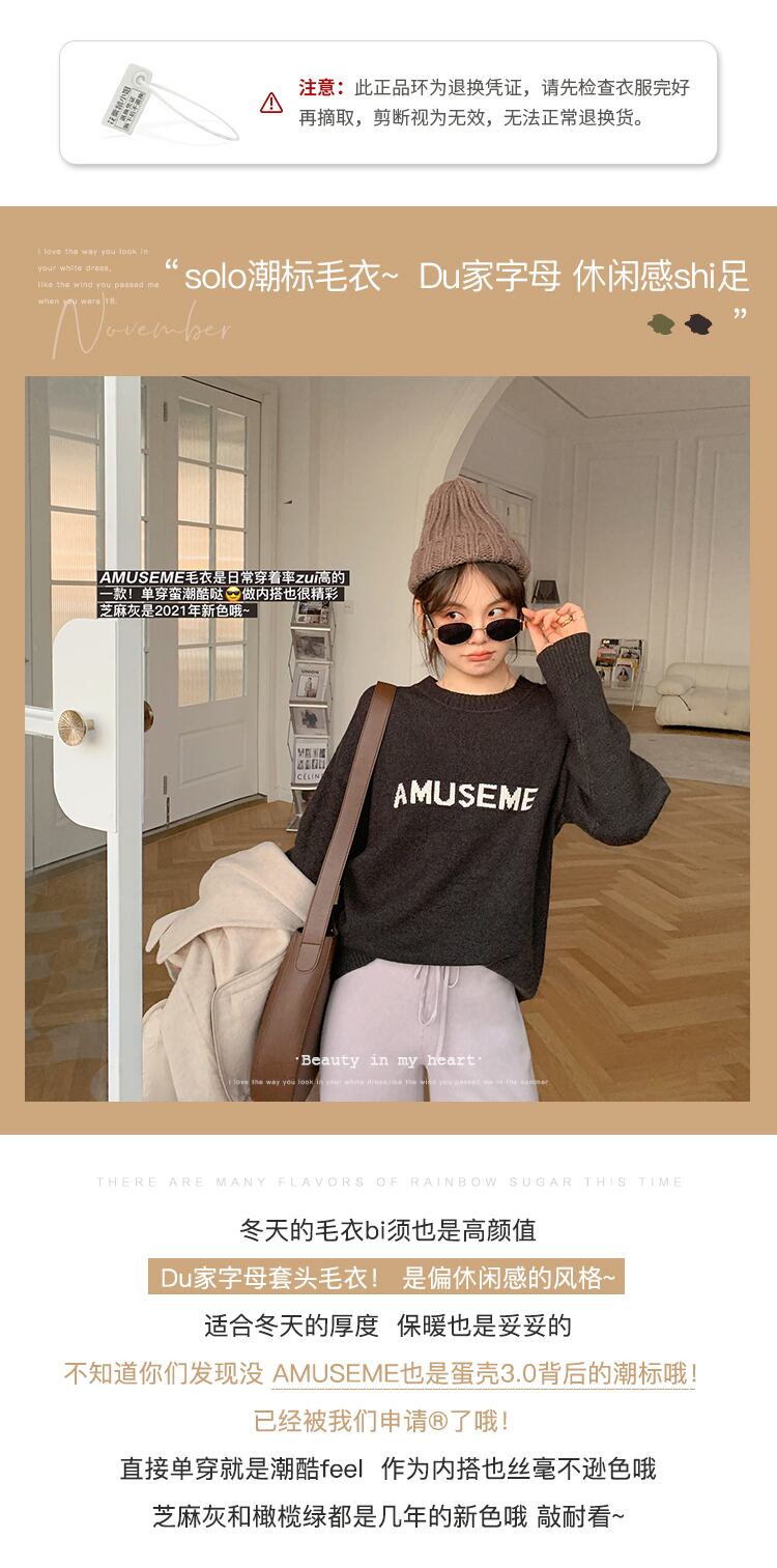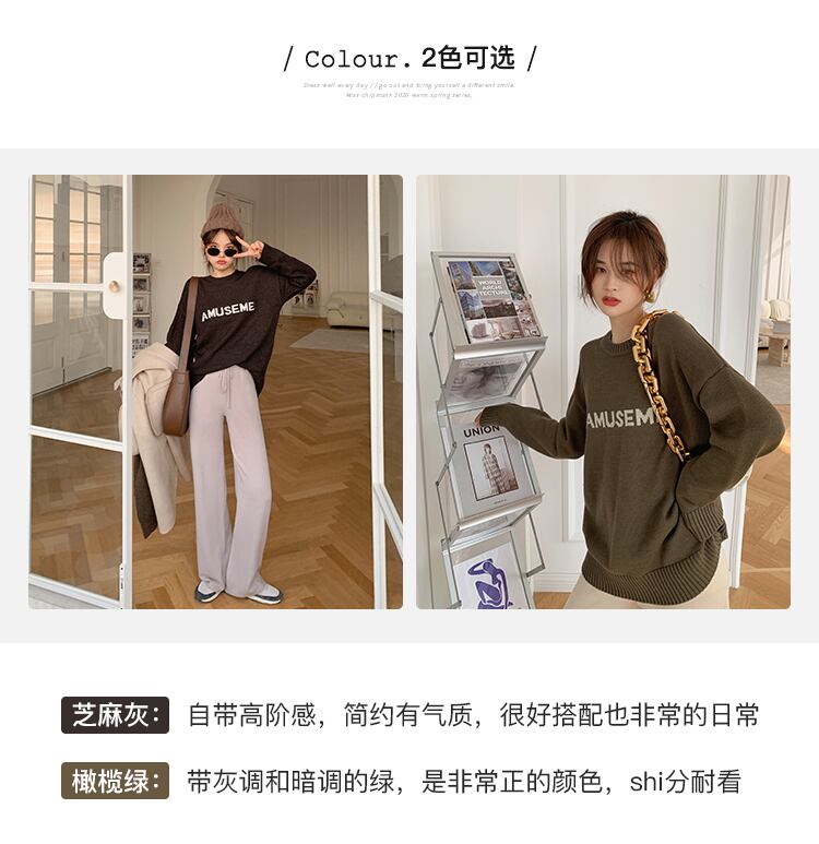 ミスシマリスショートラウンドネックセーターレディース2020新しいウエスタンスタイルカジュアル長袖ボトミングトップ missi1941863416