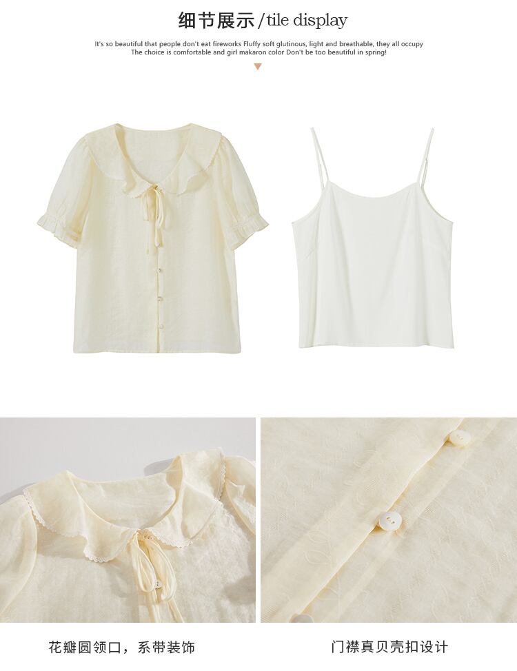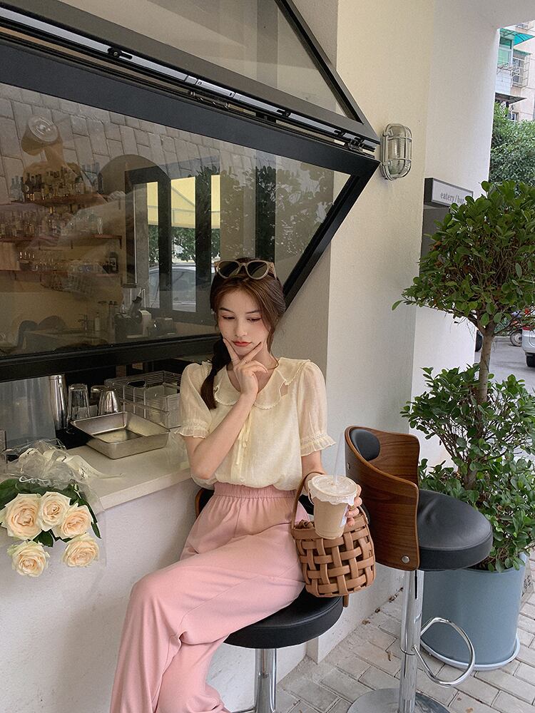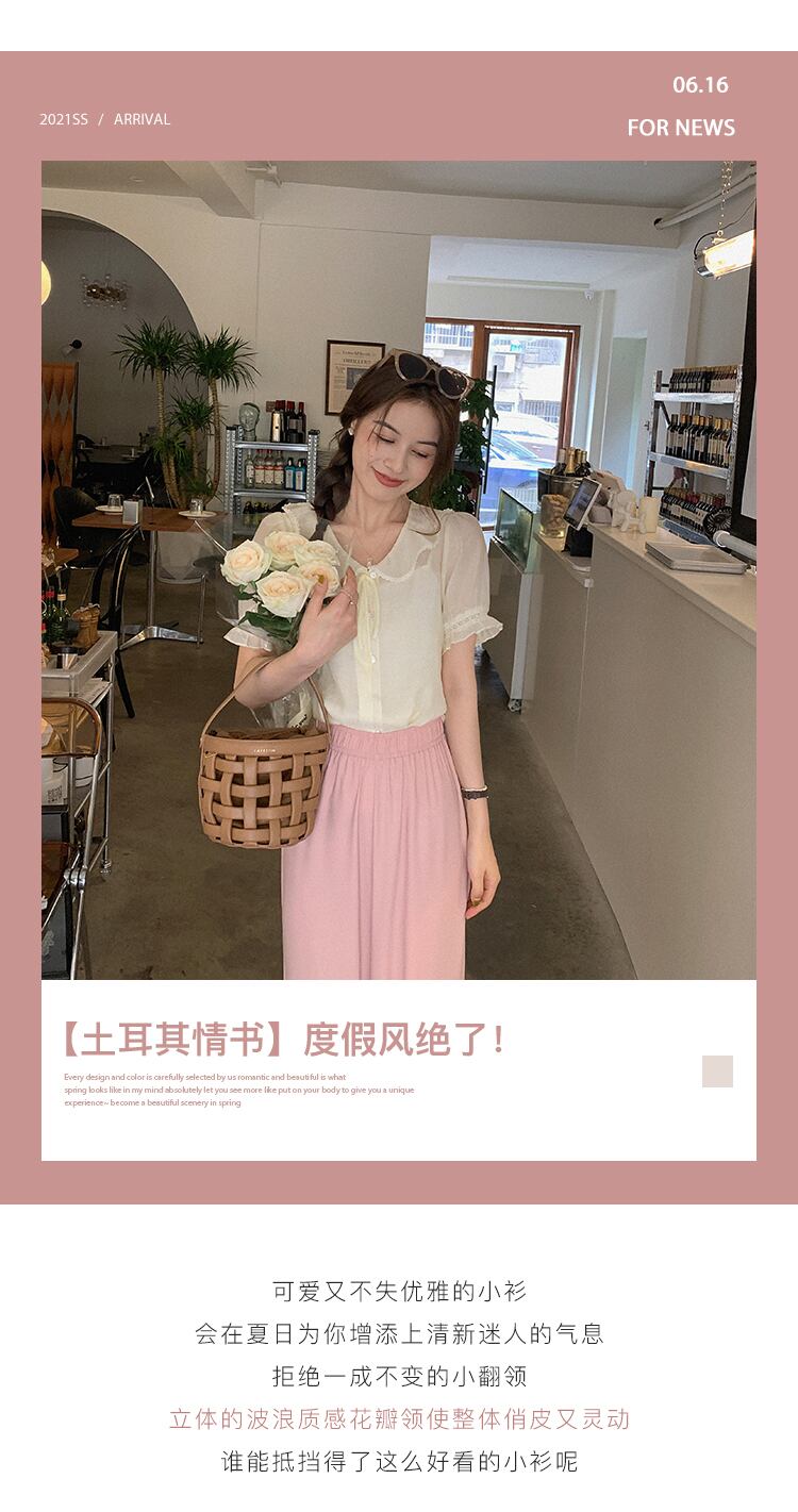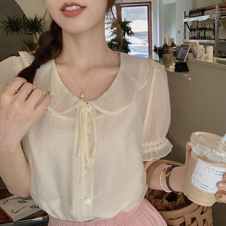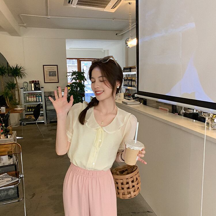 ミスチップマンク【スモールミルクケーキ】トップレディースサマー薄袖絶妙で美しいスモールシャツラペルシフォンシャツ missi78625266130