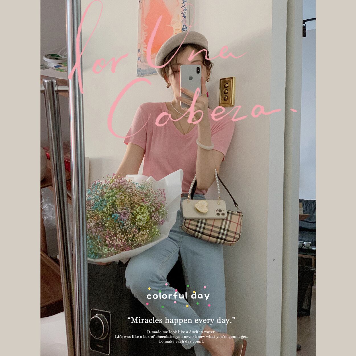 ミスチップマンク[テンセルウールt]半袖女性サマーTシャツラウンドネック/ Vネックオールマッチ無地ブラックトップ missi71442284503