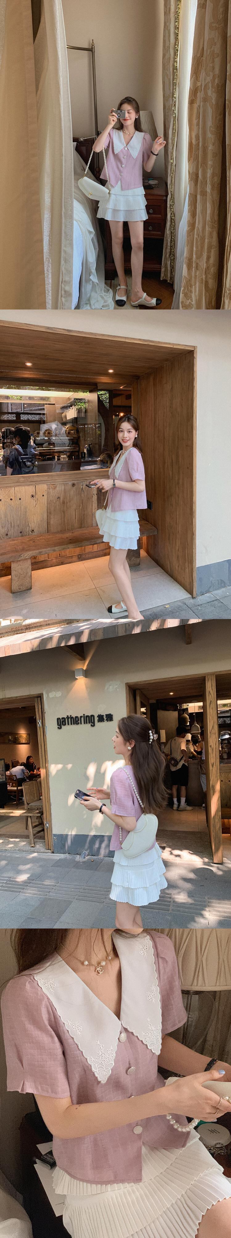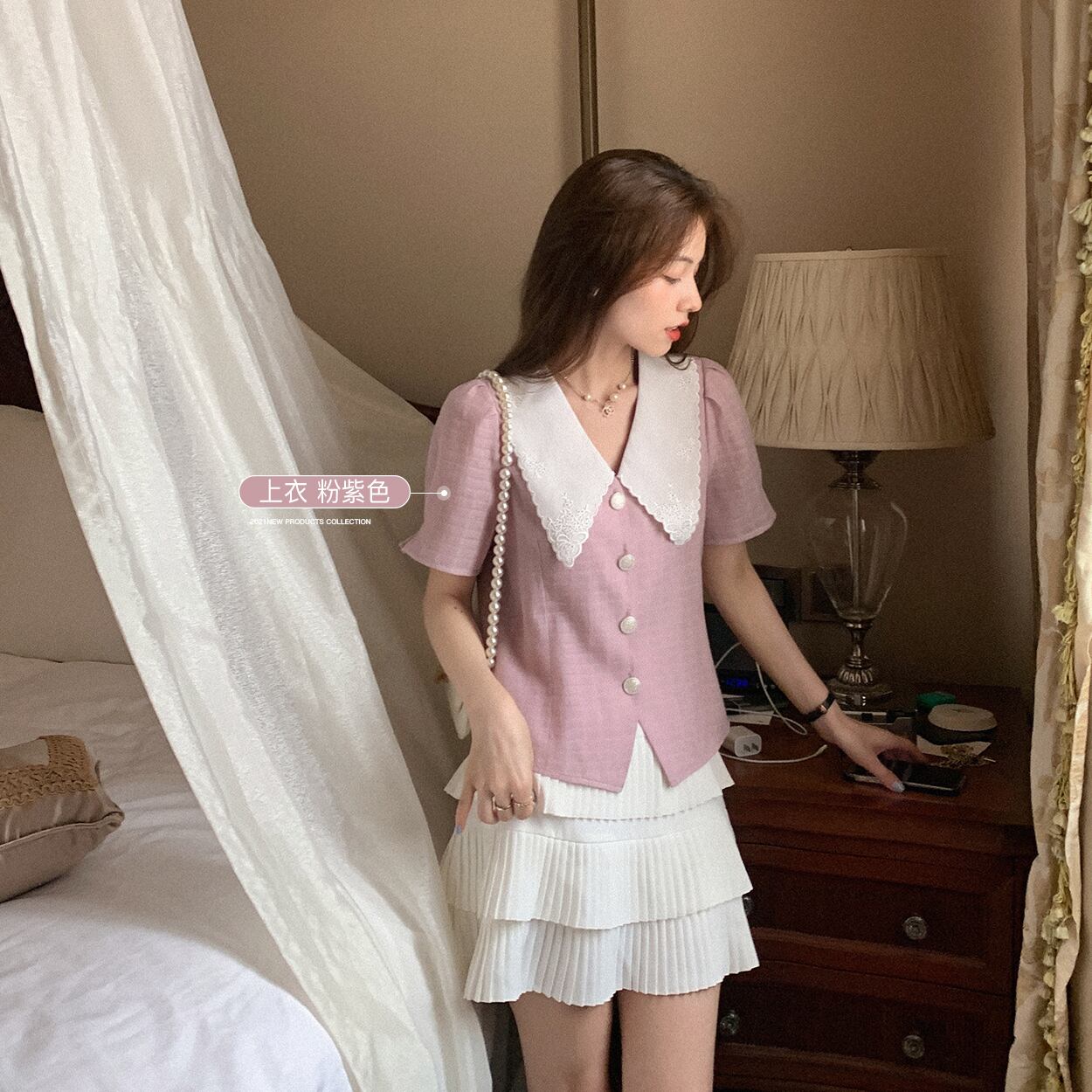 ミスシマリス【猫ガールフレンド】ポロカラーピンクウエストスリミングワンピースサマーVネックブラウススモールシャツ missi34176662324
