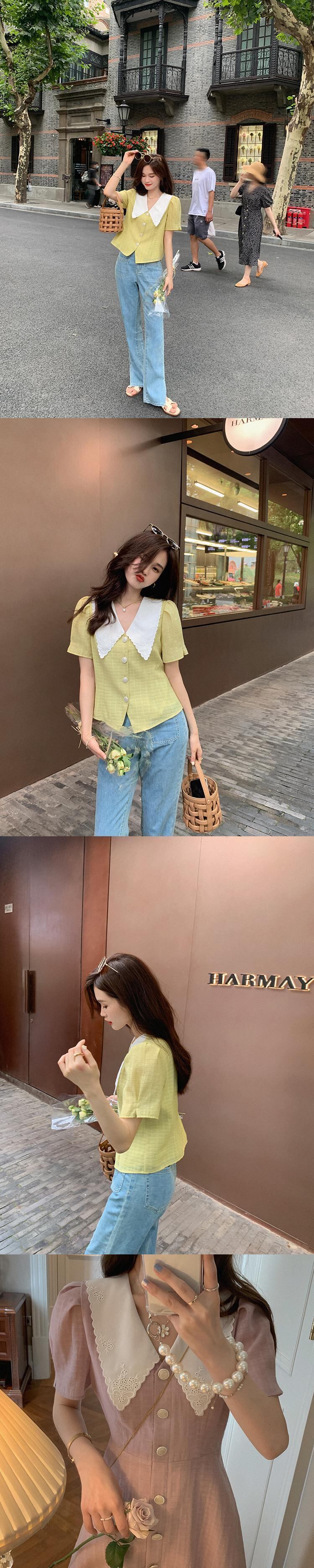 色:刺繡カラードレスピンクパープルスポット,刺繡襟ドレス黄緑色スポット,刺繡カラートップピンクパープルスポット,刺繡襟トップ黄緑色スポット