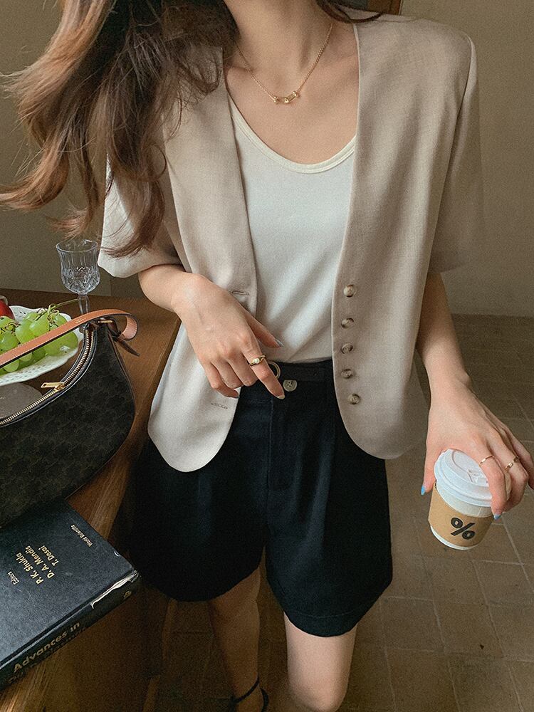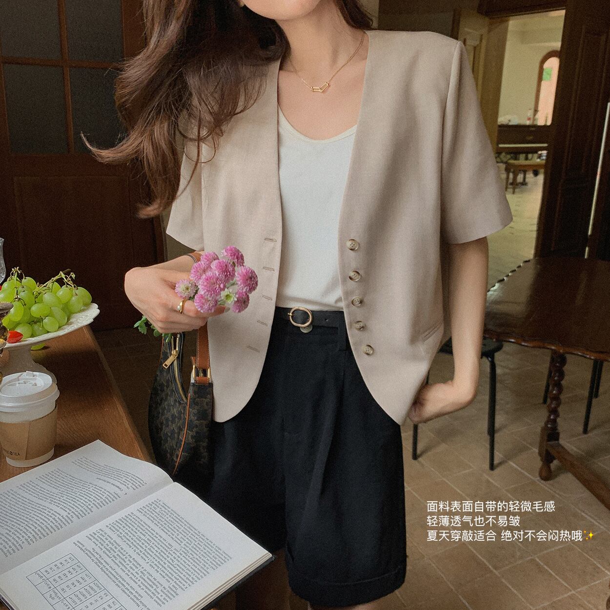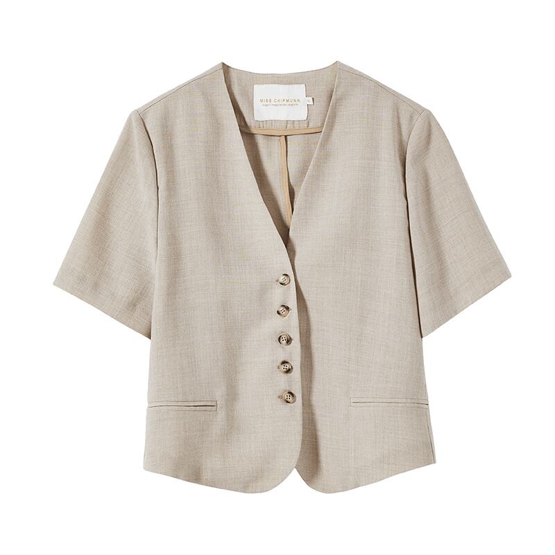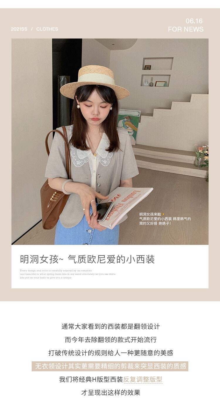 ミスシマリス【ミョンドンガール】半袖スーツジャケットサマー気質ネットレッドオートミールチェック柄トップス missi69946241397