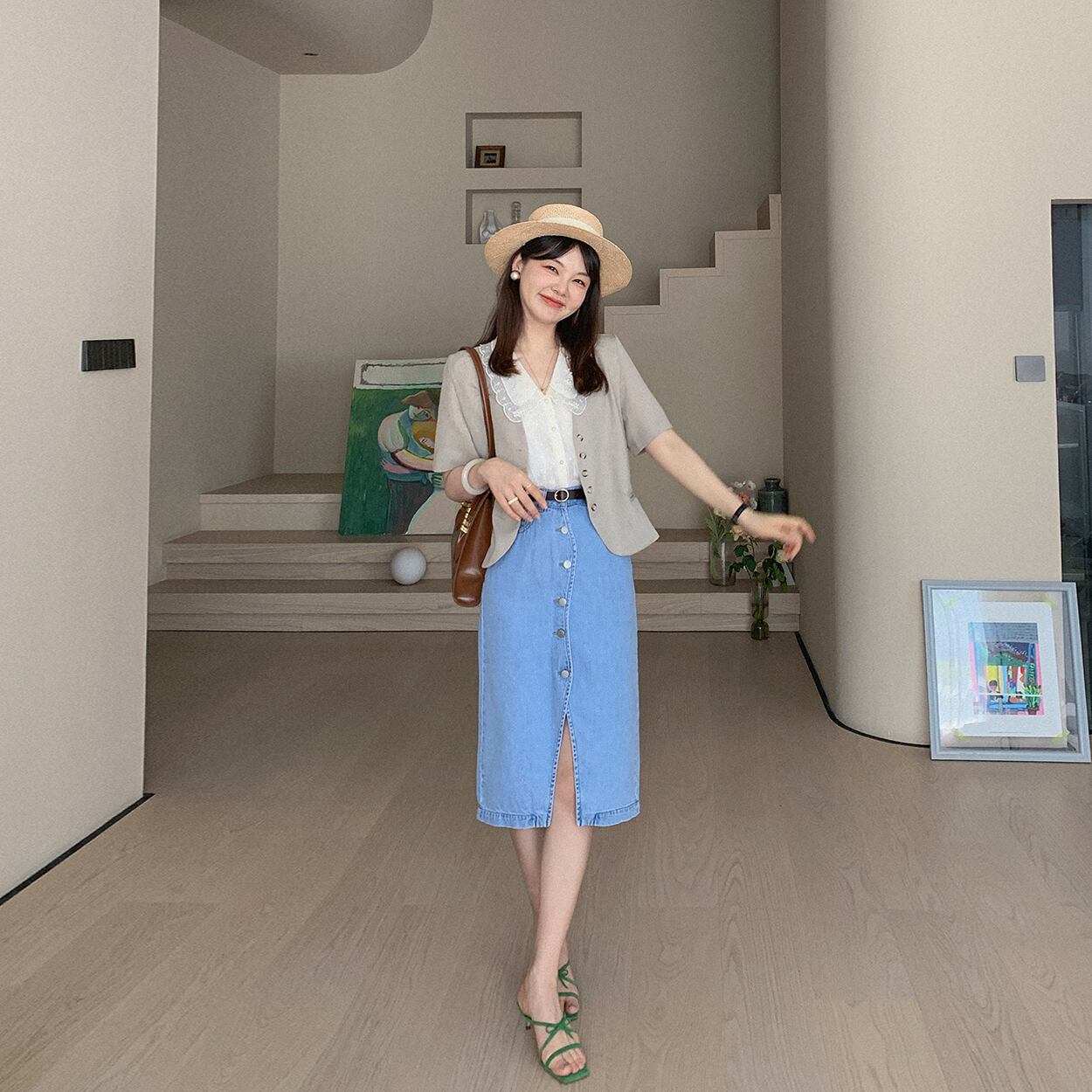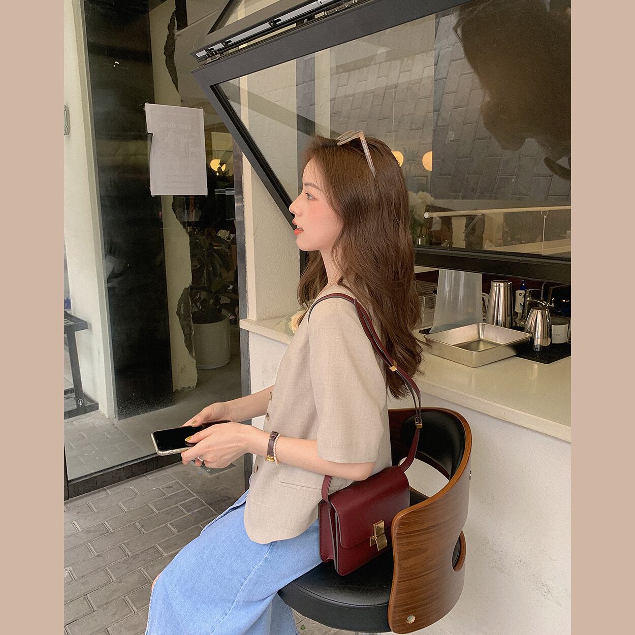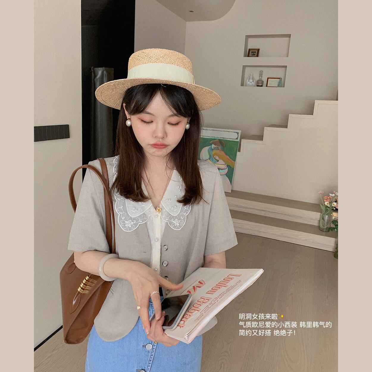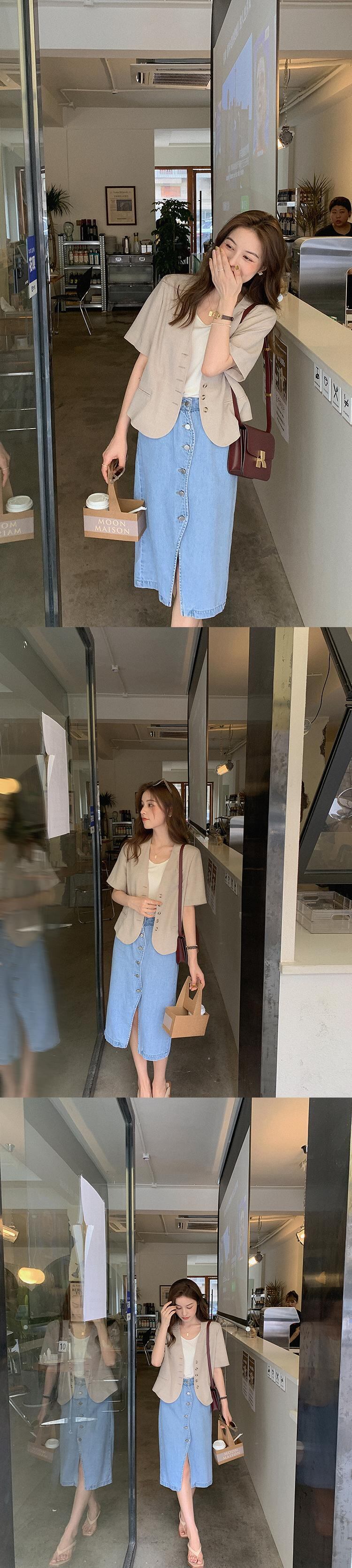 ミスシマリス【ミョンドンガール】半袖スーツジャケットサマー気質ネットレッドオートミールチェック柄トップス missi69946241397