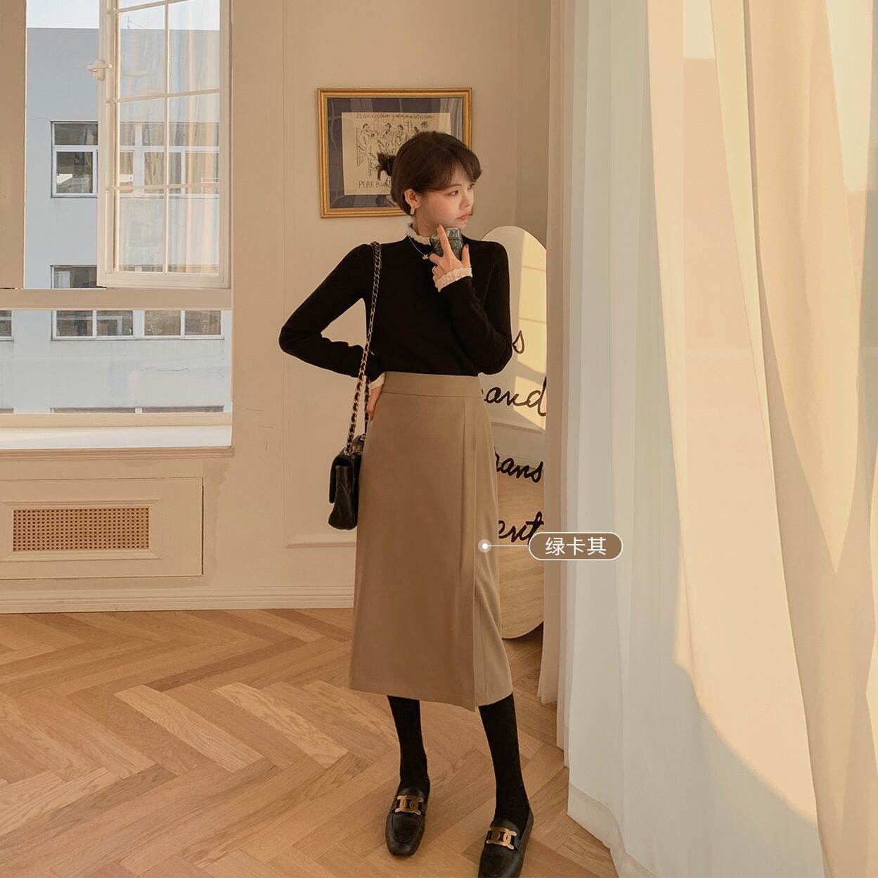 ミスシマリス【TemperamentLadyスカート】ピュアカラースカート、秋冬女性ハーフ丈スカート、細いaラインハイウエストウィンタースカート missi15101070022