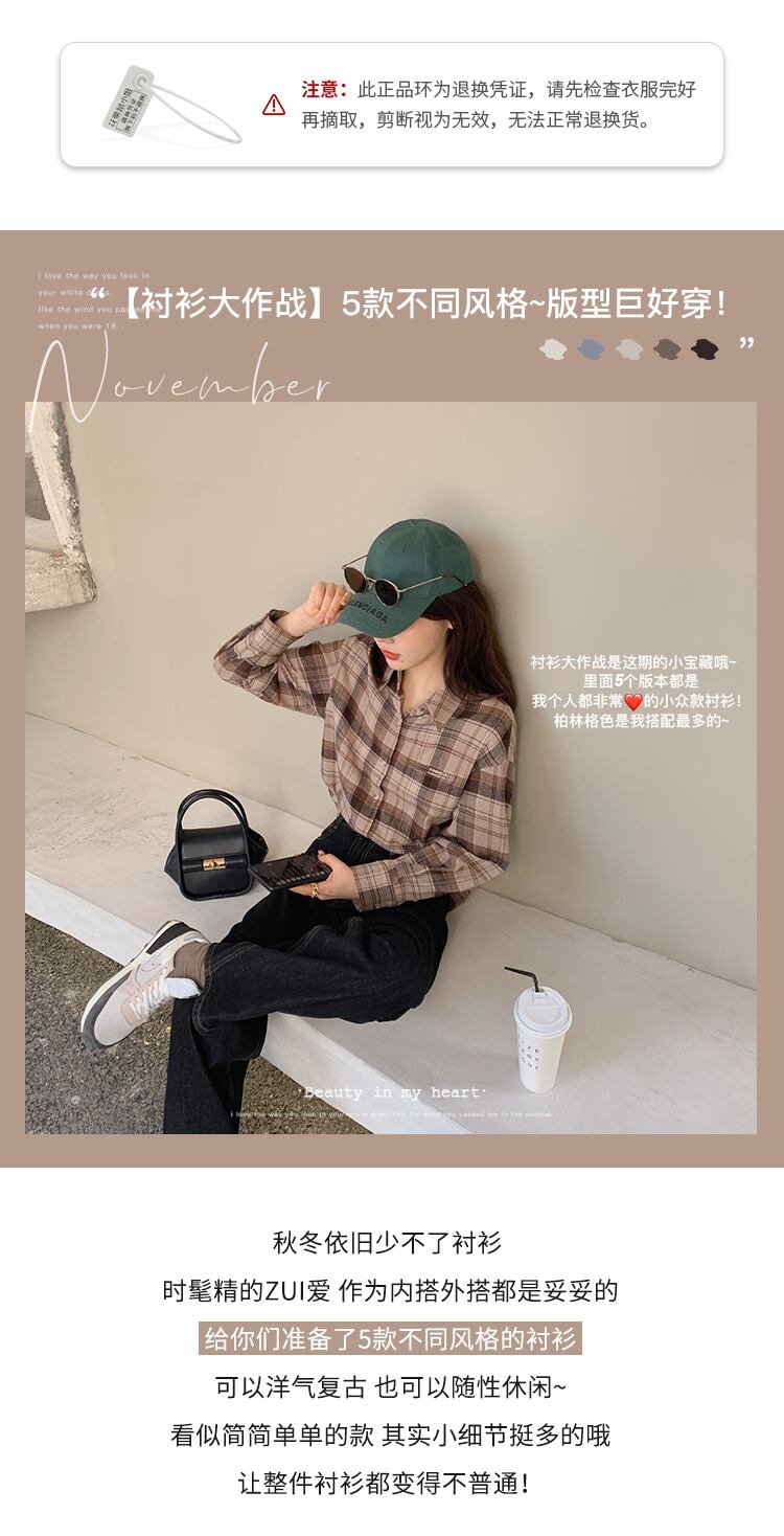 ミスシマリスチェック柄シャツ女性デザインセンスニッチシャツ2021年春新作長袖シャツ気質 missi68323780061