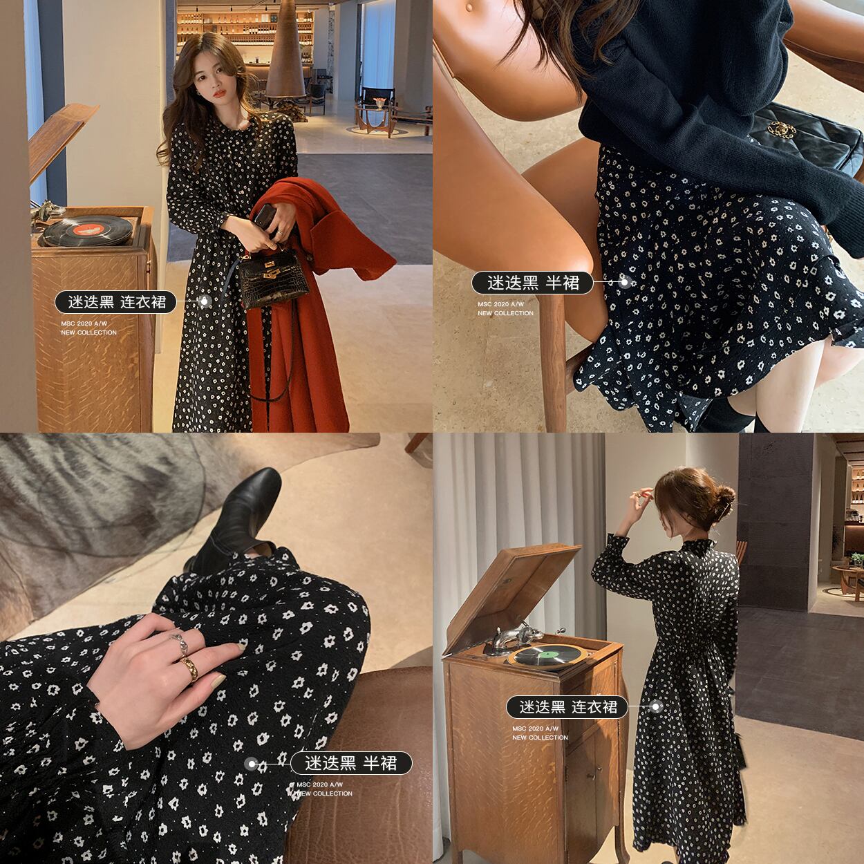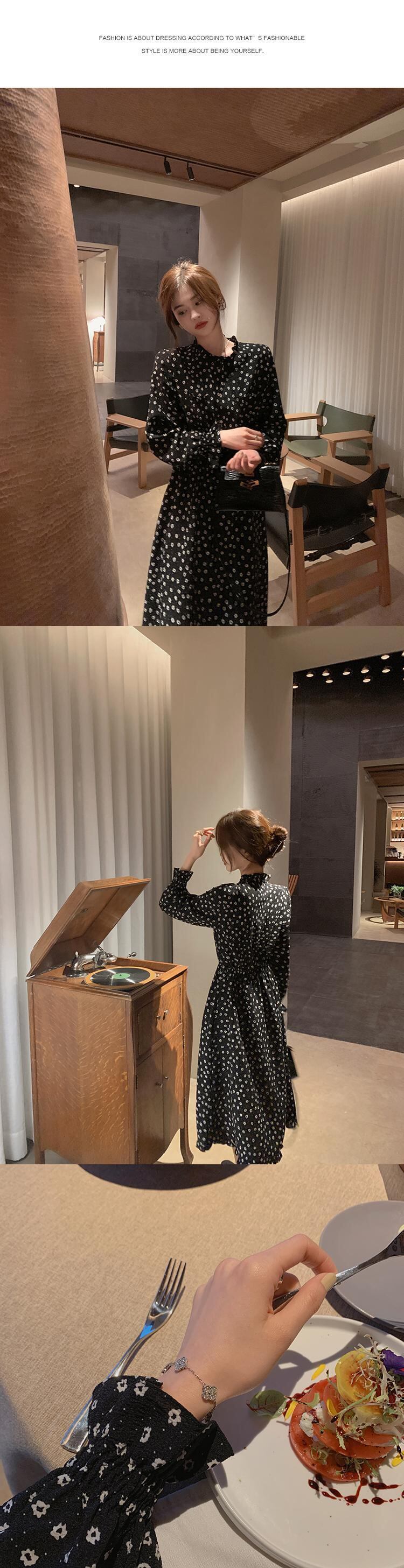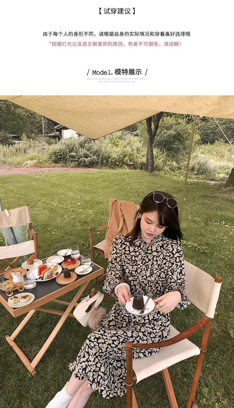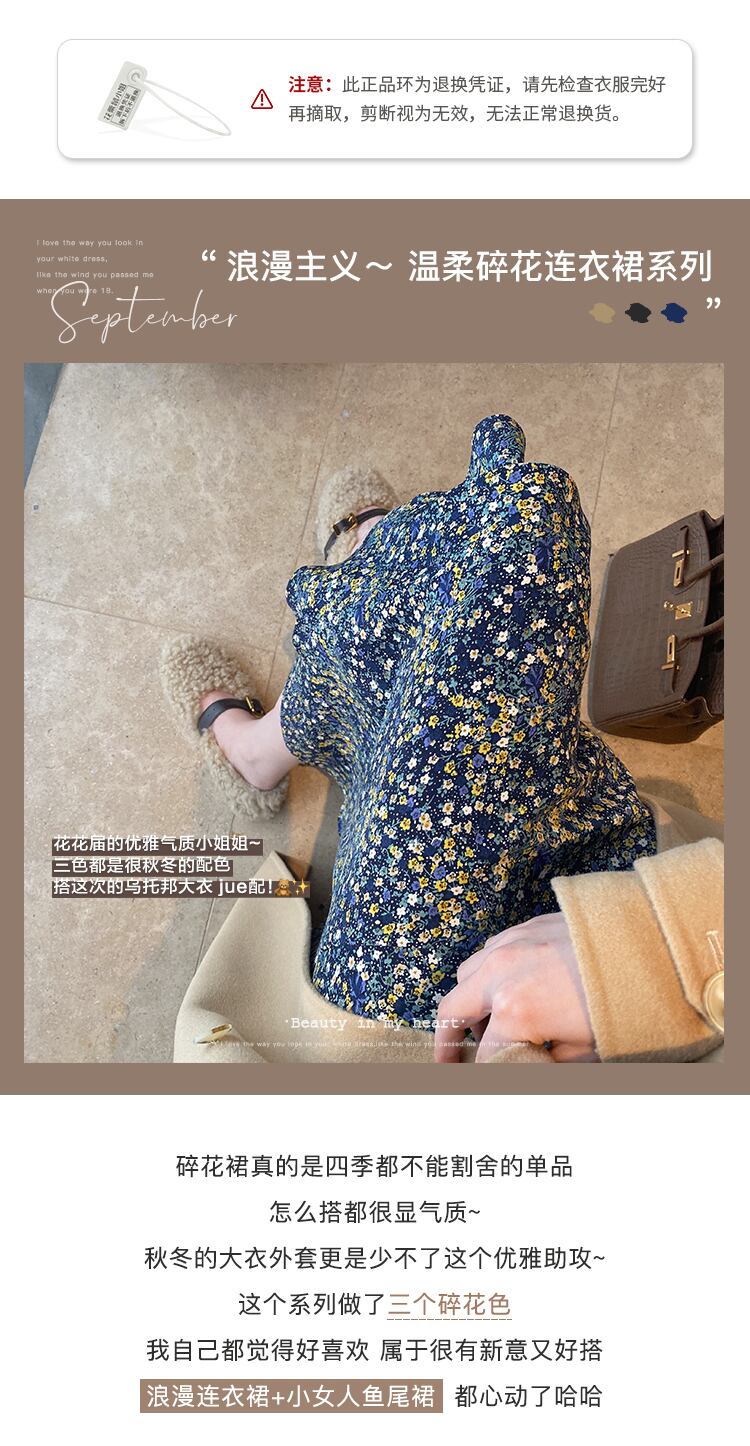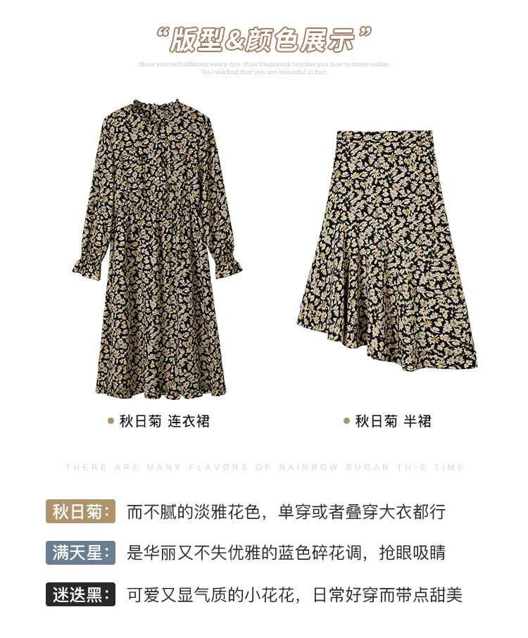 ミスシマリスフローラルドレス2020秋の長袖シンウエストミドル丈スカート missi38943983964