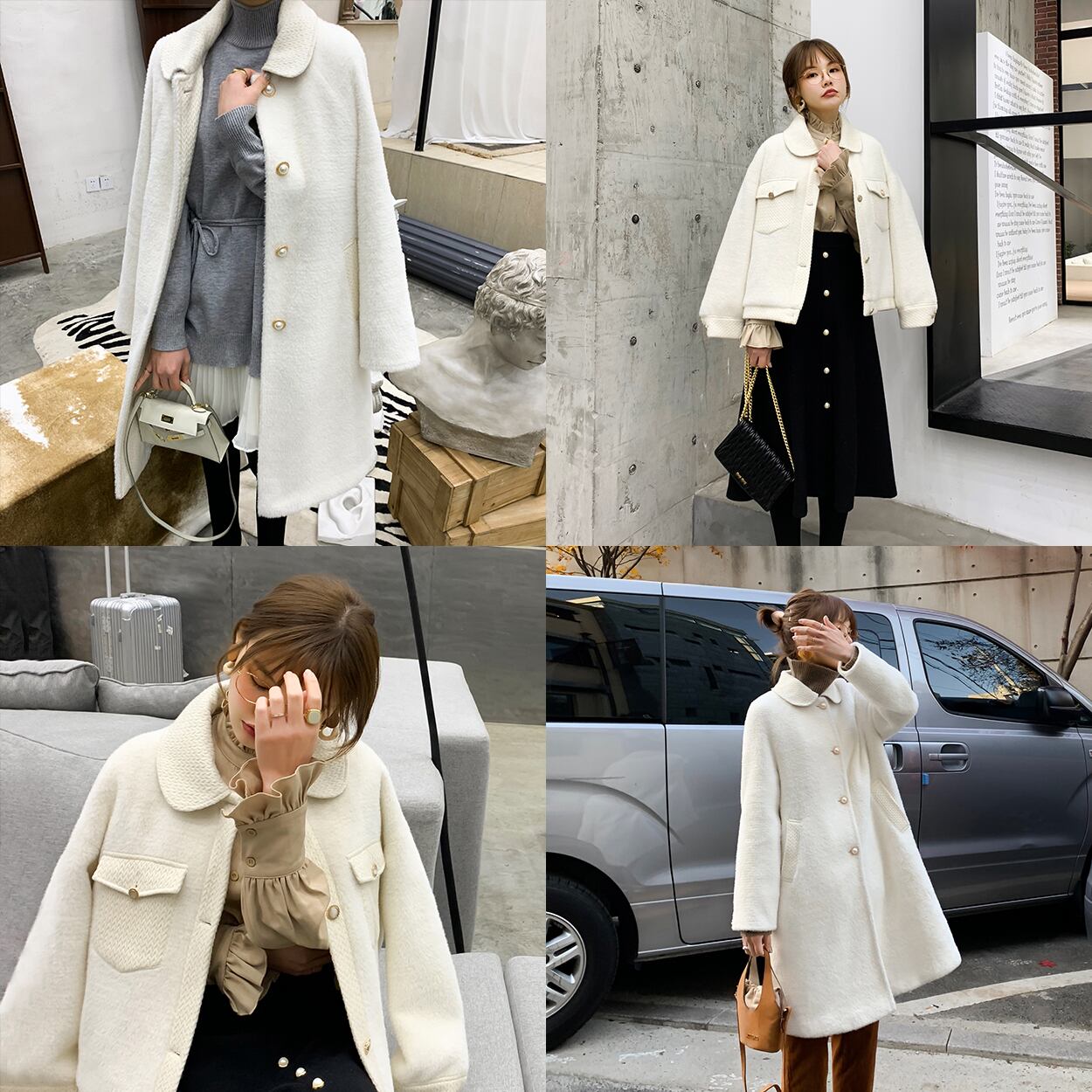 色:オフホワイトショート,オフホワイトの長い,ティーグレーロング