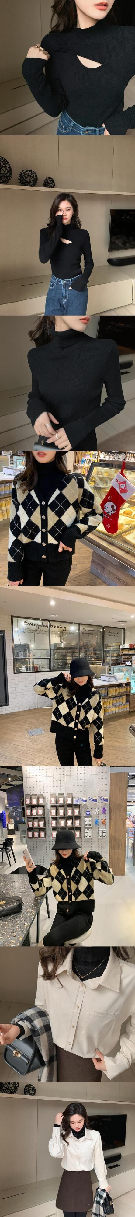 ミスシマリス[ティーアートベース] 2020ニットトップウィメンズワイルドハーフタートルネックベースシャツ秋冬 missi21621927981