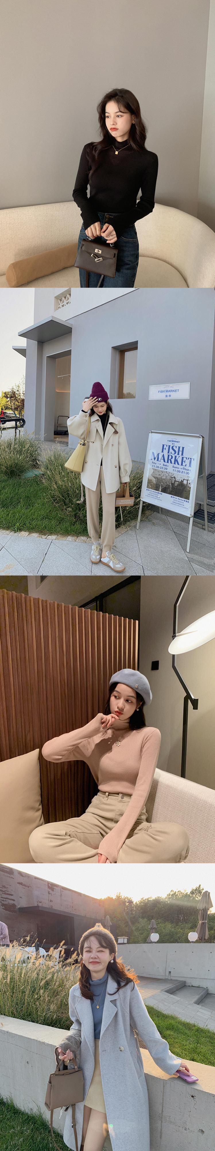 ミスシマリス【ソフトサンドイッチ】ハイネックボトミングシャツ秋冬レディースオールマッチインナー長袖無地t missi96136679413