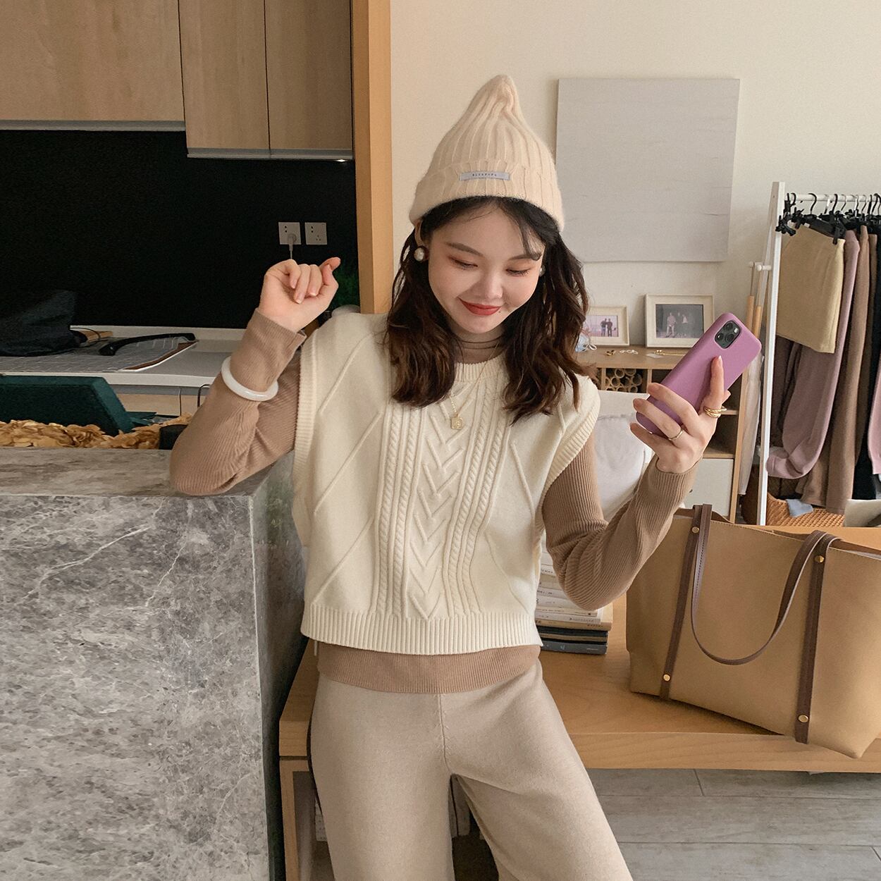 ミスシマリス【プロイセン】やわらかいワキシーひし形Vネックベストベストレディースニットウールベスト秋 missi15553995652