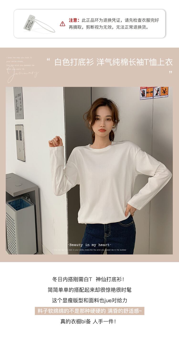 ミスシマリスホワイトボトミングシャツ女性2021年秋エインスタイルコットン長袖Tシャツトップと新しいスタイル missi38070770427