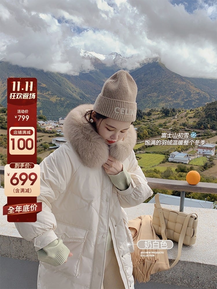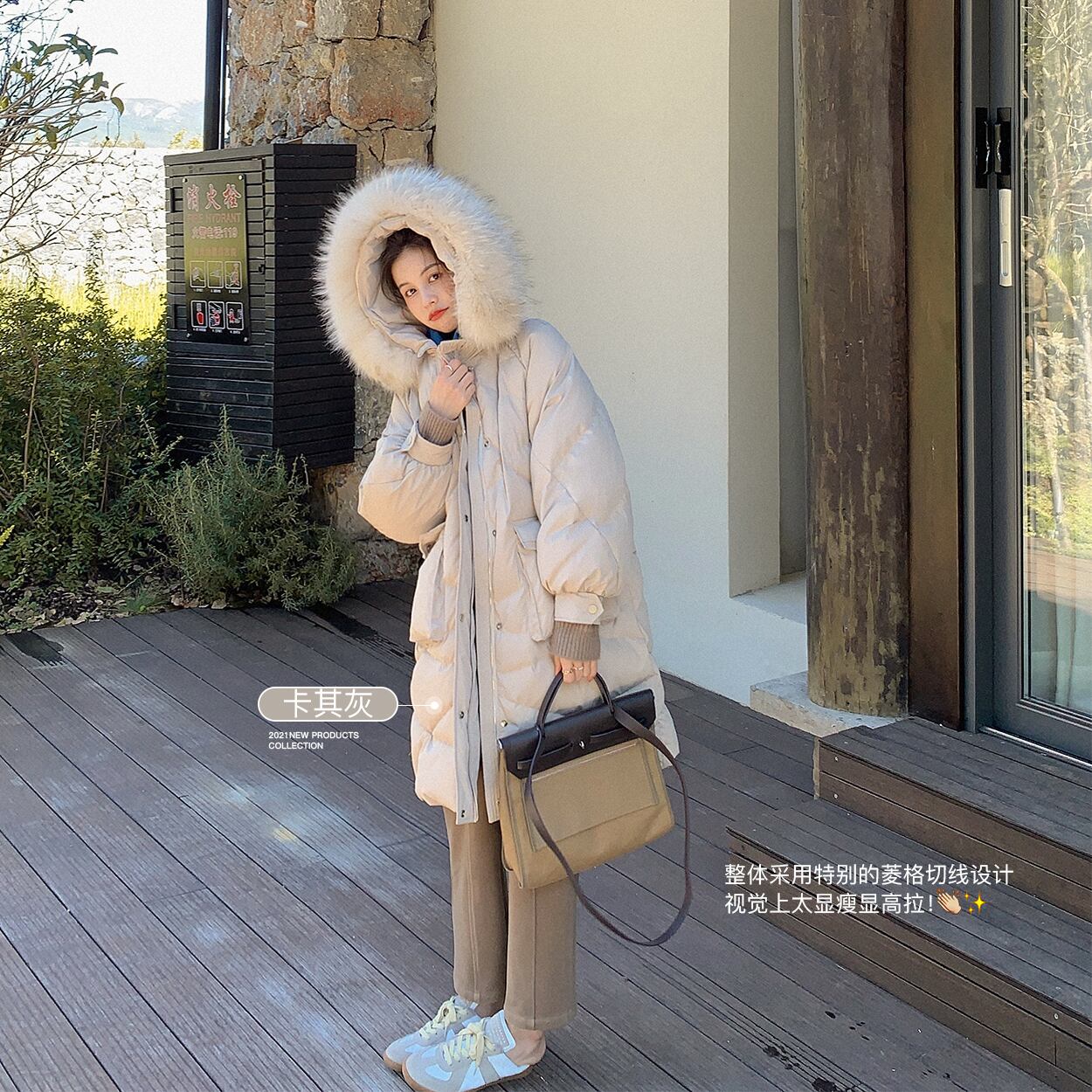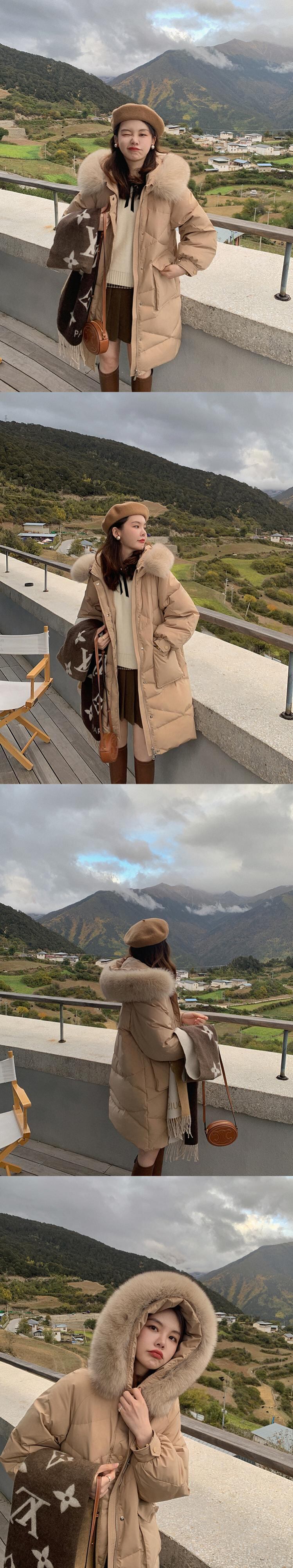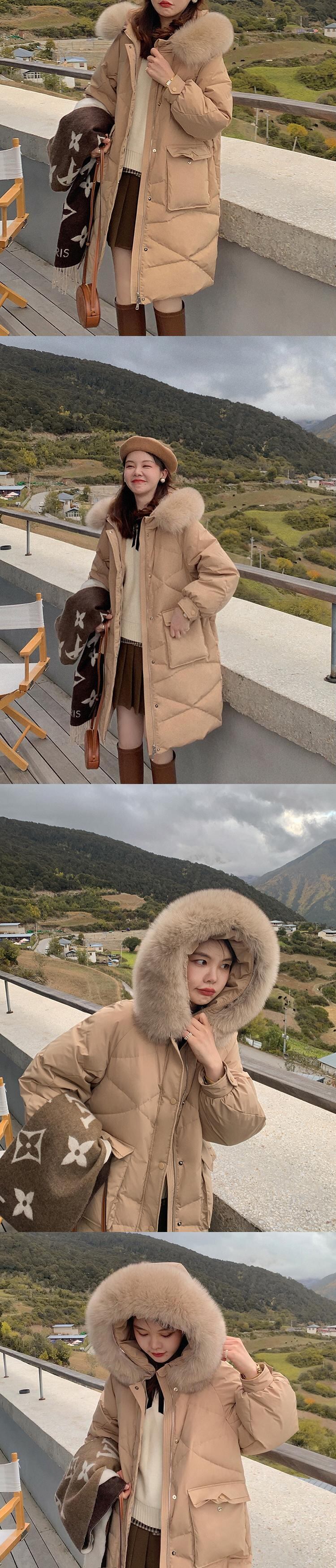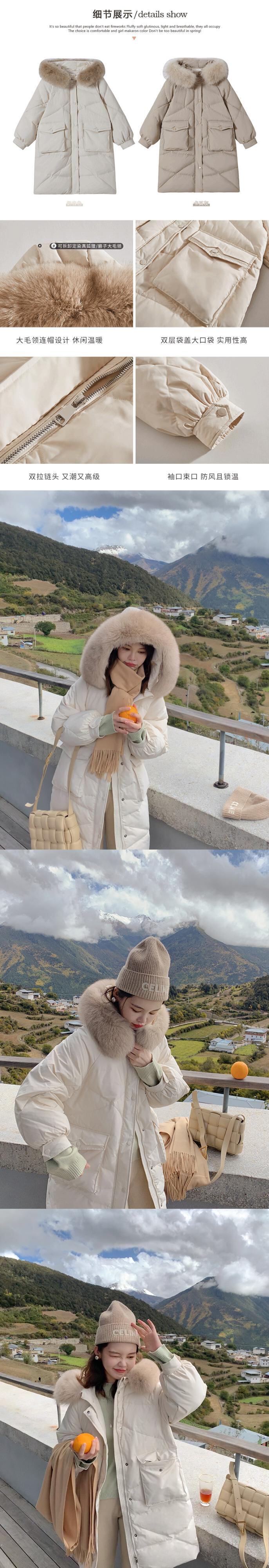 ミスシマリス[山フジアーリースノー]膝上に100枚のメスのキツネの毛皮の襟の白いフード付きロングダウンジャケット missi7794073314