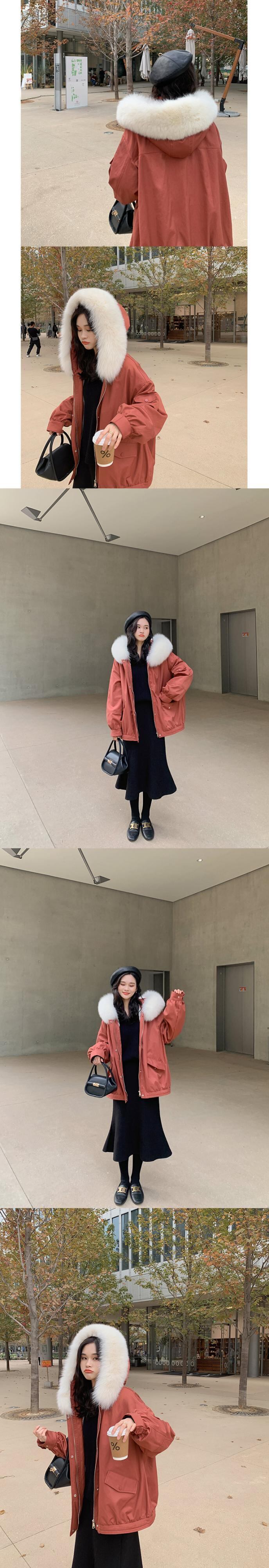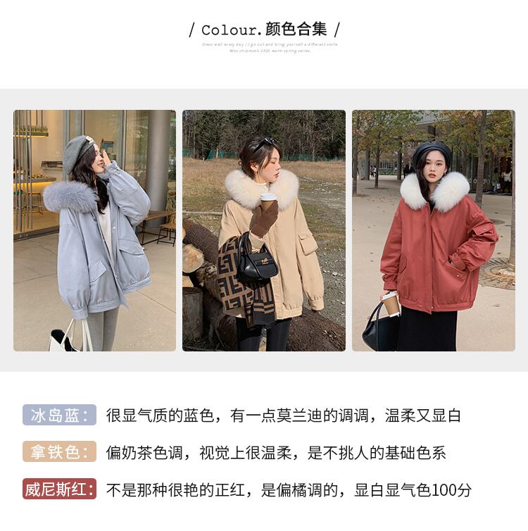 ミスシマリススピンロブレッドパーカーダウンジャケットレックスラビットファーフォックスビッグファーカラーネットレッドオータムウィンタージャケット2021 missi28067871941