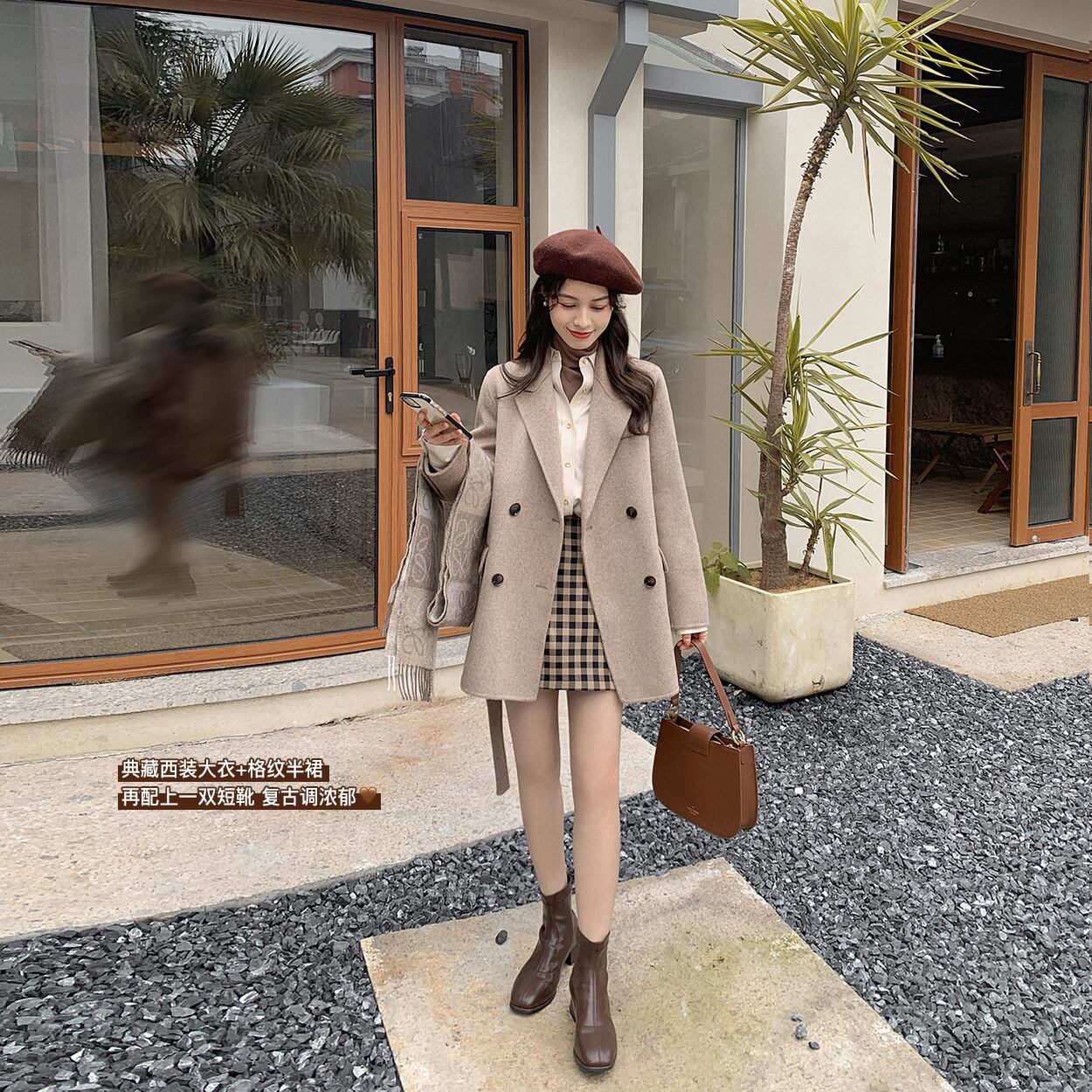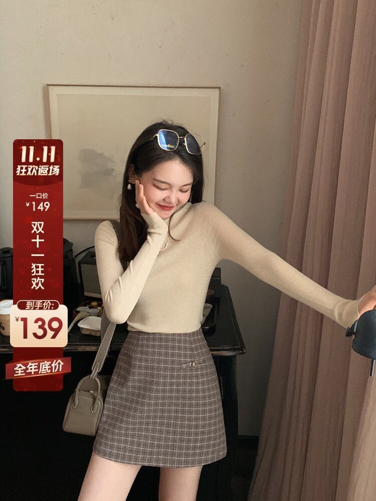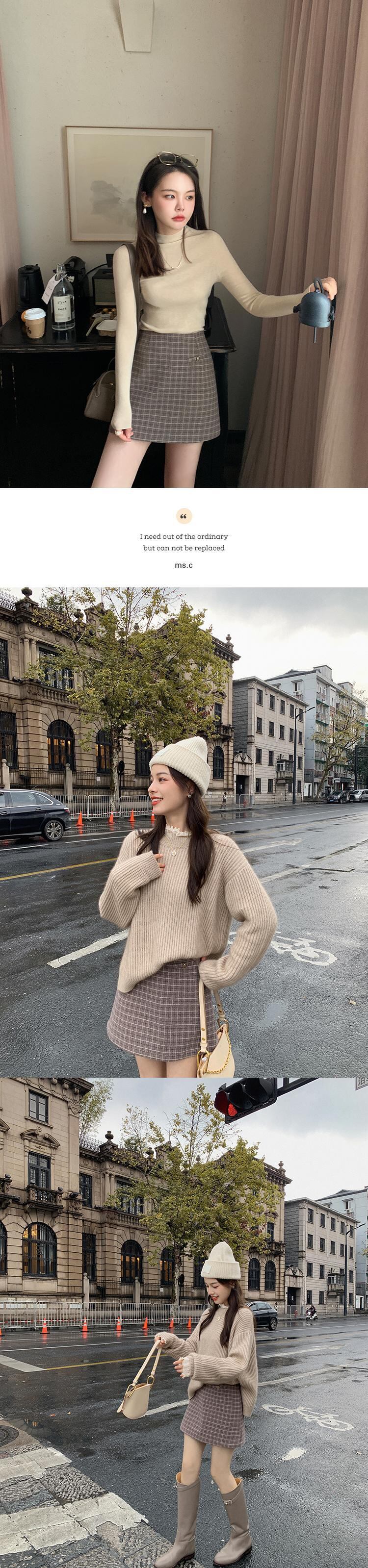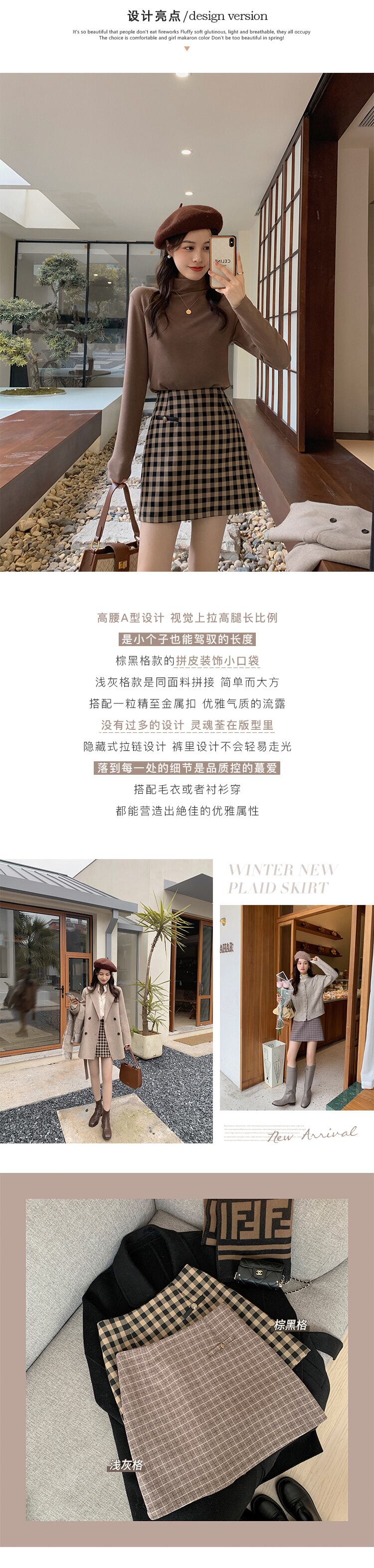 色:ハーフスカートブラウンブラックグリッド,ハーフスカートライトグレーグリッド
