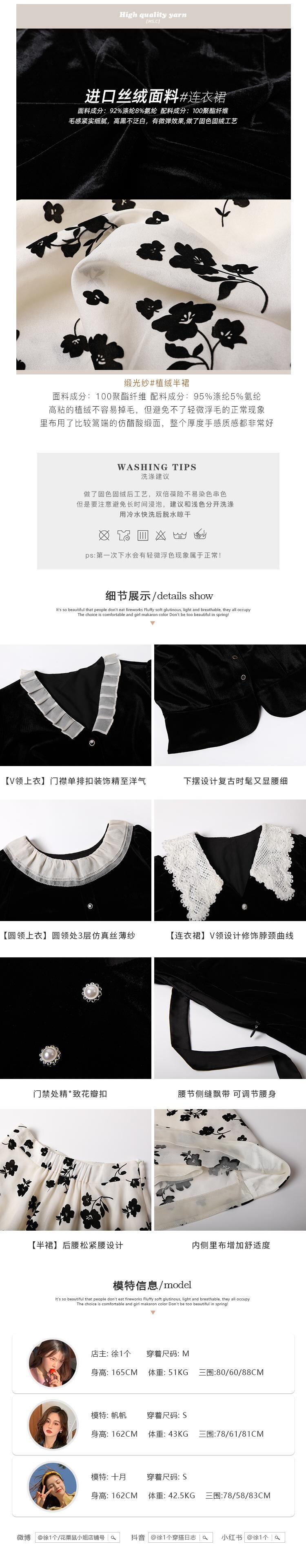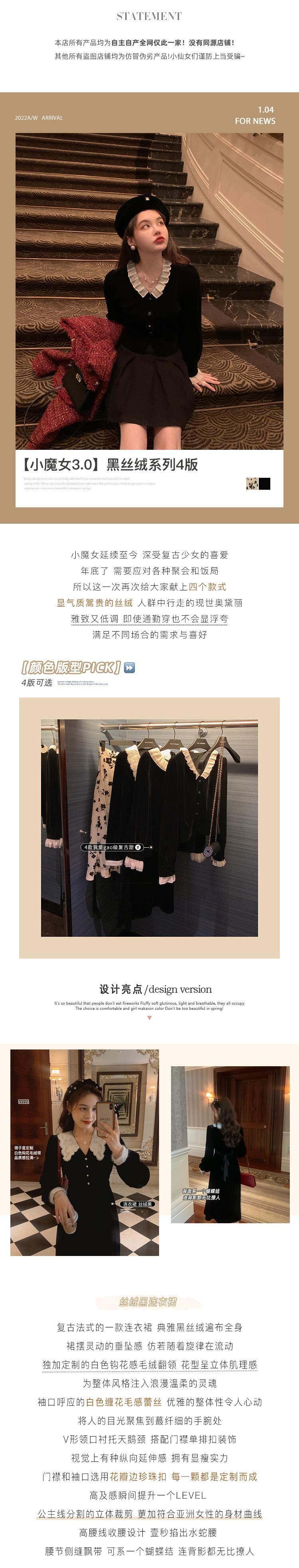 ミスシマリス[リトルウィッチ3.0]レトロスウィートブラックベルベットスーツスカート女性冬Vネックワンピース missi15994099937